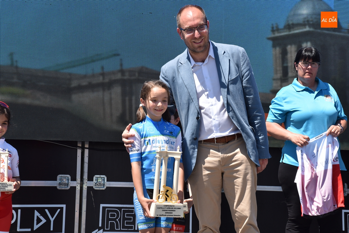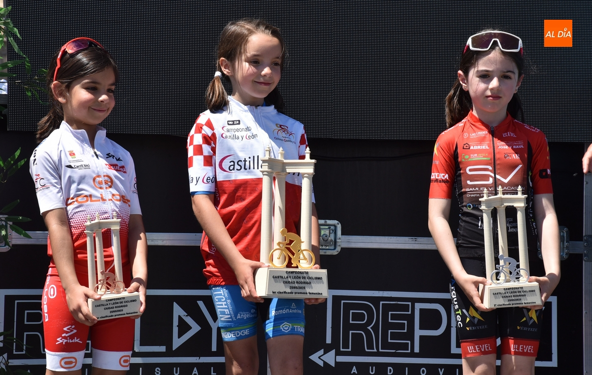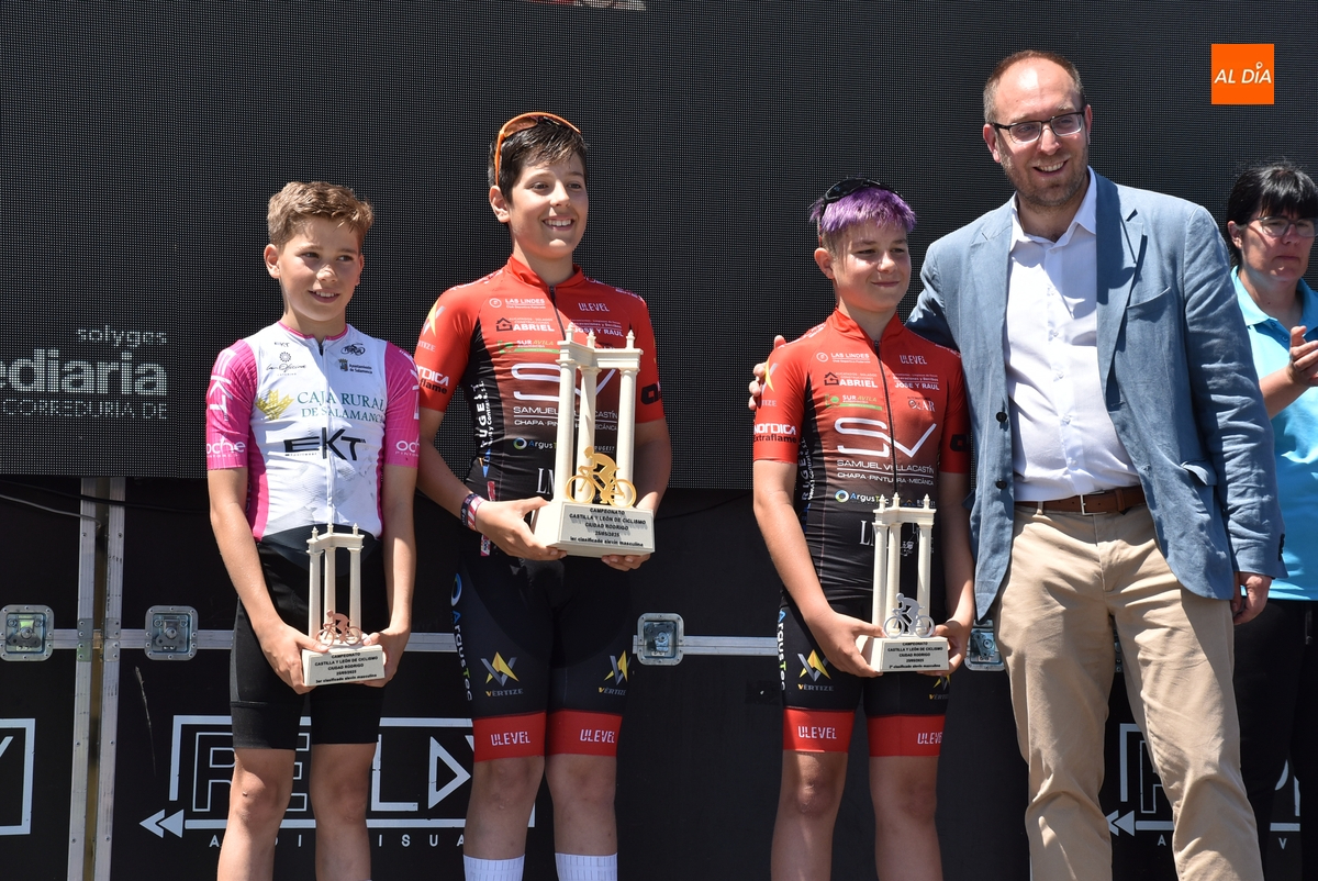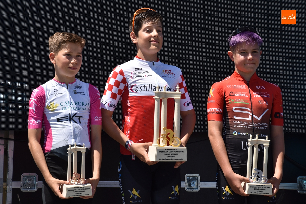 Curiosidades de la vida, de los 4 jóvenes ciclistas que se proclamaron campeones masculinos en la mañana del domingo en Ciudad Rodrigo, 3 se llaman Diego; y de las 4 nuevas campeonas, 2 se llaman Noa. En lo que respecta a la categoría Alevín, el ganador fue Diego González, de la Escuela Ciclista Samuel Villacastín, al que también pertenece el 2º, Julio Sierra; cerrando el podio masculino Enzo García. Mientras, en féminas, la victoria fue para Noa Blanco, del Chapam-Moralejo Selección; seguida por Martina Santos, de la Escuela de Ciclismo Salmantina; y Leire Fernández.