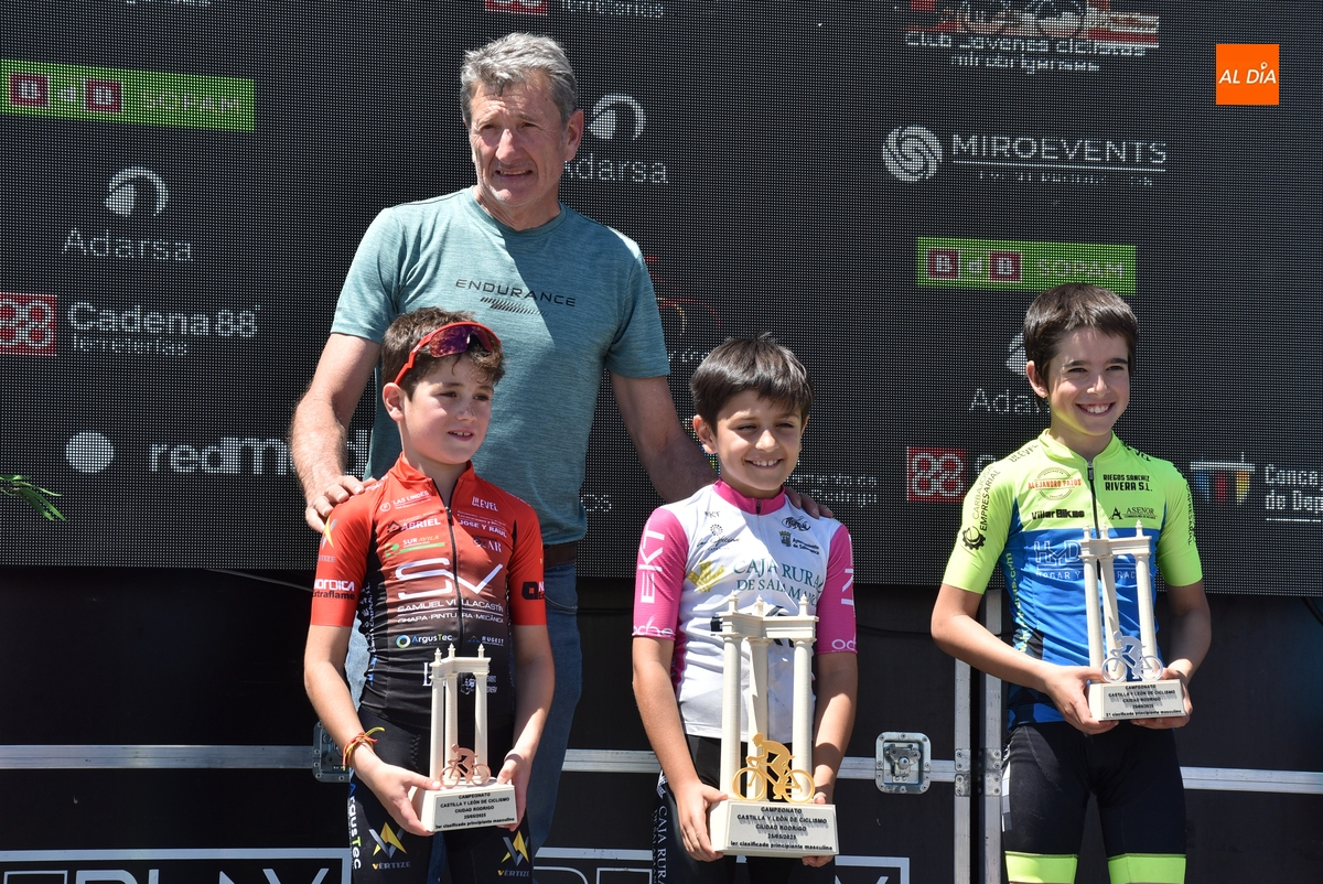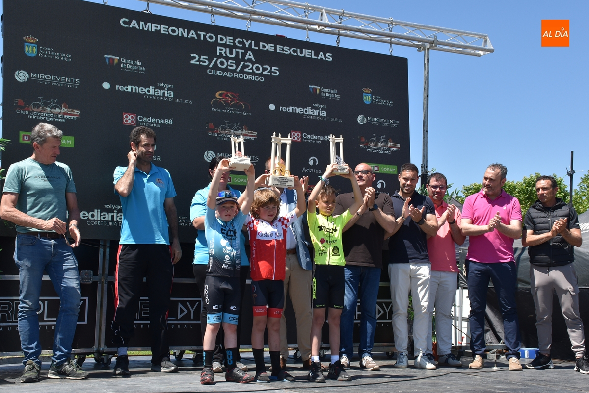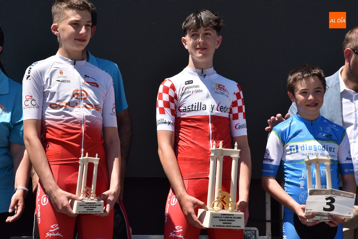 La mañana de competición sobre dos ruedas en Ciudad Rodrigo dejó un total de 8 nuevos campeones de Castilla y León, que como cierre del evento recibieron los maillots que les van a acreditar como tales a lo largo de todo el año. Entre esos 8 nuevos campeones se encuentra un mirobrigense, Diego Marcos (perteneciente al Caja Rural de Salamanca-EKT), que se hizo con la victoria en la categoría Principiante.