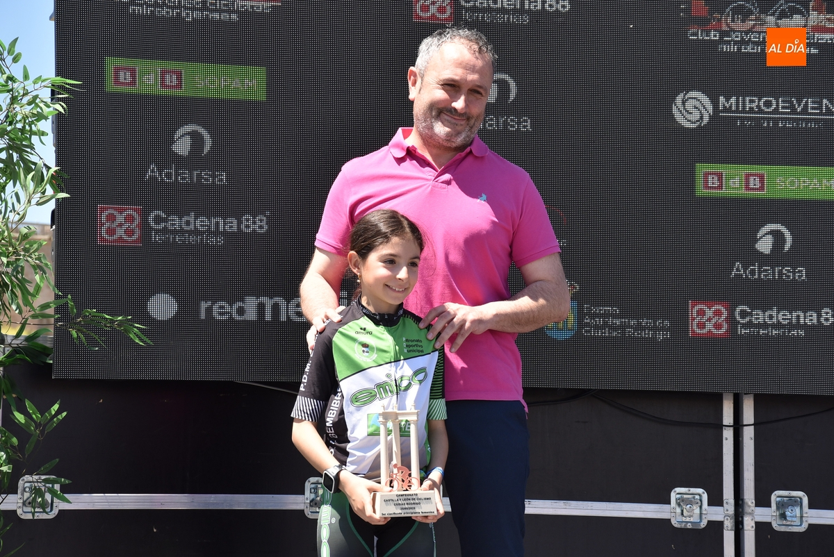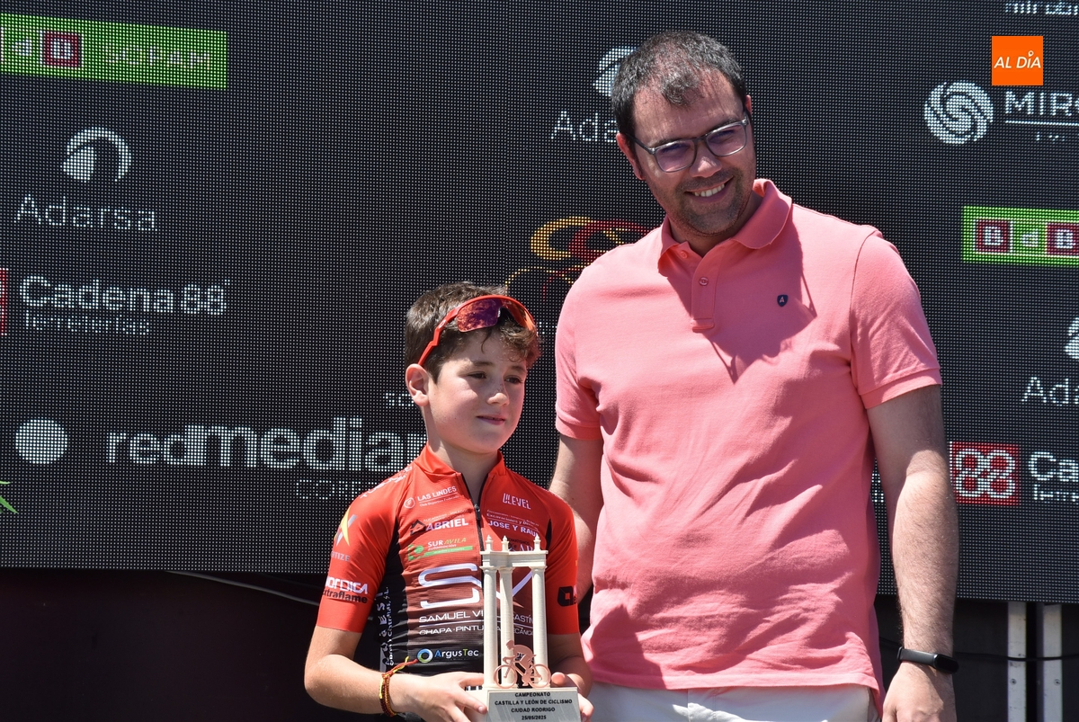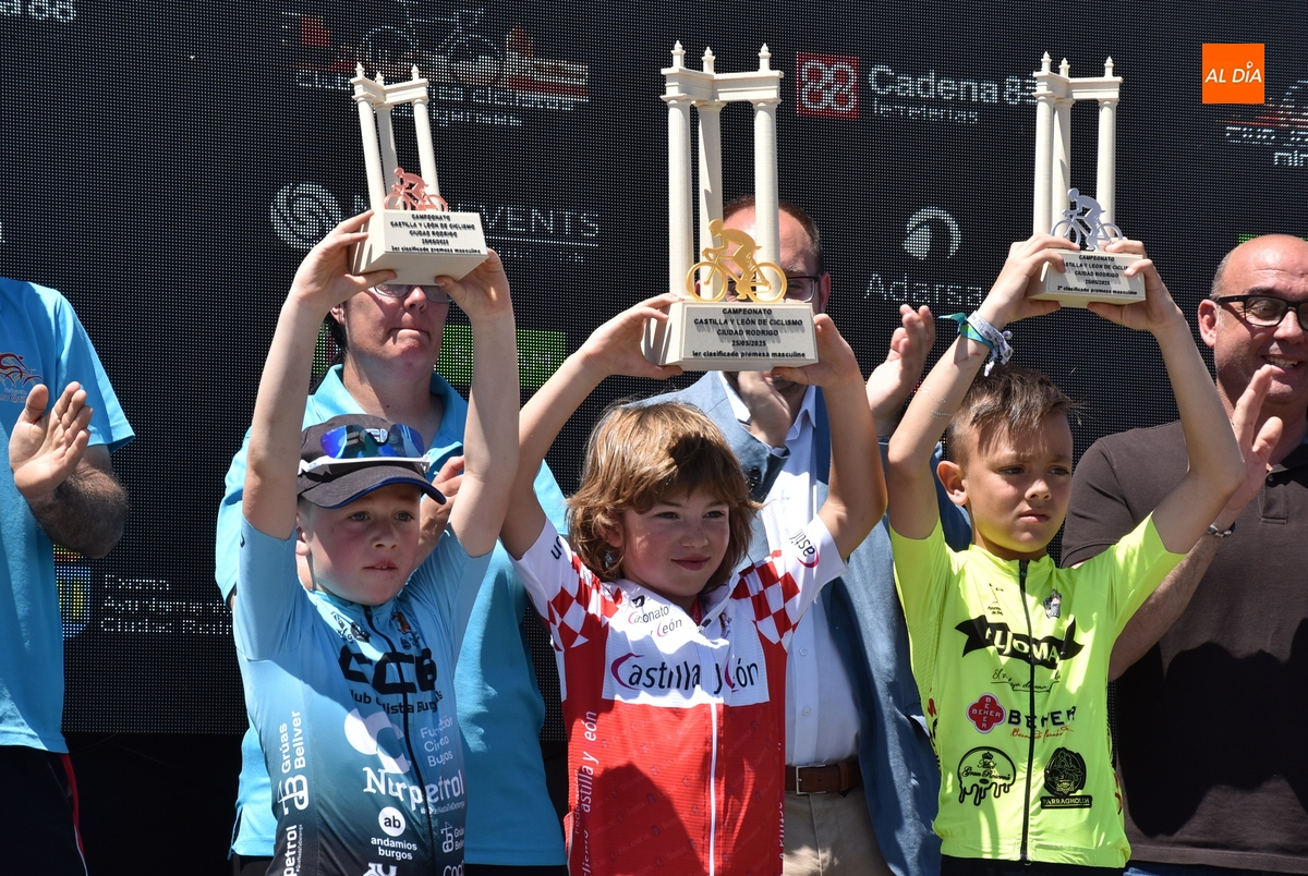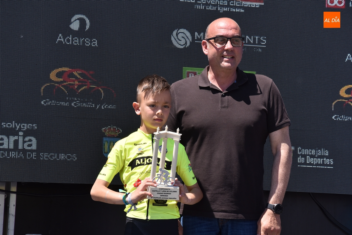 La mañana de competición sobre dos ruedas en Ciudad Rodrigo dejó un total de 8 nuevos campeones de Castilla y León, que como cierre del evento recibieron los maillots que les van a acreditar como tales a lo largo de todo el año. Entre esos 8 nuevos campeones se encuentra un mirobrigense, Diego Marcos (perteneciente al Caja Rural de Salamanca-EKT), que se hizo con la victoria en la categoría Principiante.