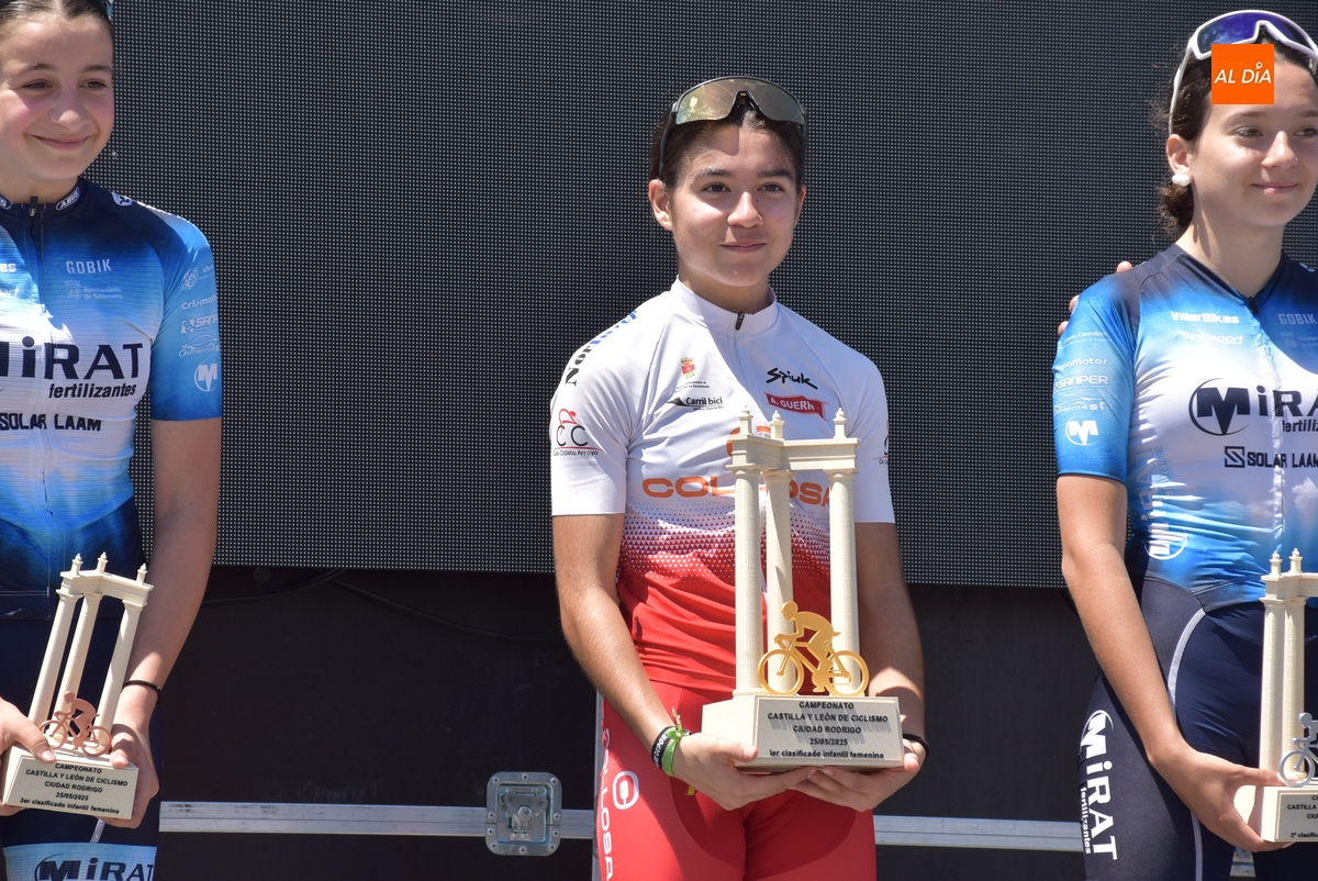 Por último, en la categoría Infantil, el nuevo campeón regional es Diego Santiago, del Equipo Collosa; acompañándole en el podio Javier Fabián, de la Escuela Diego Díez; y Álex Martínez, del Equipo Collosa. Esta formación también se llevó el título Infantil Femenino, con Noa Ruiz, a quién escoltaron en el podio dos corredoras del Mirat-Salamanca Es Ciclismo: Aitana Serrano y Paula Vicente.