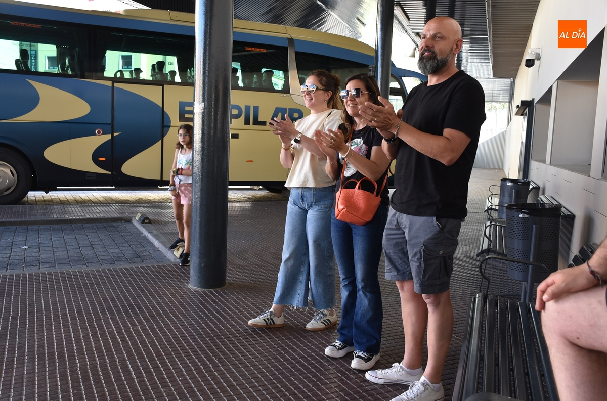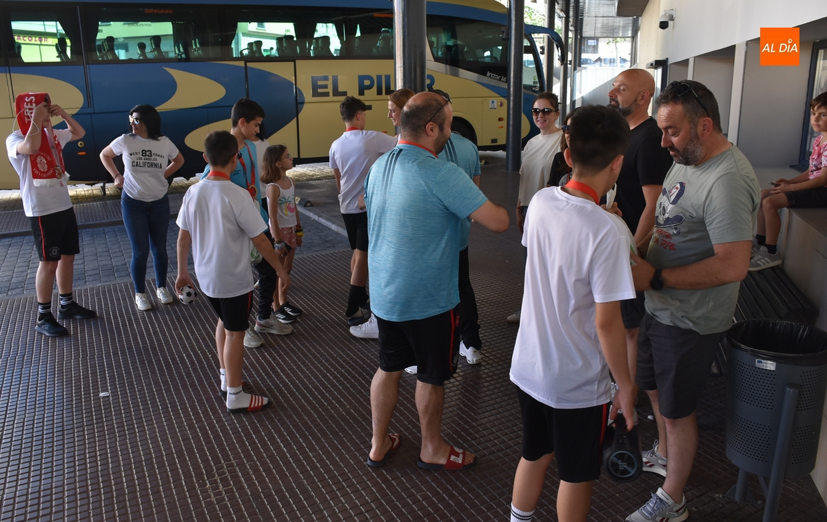 Los jugadores y técnicos del Infantil Escolar del III Columnas regresaron durante la tarde del domingo a Ciudad Rodrigo, tras haberse proclamado en el tramo final de la mañana en Palencia campeones de Castilla y León de los Juegos Escolares. La expedición llegó hasta la Estación de Autobuses mirobrigense, donde les estaban esperando varios familiares, quienes les brindaron los primeros aplausos al irse bajando del autobús.
