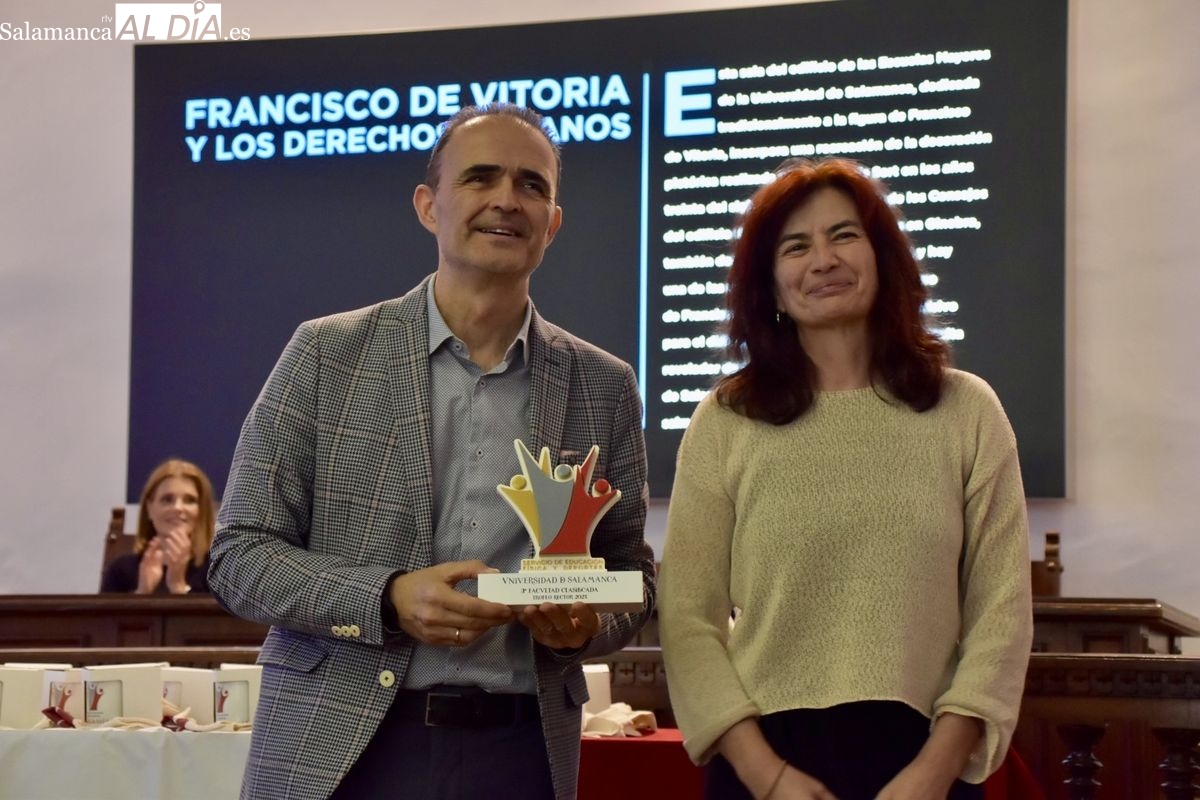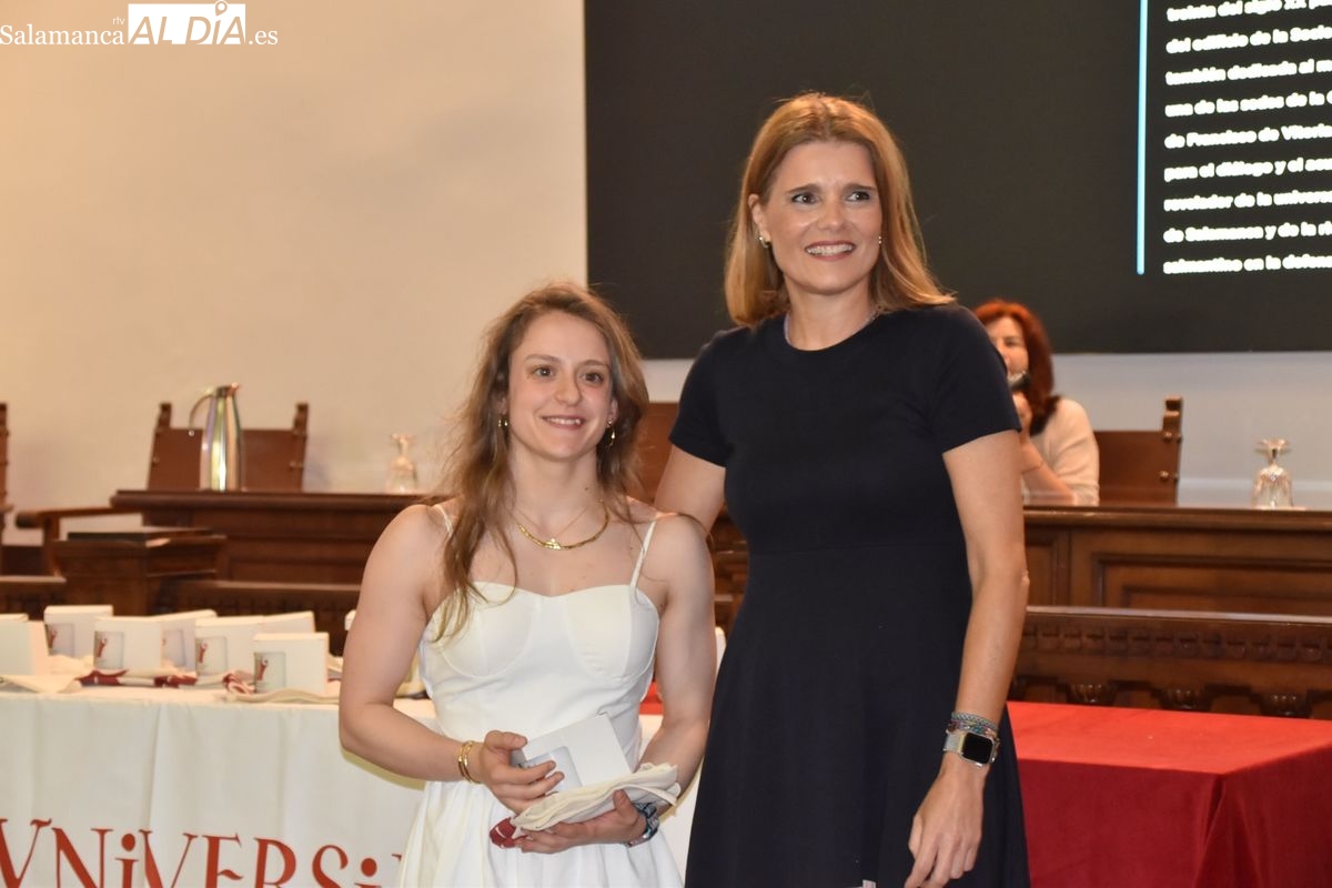 El Aula Francisco de Vitoria, en el emblemático edificio de las Escuelas Mayores, se vistió de gala este lunes para celebrar los Premios Anuales del Deporte de la Universidad de Salamanca. Una ceremonia que congregó a destacadas personalidades como Marta Gutiérrez Sastre, vicerrectora de Estudiantes, Inclusión, Igualdad y Compromiso Social; Jesús María Ortiz Fernández, diputado delegado de Deportes de la Junta de Castilla y León; y María Almudena Parres Cabrera, concejala de Deportes del Ayuntamiento de Salamanca, para honrar los logros de los estudiantes de la USAL.