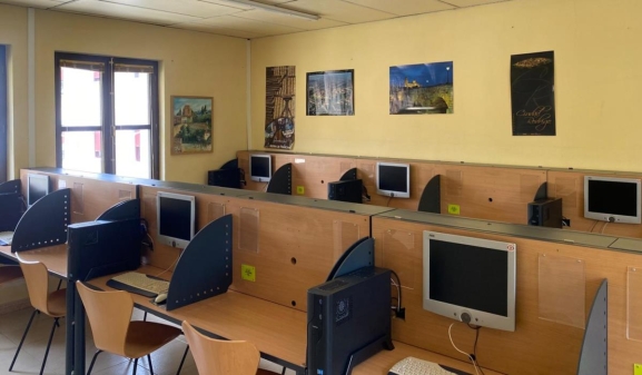 Por un lado, se ha procedido a reparar y actualizar los 9 ordenadores con los que cuenta el Aula; y por otro lado, se han habilitado 9 huecos para que puedan acudir con sus propios equipos aquellos que asistan a cursos de informática que se impartan allí.