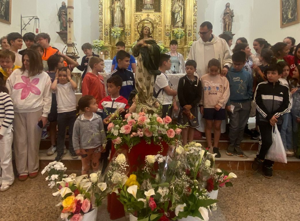 Los niños de La Fuente de San Esteban, Boada y Muñoz que han asistido a Catequesis durante este curso 2024/2025 pusieron hace unos días punto y final al mismo, con una jornada de convivencia en La Fuente. Esta despedida tuvo como elemento central una ofrenda floral a la Virgen María en el interior del templo parroquial, que fue presidida por el párroco, Anselmo Matilla. Posteriormente, con un carácter más lúdico, fue turno para dar buena cuenta de una merienda compartida.