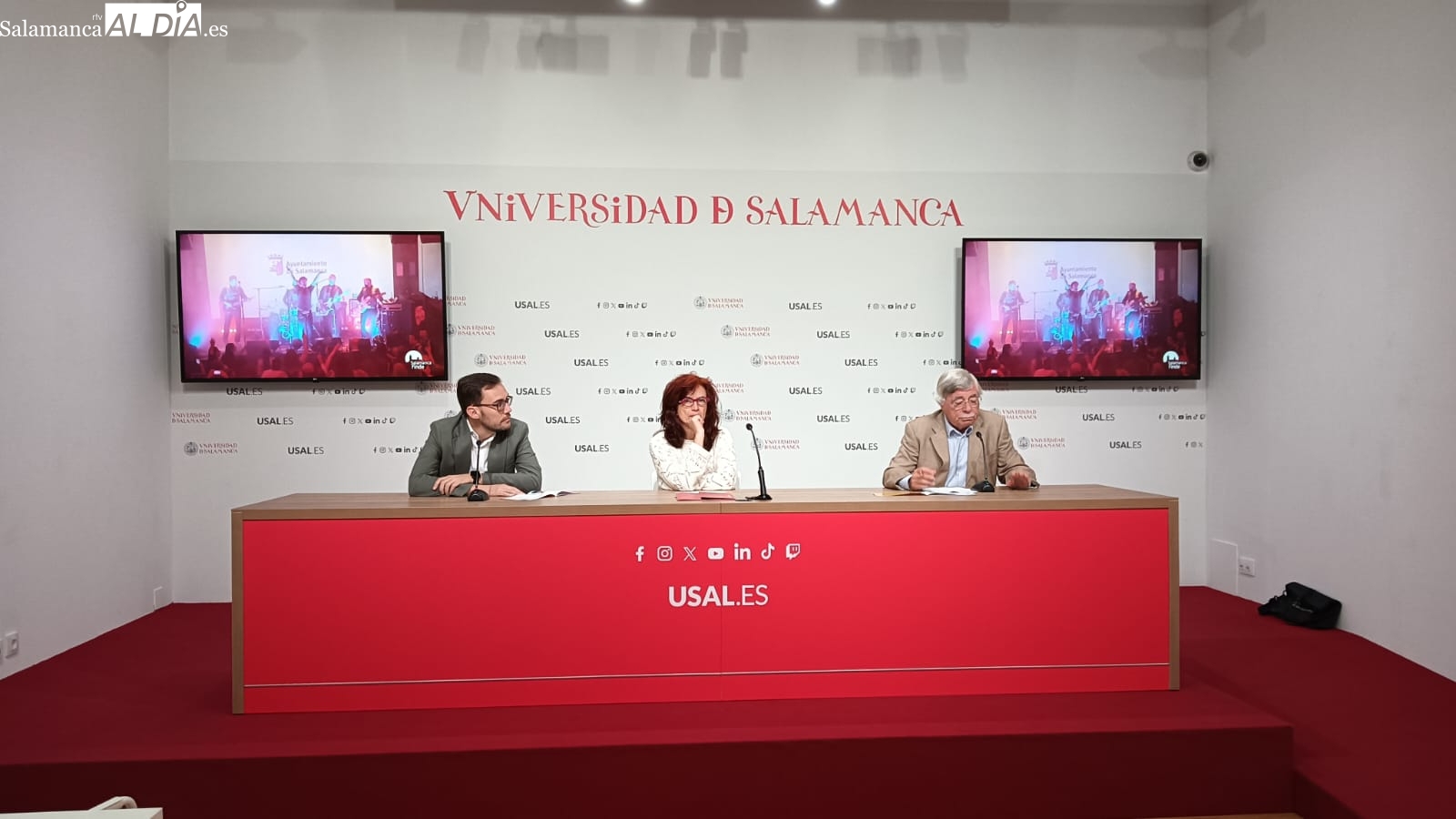 La vicerrectora de Estudiantes, Inclusión, Igualdad y Compromiso Social, Marta Gutiérrez; el concejal de Cultura y Turismo del Ayuntamiento de Salamanca, Ángel Fernández; y el vicepresidente de la Junta Directiva de Alumni–USAL, Román Álvarez; han presentado esta mañana una nueva edición de 'Salamanca Finde', la iniciativa de Alumni - Universidad de Salamanca en colaboración con el consistorio salmantino que permite revivir la etapa universitaria a los antiguos alumnos de la USAL.