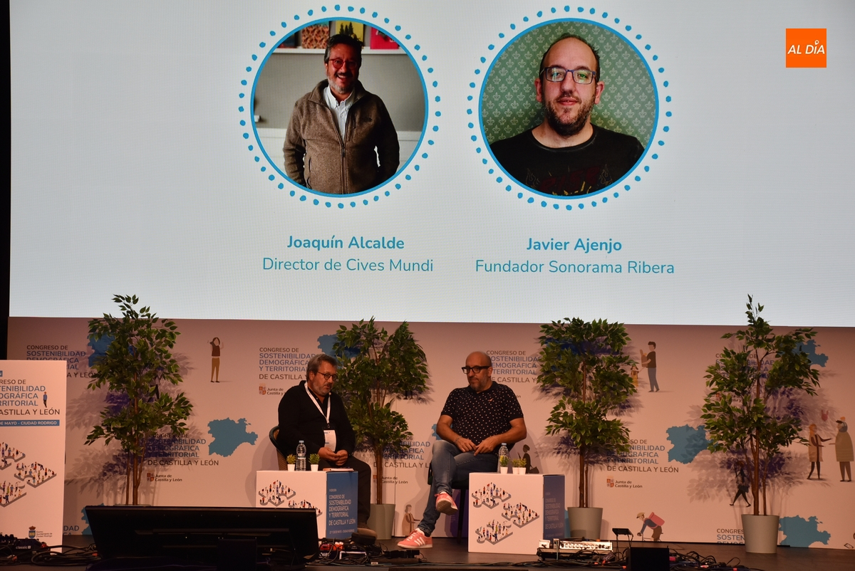 Esa última mesa fue moderada por el secretario general de Medio Ambiente, Vivienda y Ordenación del Territorio de la Junta de Castilla y León, Ángel Marinero, quién remarcó que “hay futuro” para el empleo rural. Tras ello, se dio paso a un diálogo entre Javier Ajenjo, fundador del festival Sonorama Ribera que tiene lugar en Aranda de Duero (Burgos) y Joaquín Alcalde, director de Cives Mundi.