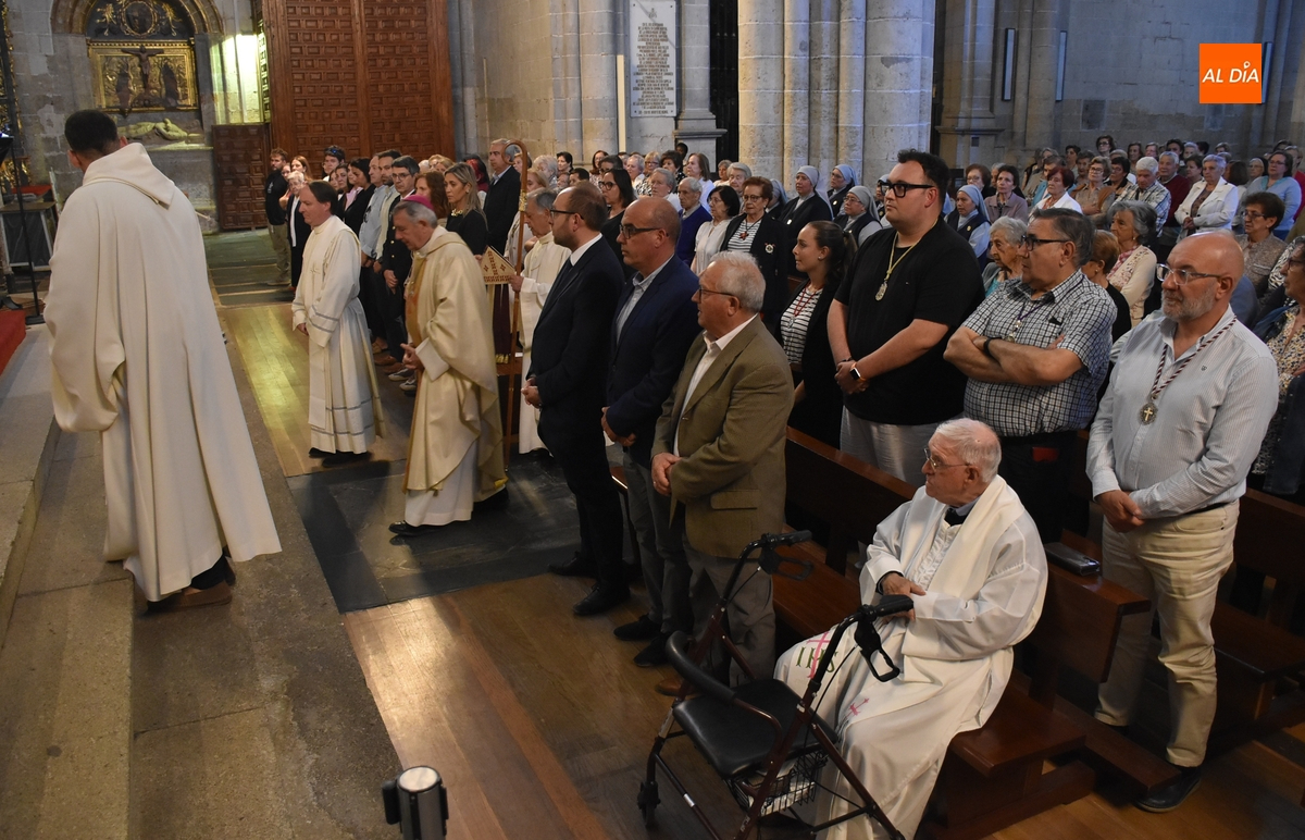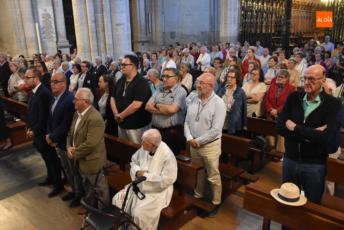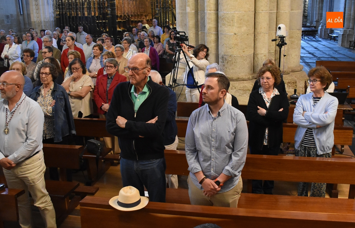 Aunque en un menor número que la misa que hubo el último día de abril en el mismo lugar por el eterno descanso del Papa Francisco (que fue un miércoles a la misma hora), la eucaristía –animada musicalmente por la Coral Dámaso Ledesma y el organista Manuel José Gutiérrez- contó con una amplia asistencia de fieles.