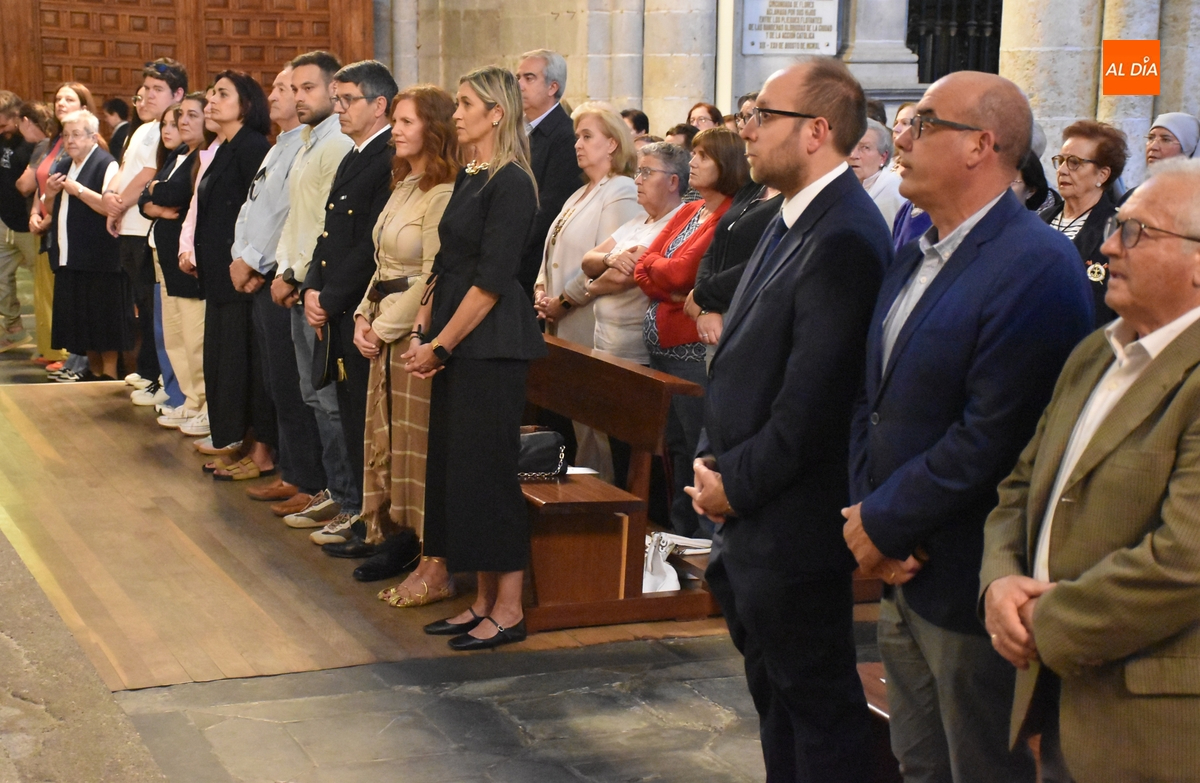 Entre ellos estuvieron, en las primeras filas, el alcalde Marcos Iglesias y los ediles Ramón Sastre, José Manuel Jerez, Víctor Gómez, Manuel Montejo, Carmen Lorenzo y Patricia Martín; el Jefe de la Policía Local, Narciso Caridad; el presidente de Afecir, David Bernal; el presidente de los Bomberos Voluntarios, Jesús Muñoz; y representantes de las cofradías de la Semana Santa Mirobrigense. Asimismo asistieron varias religiosas, trabajadores de la Diócesis o una amplia representación de Cáritas.