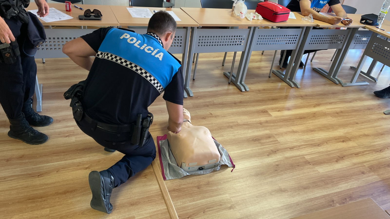 El Ayuntamiento de Peñaranda, a través de la Concejalía de Deporte y Seguridad Ciudadana, ha desarrollado una jornada formativa dirigida a los agentes de la Policía Local y técnicos deportivos municipales, centrada en Primeros auxilios, Reanimación Cardiopulmonar (RCP) y uso de Desfribiladores Externos Semiautomáticos (DESA).