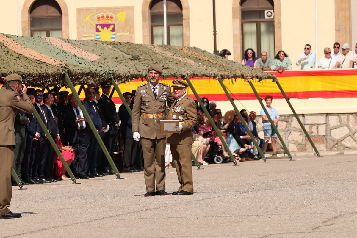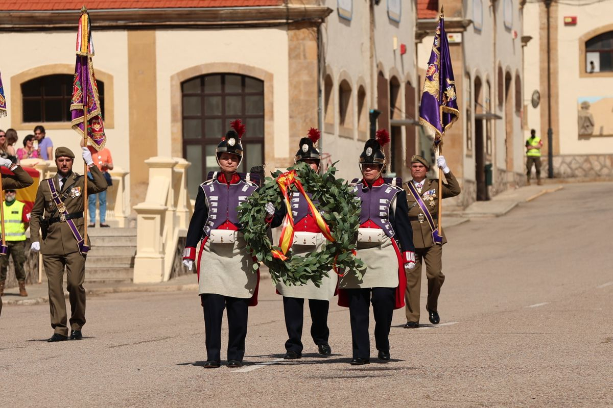 La tradicional parada militar, acto central de la festividad, ha estado presidida por el general Jefe del Mando de Apoyo a la Maniobra, Marcial Gonzalez Prada. Al alto mando militar le han acompañado diversas autoridades civiles y militares tanto de Salamanca como de la vecina provincia de Zamora, quienes han querido sumarse a este significativo homenaje.
