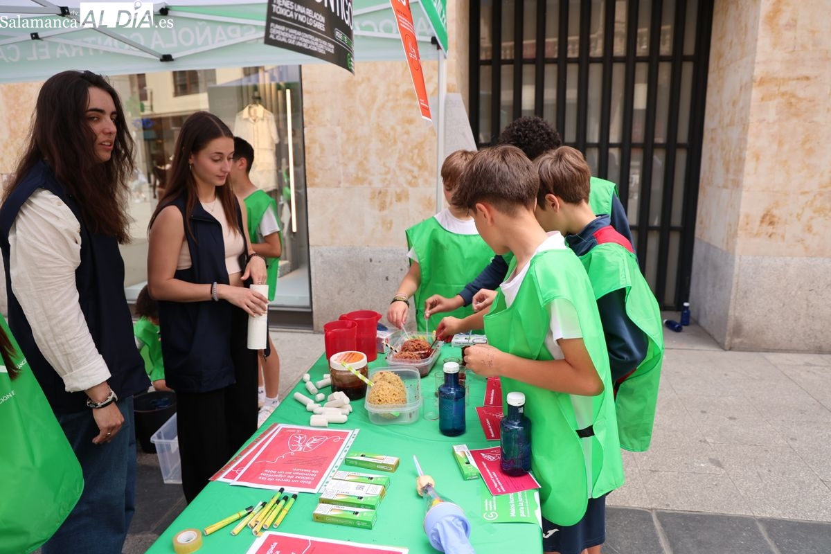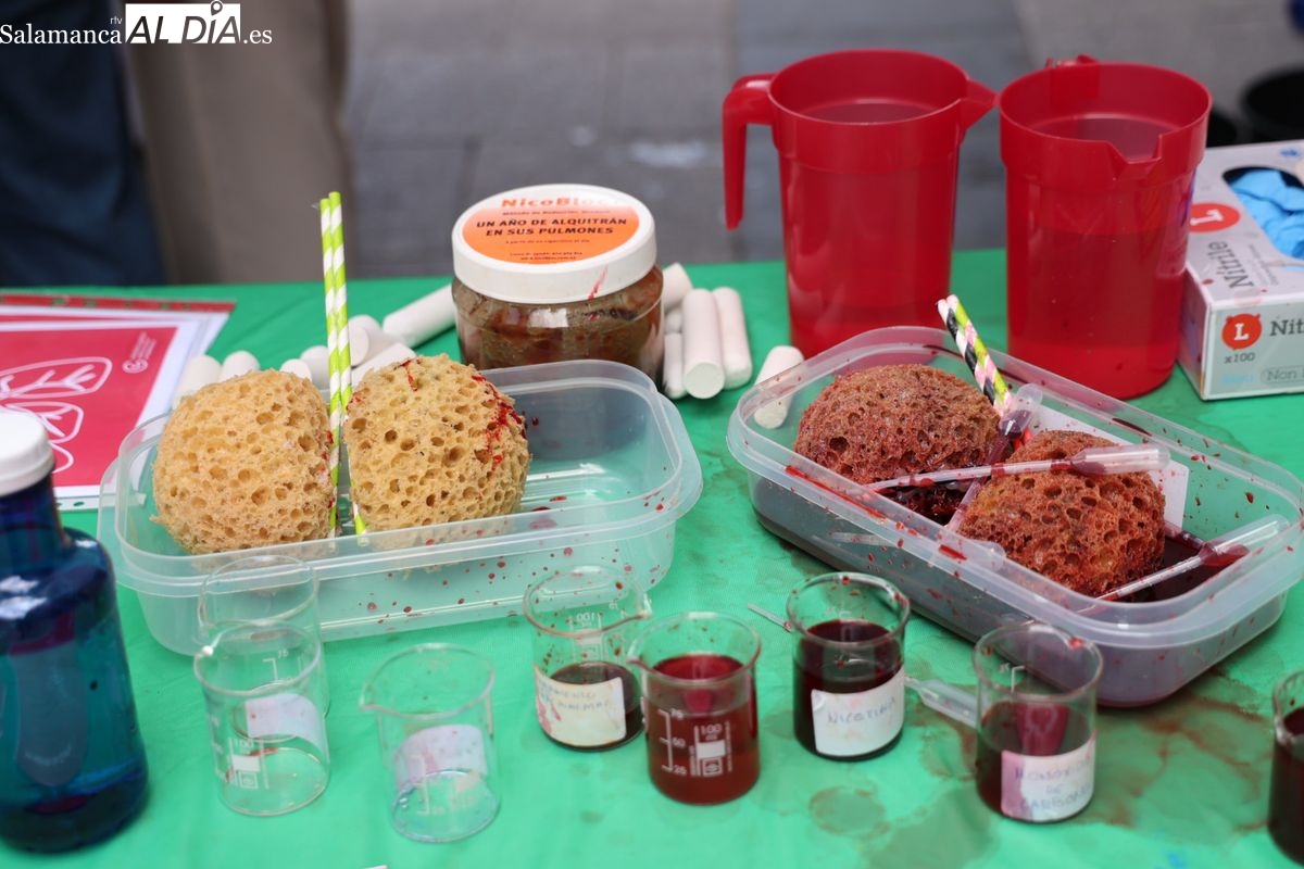 Un grupo de 25 niños salmantinos, junto a jóvenes voluntarios, fueron los protagonistas de la mañana. Tras participar en talleres de sensibilización, recorren la concurrida Calle Toro llevando un mensaje claro contra el consumo de tabaco y los nuevos dispositivos de vapeo. Su objetivo: concienciar a los viandantes sobre una adicción que sigue siendo la primera causa de muerte evitable.
