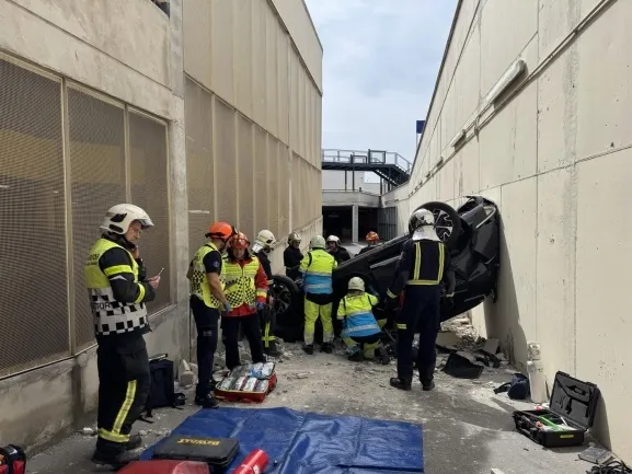La conductora circulaba por el parking exterior y, por causas que todavía se desconocen, cayó en la rampa de acceso del aparcamiento subterráneo del complejo. El coche quedó entonces encajado sobre su techo dejando atrapada a la conductora.