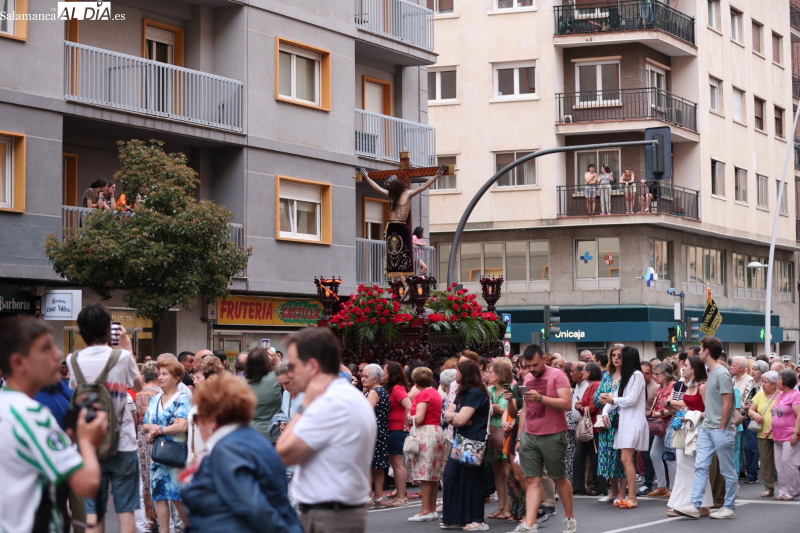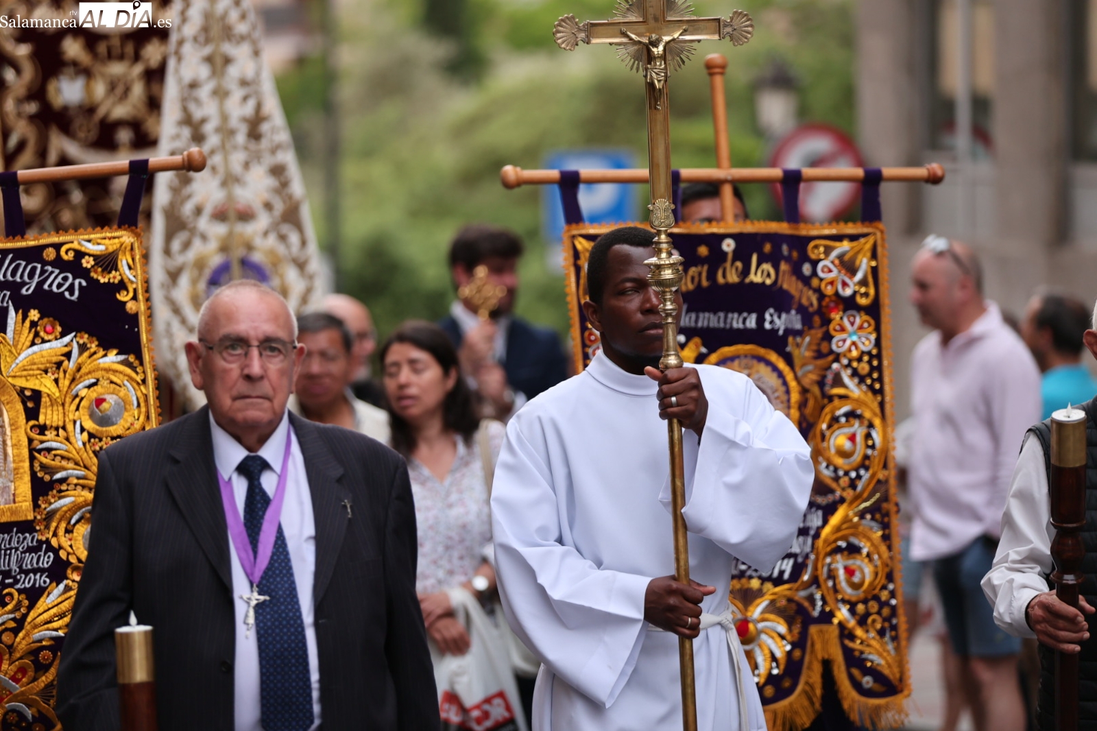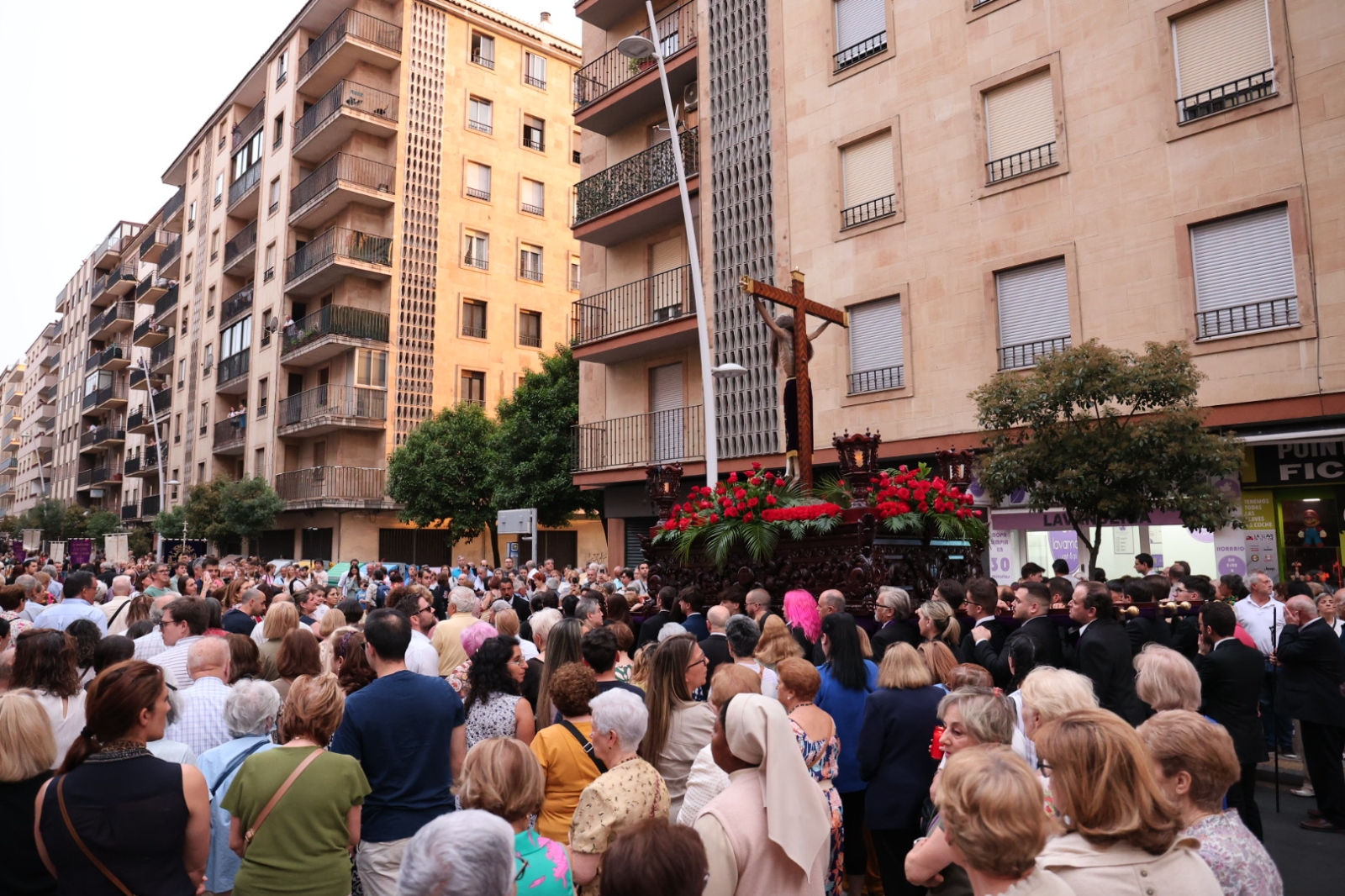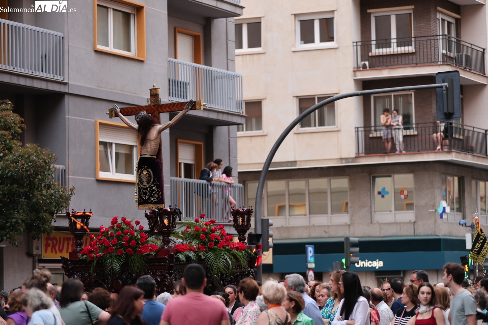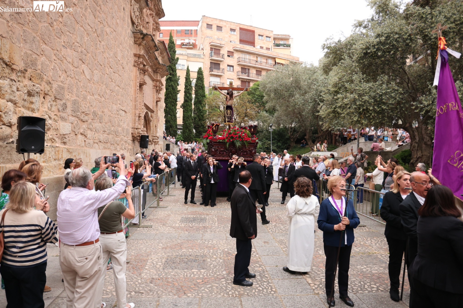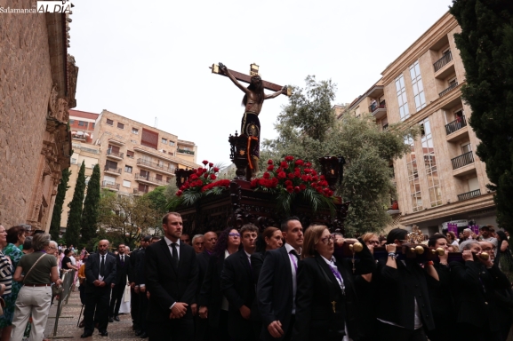 La Cuesta de Sancti Spíritus volvió a ser escenario de una de las procesiones más sobrecogedoras de la ciudad: la del Cristo de los Milagros. Decenas de fieles y curiosos se congregaron en este emblemático enclave para acompañar, en un profundo silencio y respeto, la imagen del Cristo, una talla que despierta gran devoción entre los salmantinos.