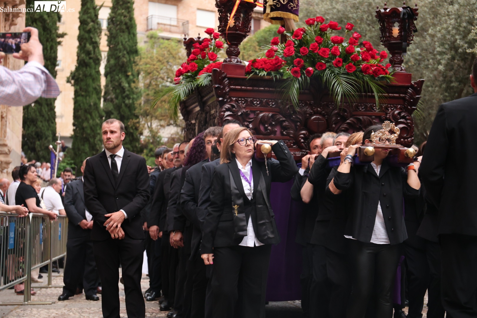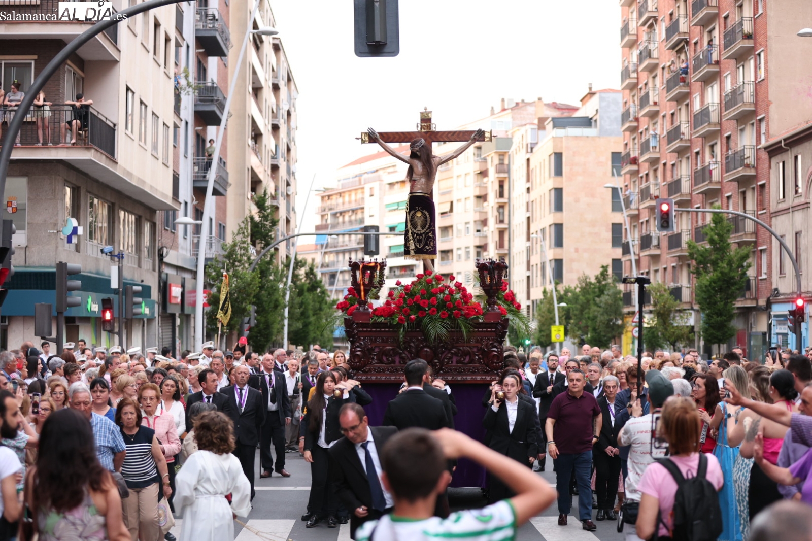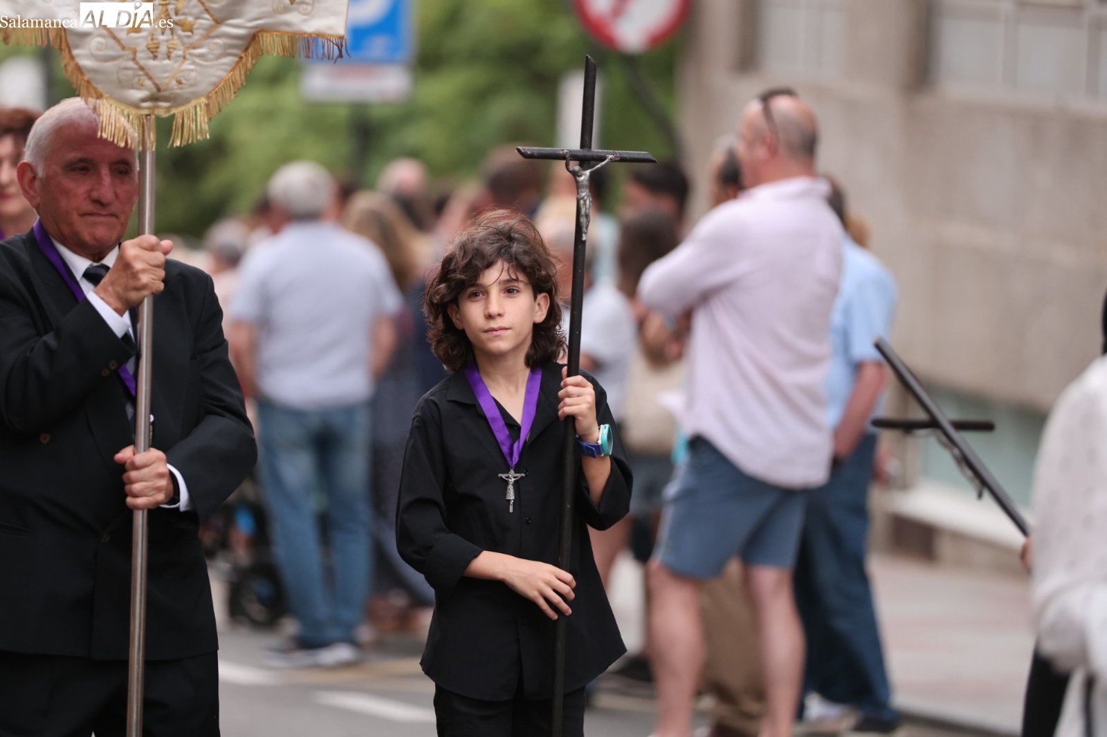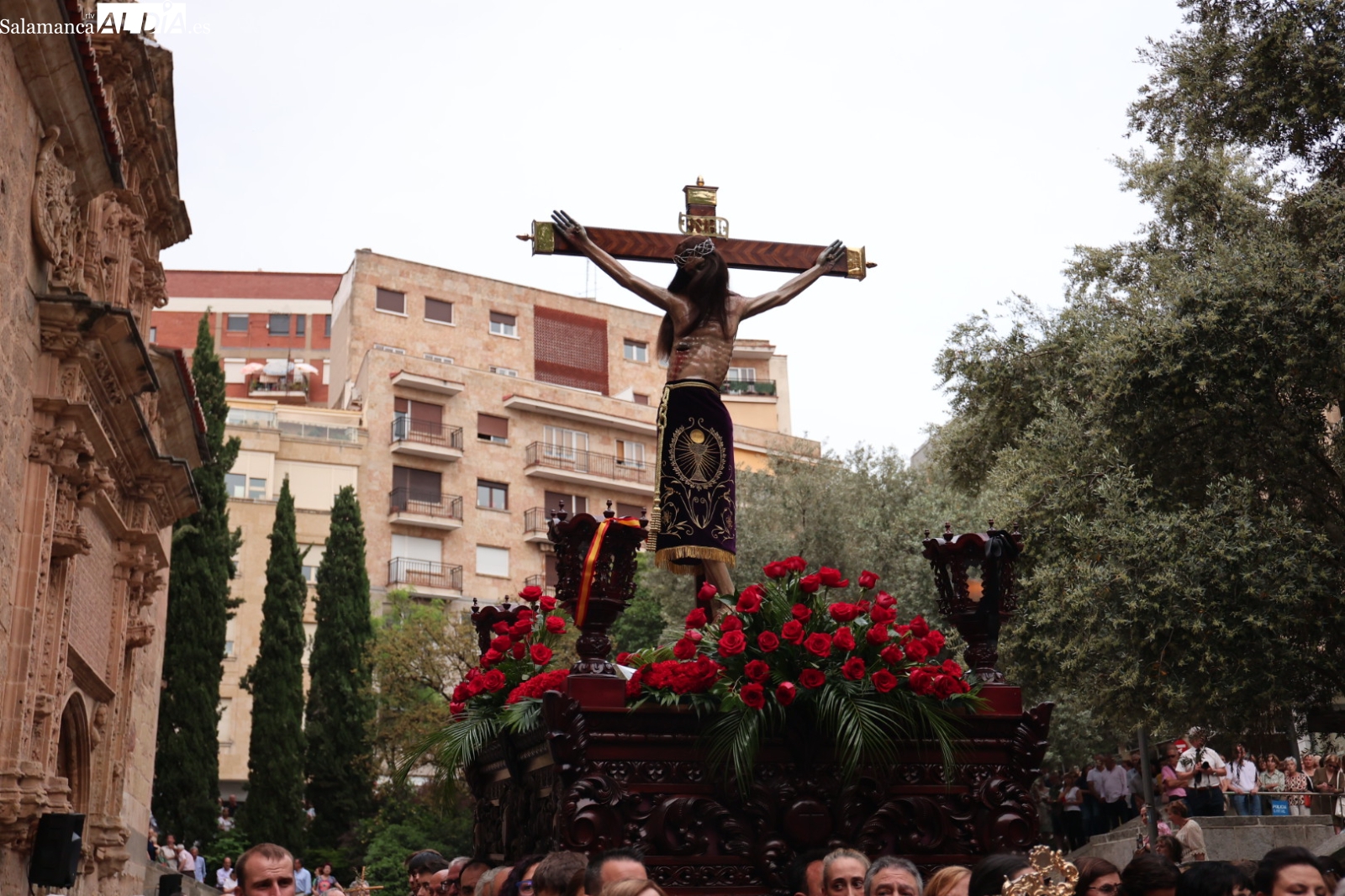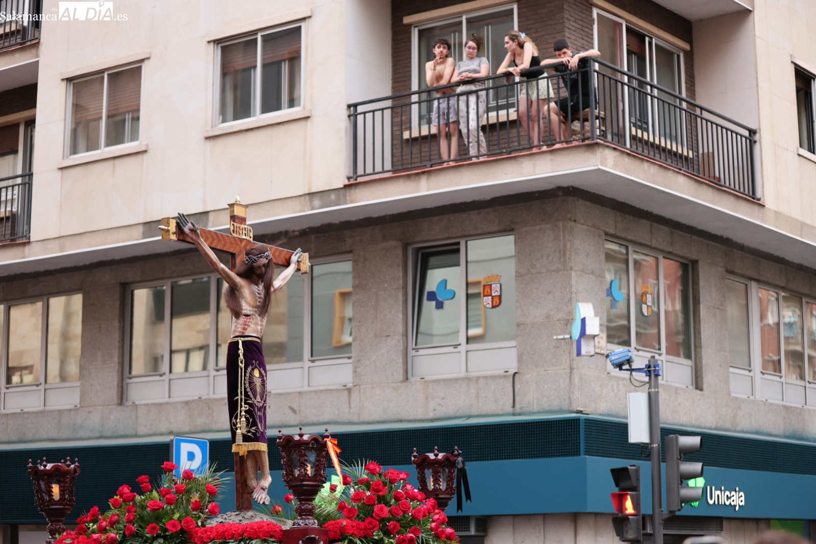 La Cuesta de Sancti Spíritus volvió a ser escenario de una de las procesiones más sobrecogedoras de la ciudad: la del Cristo de los Milagros. Decenas de fieles y curiosos se congregaron en este emblemático enclave para acompañar, en un profundo silencio y respeto, la imagen del Cristo, una talla que despierta gran devoción entre los salmantinos.