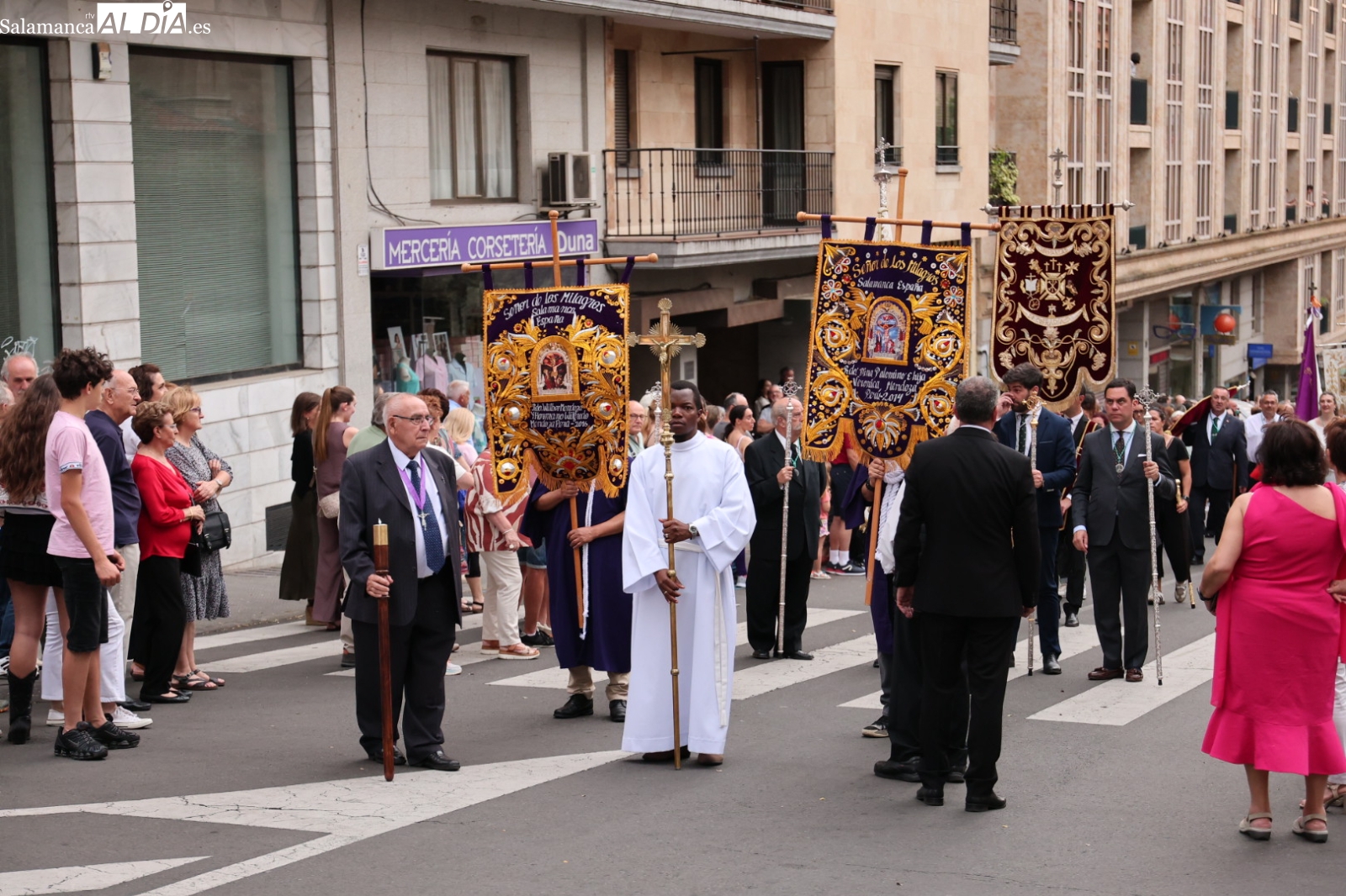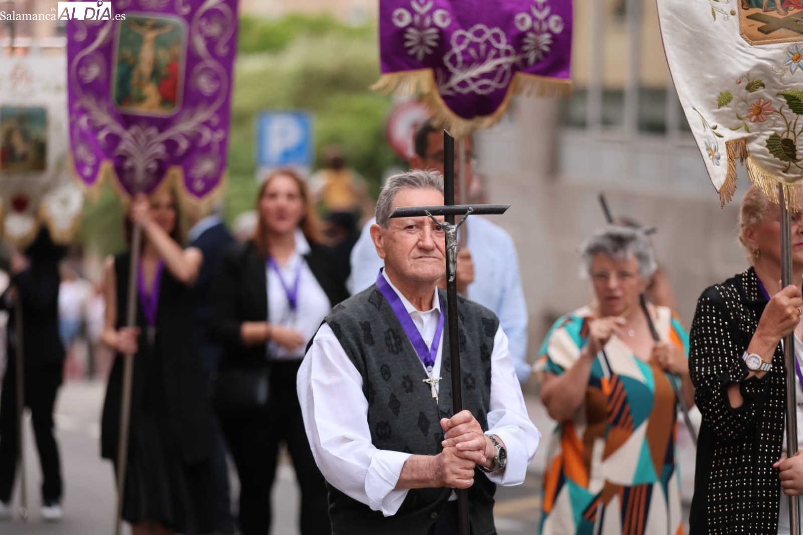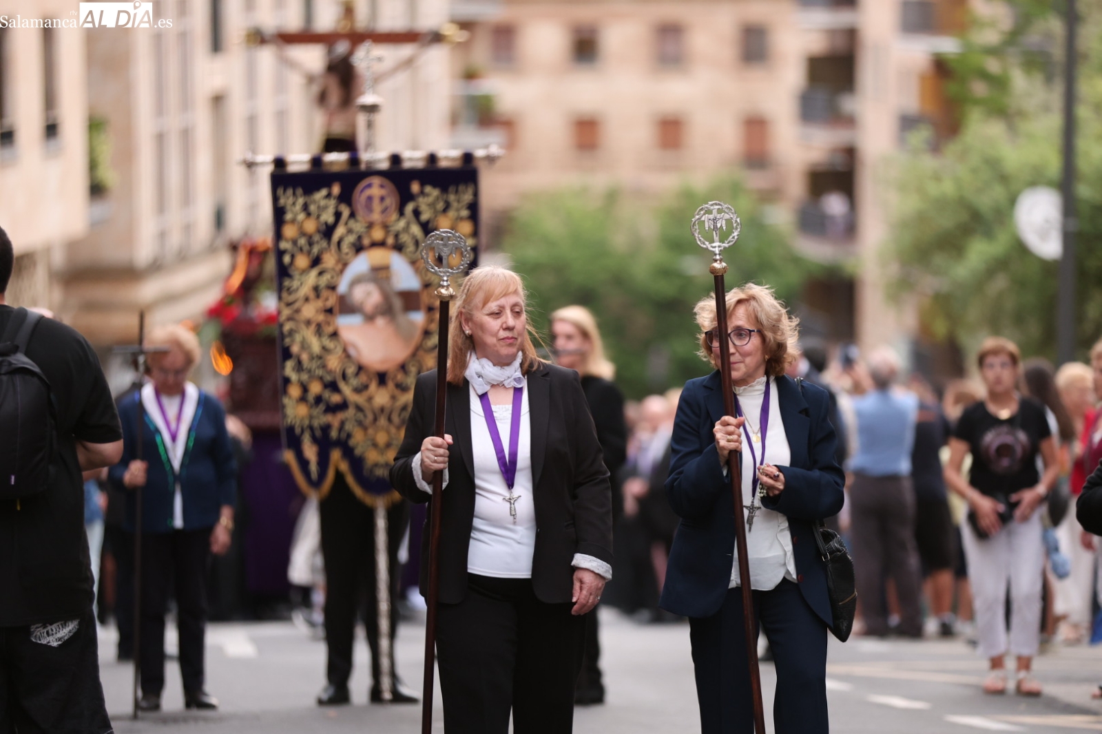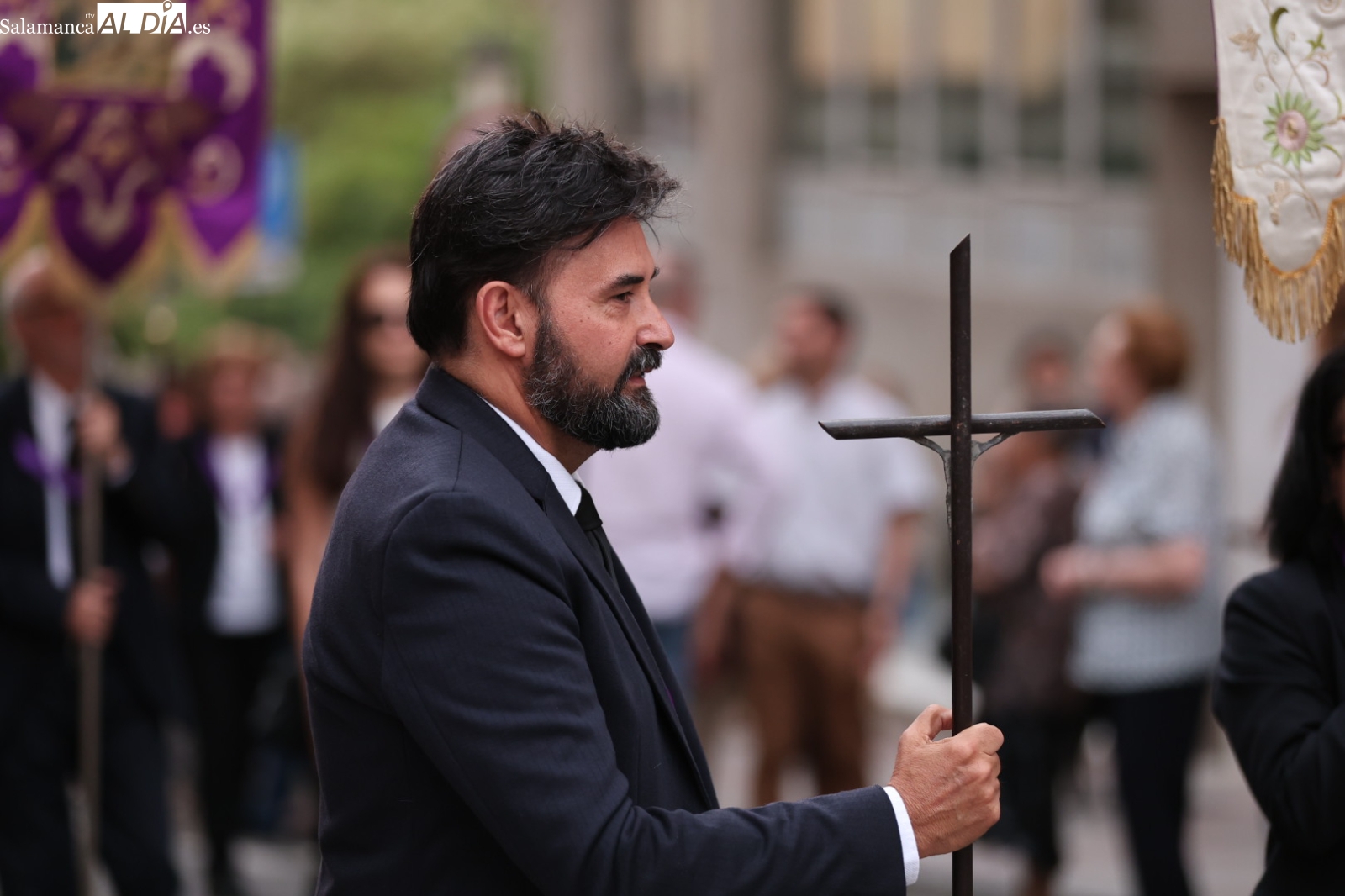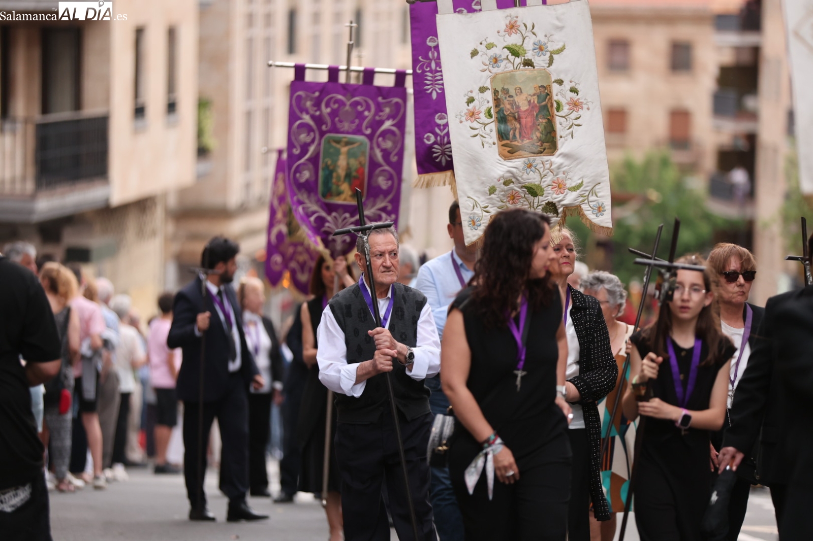 La Cuesta de Sancti Spíritus volvió a ser escenario de una de las procesiones más sobrecogedoras de la ciudad: la del Cristo de los Milagros. Decenas de fieles y curiosos se congregaron en este emblemático enclave para acompañar, en un profundo silencio y respeto, la imagen del Cristo, una talla que despierta gran devoción entre los salmantinos.