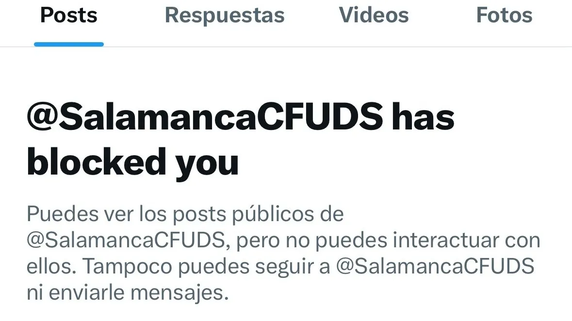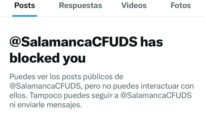 Fede Blázquez, exdirector general del Salamanca UDS, ha denunciado haber sido bloqueado de las redes sociales del club. Asimismo, cabe recordar que él estuvo un tiempo en el organigrama y a las pocas jornadas de Liga de las 24/25 se fue, pero no se hizo oficial hasta varios meses después.