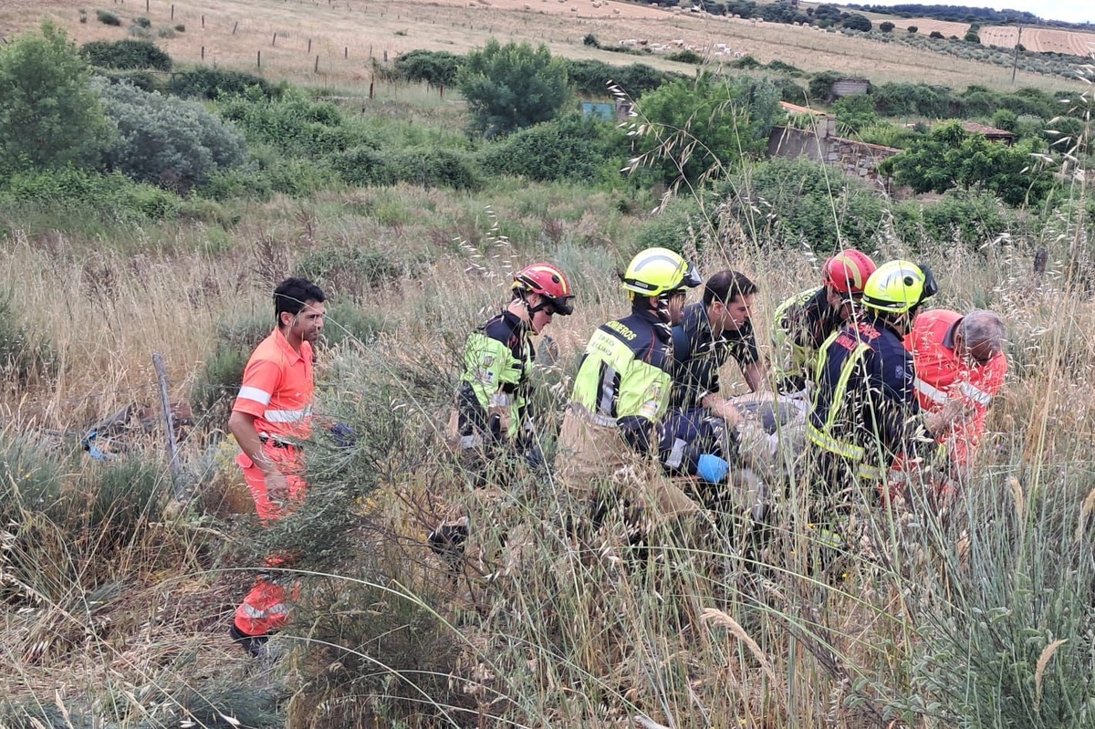 Guardia Civil, Bomberos de Lumbrales y personal de emergencias del Sacyl auxiliaron al conductor, un varón de 80 años