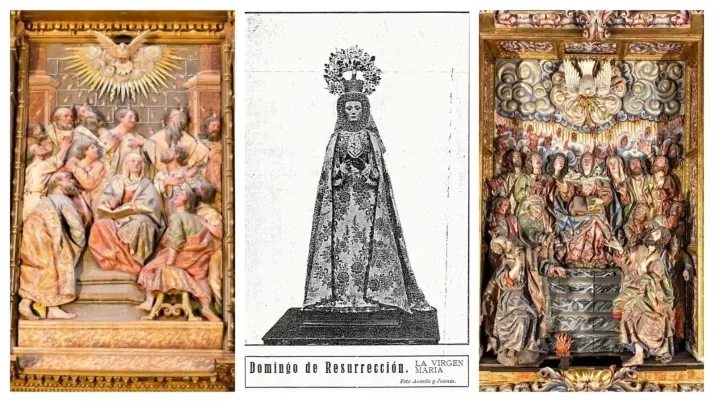 El libro de la Virgen en Sancti Spíritus y el libro de la Virgen en la Clerecía se abren para todos en esta fiesta tan mariana de Pentecostés, porque el Espíritu Santo es la Pascua de la Iglesia, de la que María es Madre. Es el mismo libro que sostenía en sus delicadas manos la Virgen de la Alegría, la virgencita de la Cofradía de la Vera Cruz que, cada mañana de Domingo de Resurrección, cuando la Pascua florece, es despojada del luto y comprueba, mirando a los ojos del Resucitado y a sus gloriosas llagas, que lo escrito se cumple, que la Vida triunfa. Cuando la Pascua es granada, la Madre de la Iglesia, la Causa de nuestra alegría, abre sus manos que anhelan otra vez ese libro donde el Resucitado ha escrito la promesa de su Espíritu Santo.