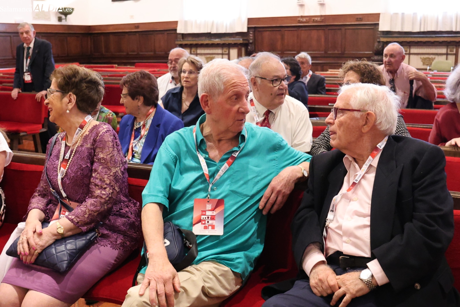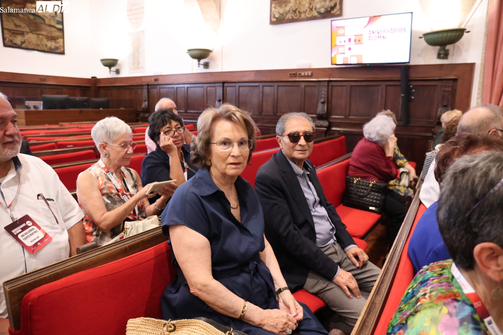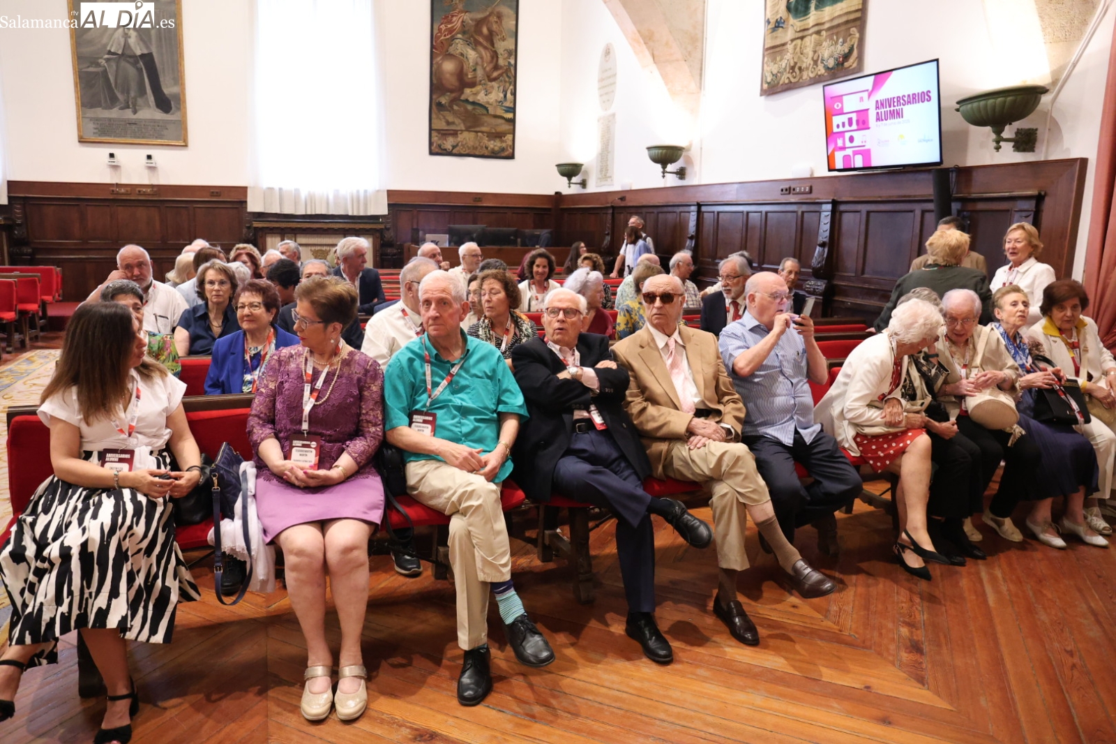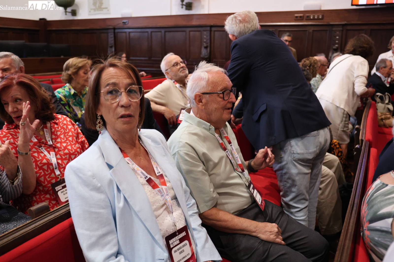 Alumni–Universidad de Salamanca ha celebrado un significativo acto académico para dar la bienvenida a las promociones de antiguos alumnos que conmemoran 45, 50, 55 y 60 años desde su graduación. El evento celebrado en el Paraninfo de la Universidad ha contado con la participación del vicerrector de Economía de la USAL, Javier González; el concejal de Cultura y Turismo del Ayuntamiento de Salamanca, Ángel Fernández; la presidenta de honor de Alumni – USAL, Ángela Calvo; y el vicepresidente de la Junta Directiva de Alumni – USAL, Román Álvarez.