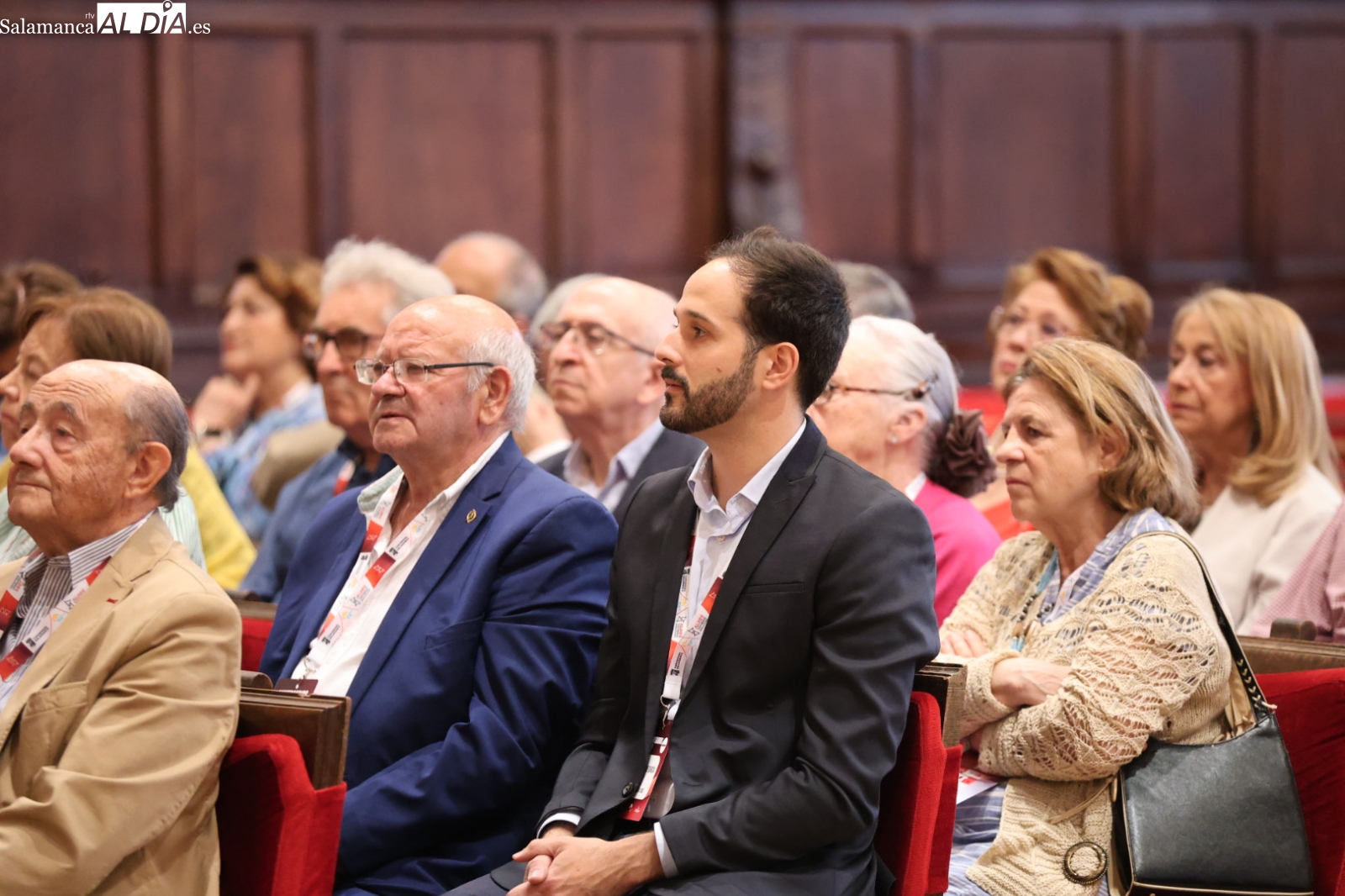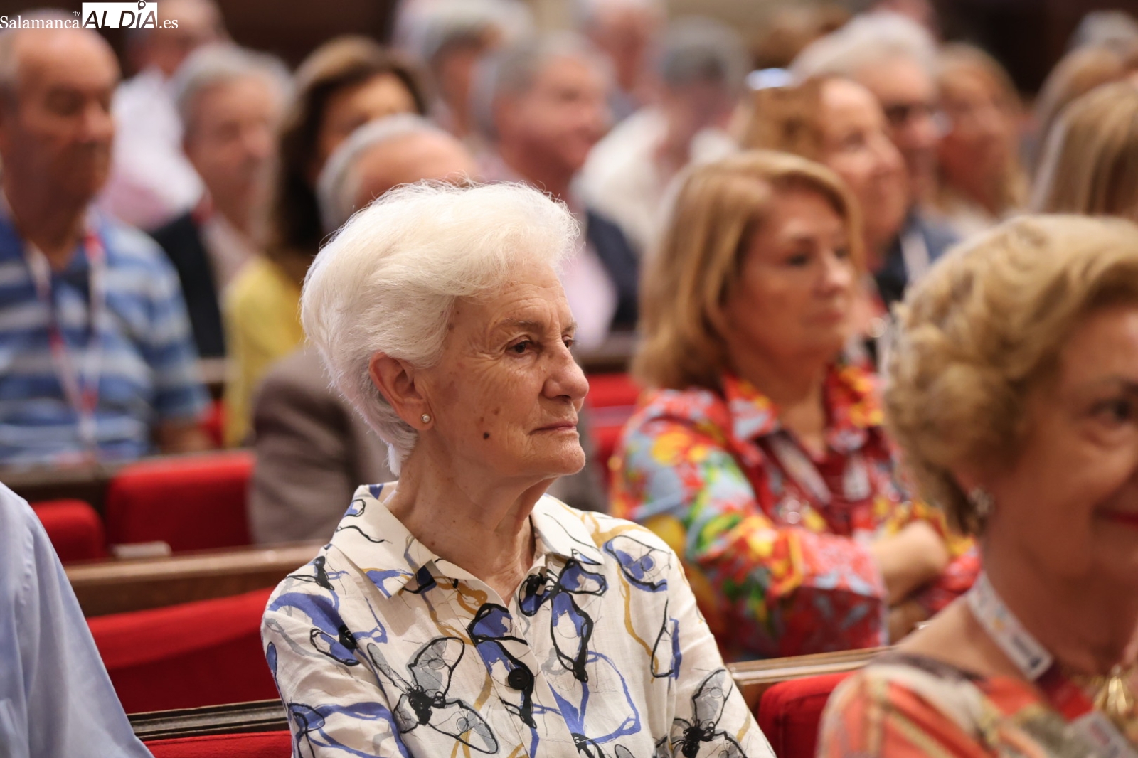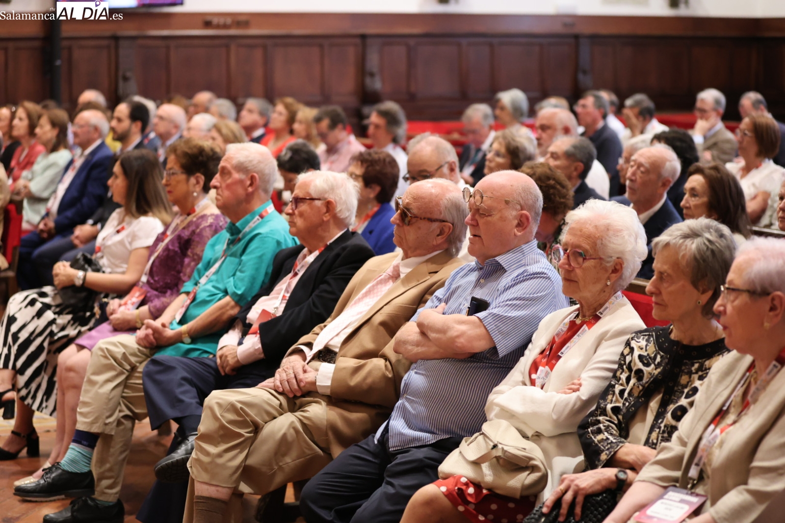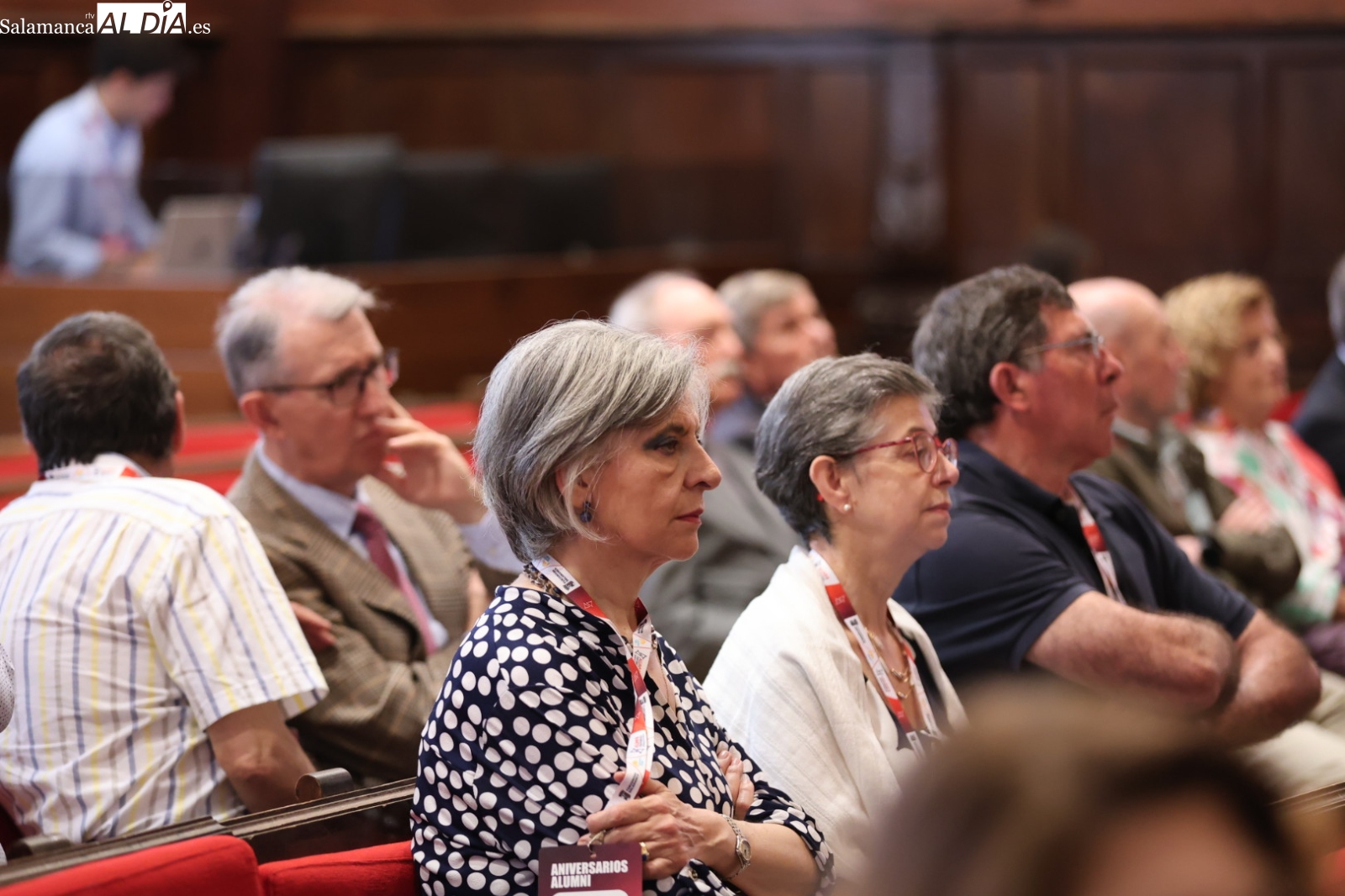Alumni–Universidad de Salamanca ha celebrado un significativo acto académico para dar la bienvenida a las promociones de antiguos alumnos que conmemoran 45, 50, 55 y 60 años desde su graduación. El evento celebrado en el Paraninfo de la Universidad ha contado con la participación del vicerrector de Economía de la USAL, Javier González; el concejal de Cultura y Turismo del Ayuntamiento de Salamanca, Ángel Fernández; la presidenta de honor de Alumni – USAL, Ángela Calvo; y el vicepresidente de la Junta Directiva de Alumni – USAL, Román Álvarez.
