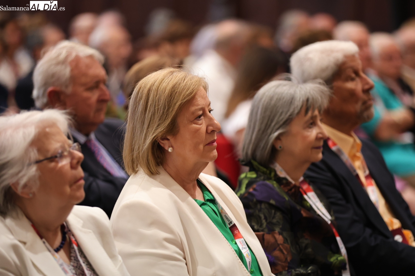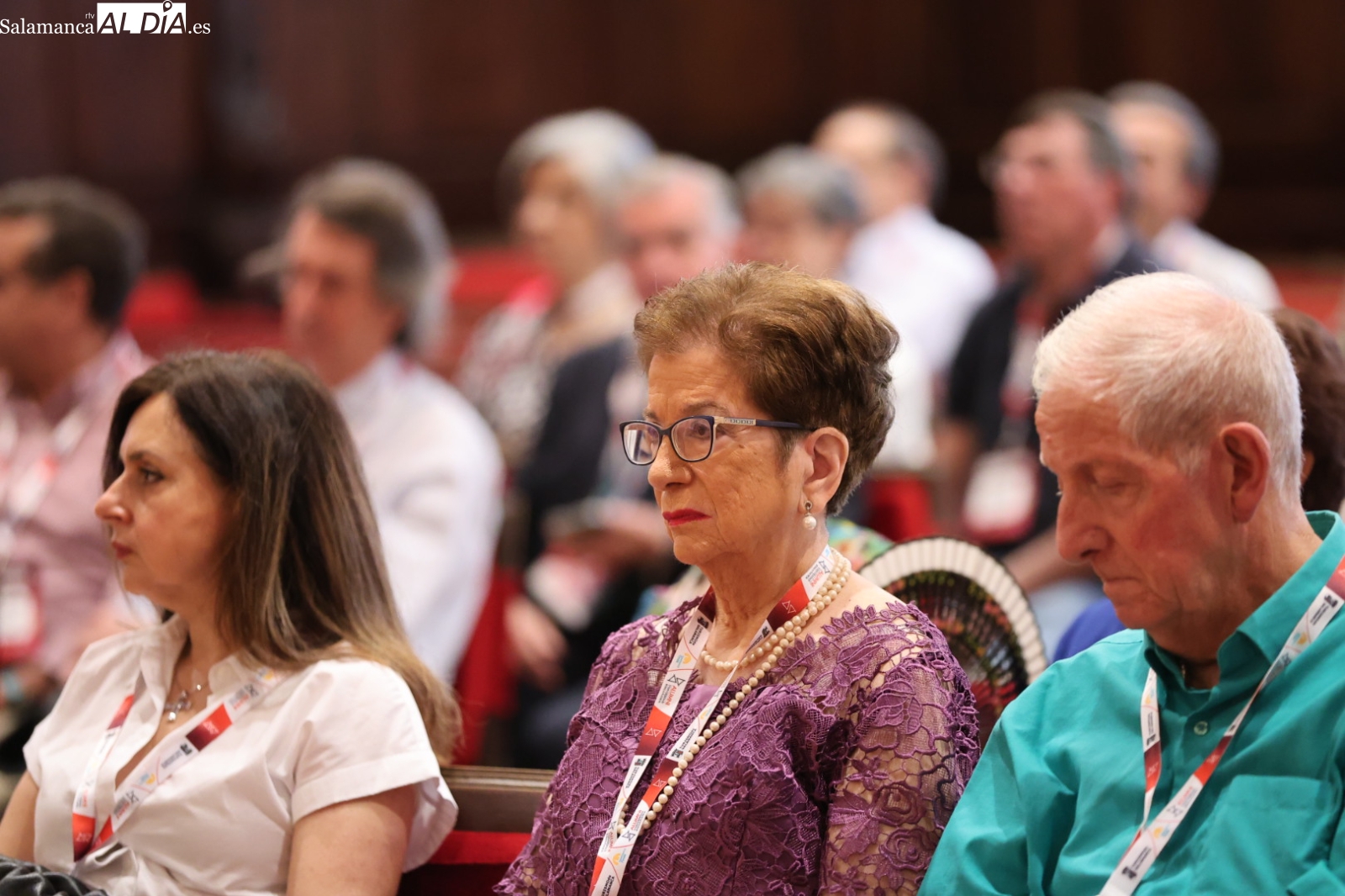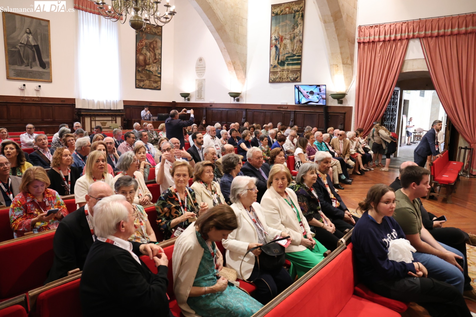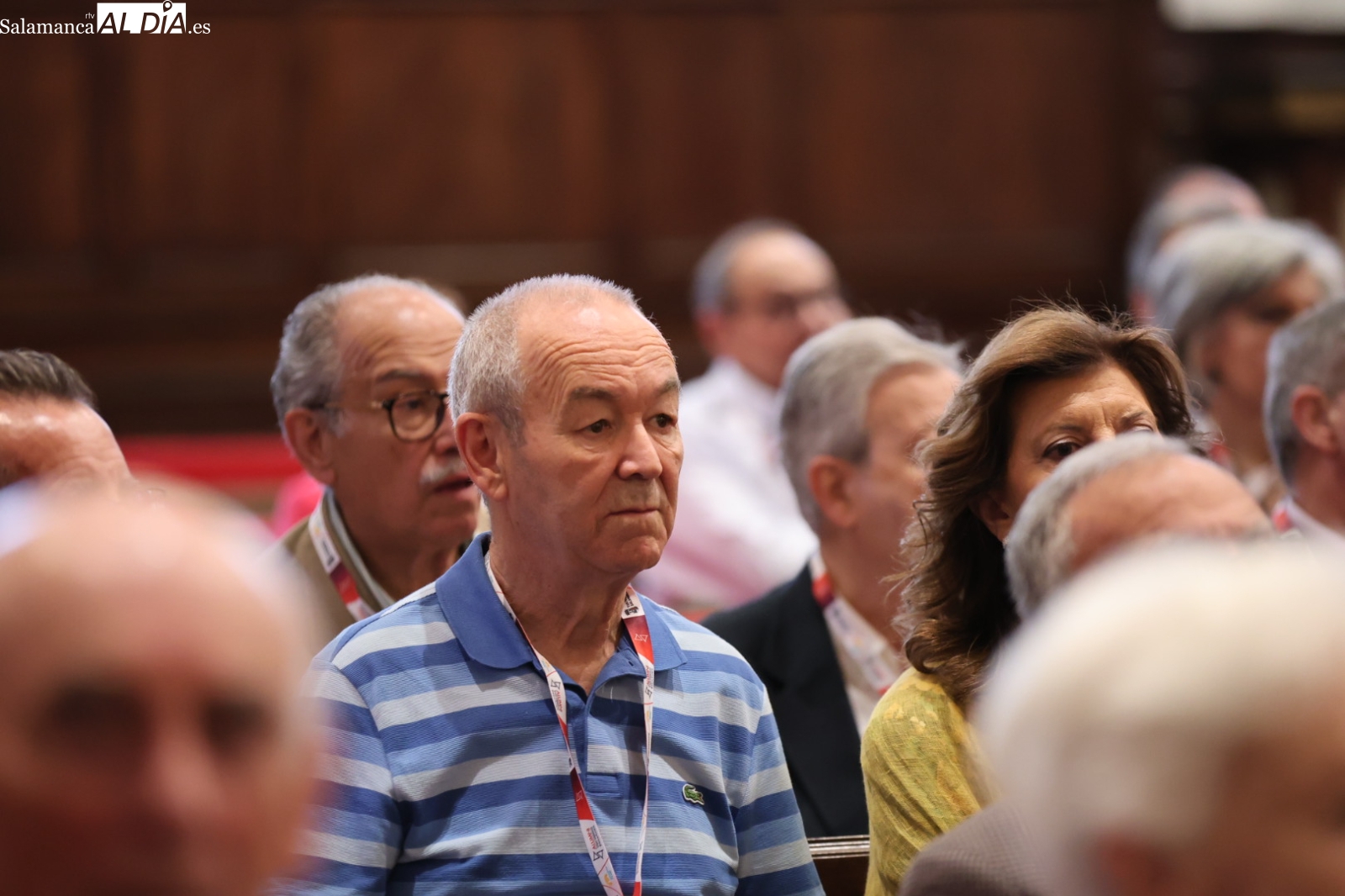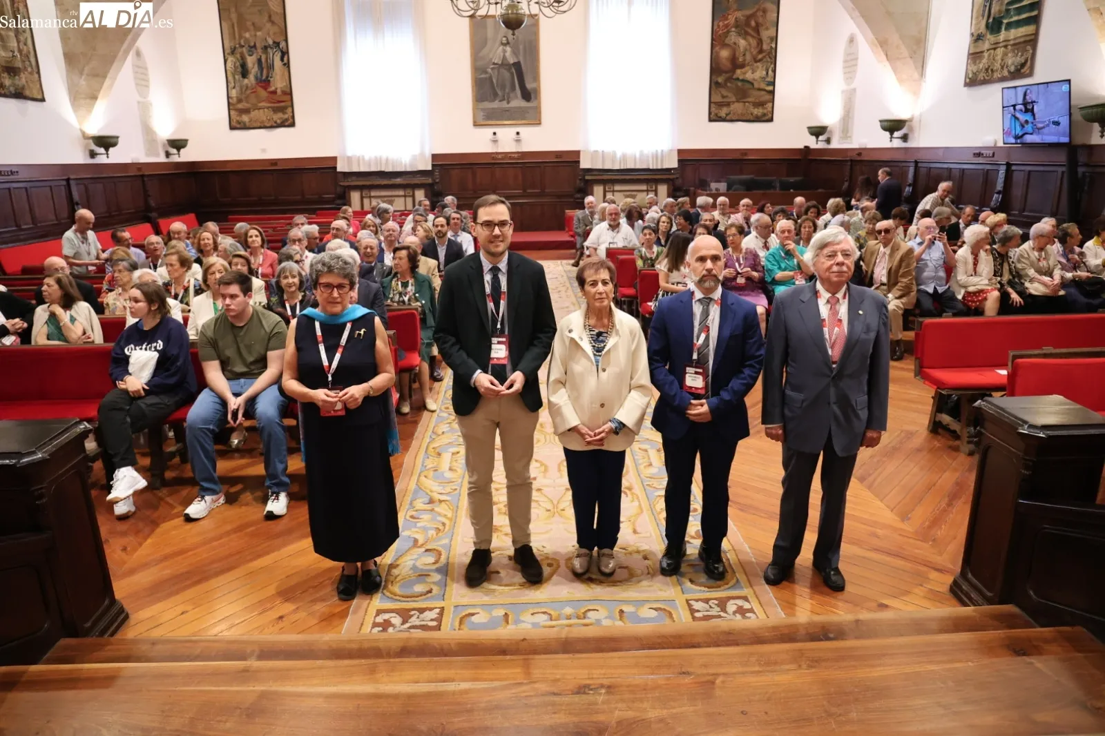 Alumni–Universidad de Salamanca ha celebrado un significativo acto académico para dar la bienvenida a las promociones de antiguos alumnos que conmemoran 45, 50, 55 y 60 años desde su graduación. El evento celebrado en el Paraninfo de la Universidad ha contado con la participación del vicerrector de Economía de la USAL, Javier González; el concejal de Cultura y Turismo del Ayuntamiento de Salamanca, Ángel Fernández; la presidenta de honor de Alumni – USAL, Ángela Calvo; y el vicepresidente de la Junta Directiva de Alumni – USAL, Román Álvarez.