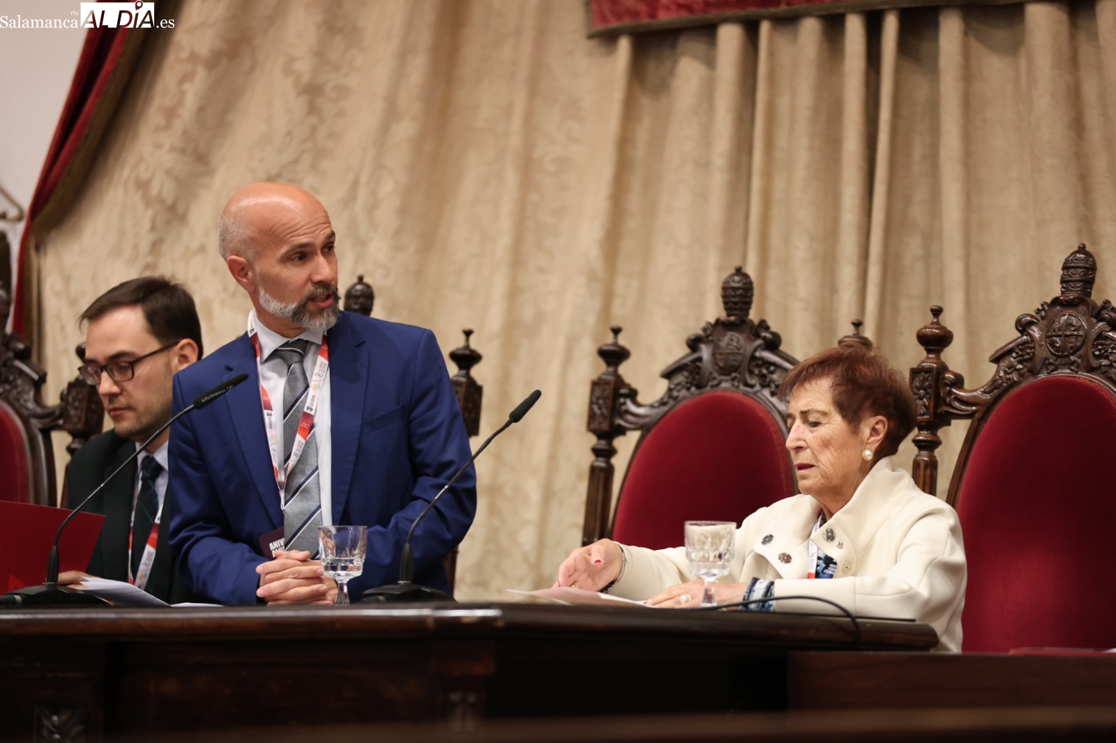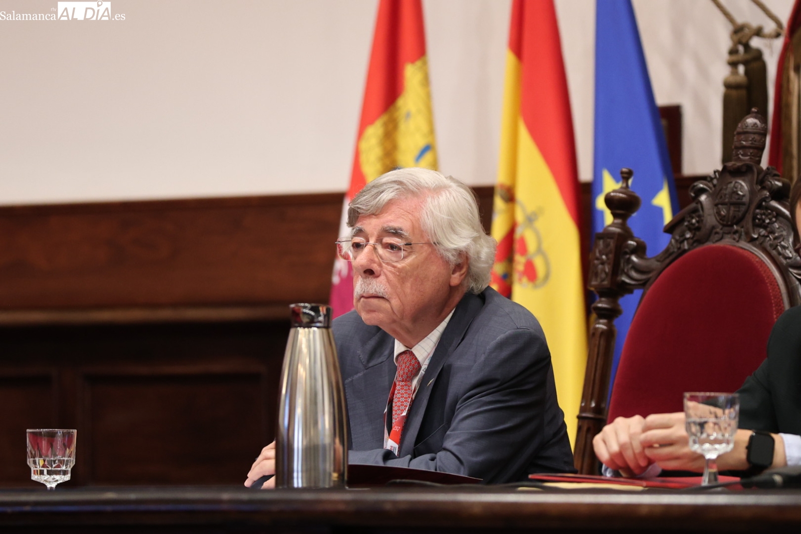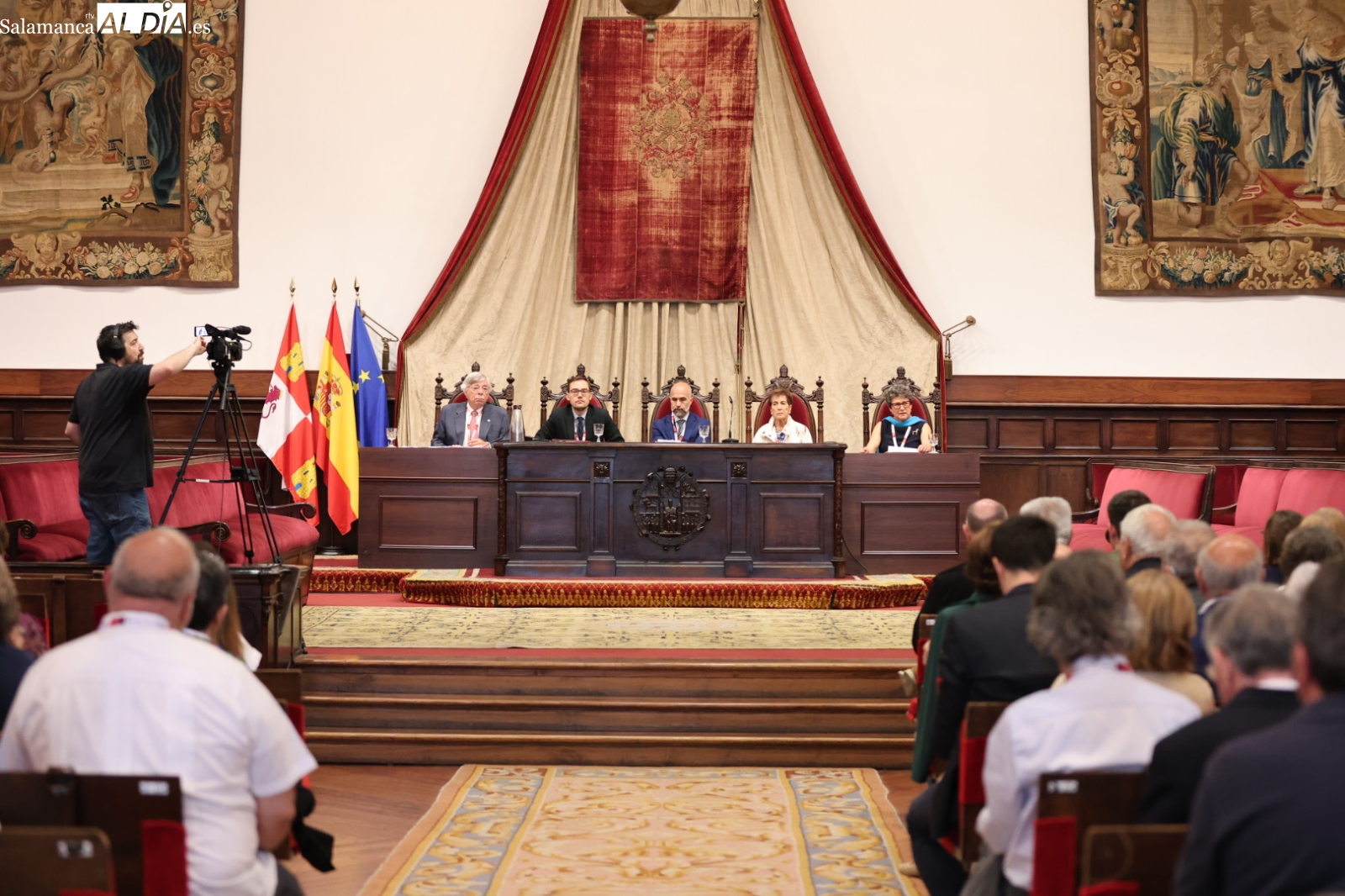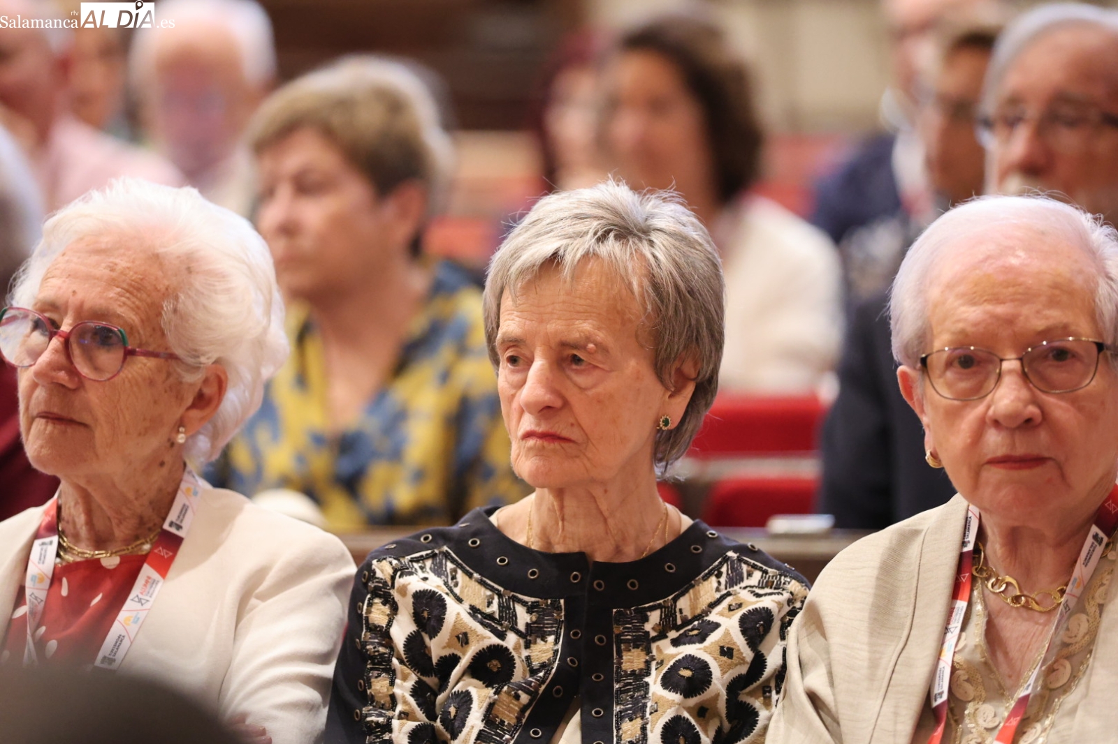 Alumni–Universidad de Salamanca ha celebrado un significativo acto académico para dar la bienvenida a las promociones de antiguos alumnos que conmemoran 45, 50, 55 y 60 años desde su graduación. El evento celebrado en el Paraninfo de la Universidad ha contado con la participación del vicerrector de Economía de la USAL, Javier González; el concejal de Cultura y Turismo del Ayuntamiento de Salamanca, Ángel Fernández; la presidenta de honor de Alumni – USAL, Ángela Calvo; y el vicepresidente de la Junta Directiva de Alumni – USAL, Román Álvarez.