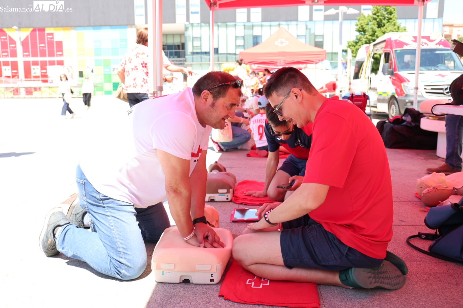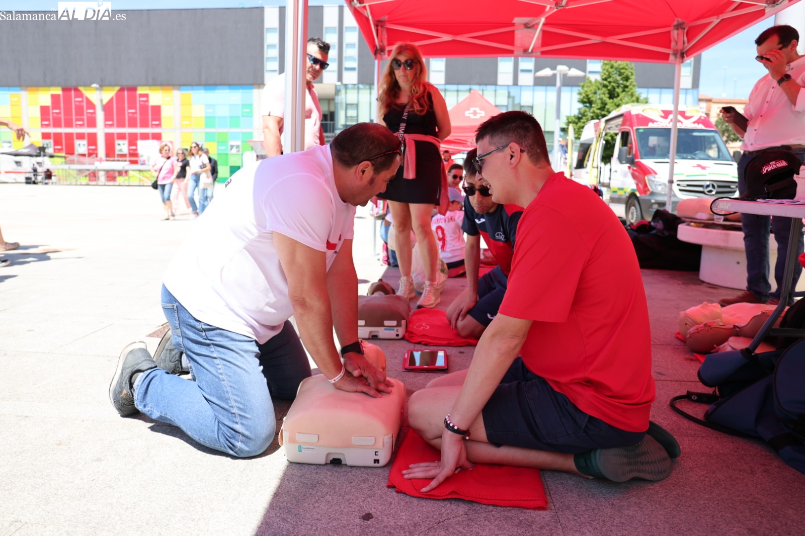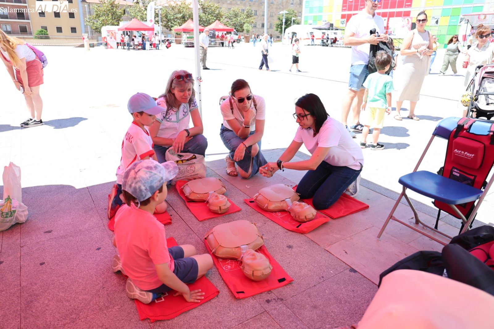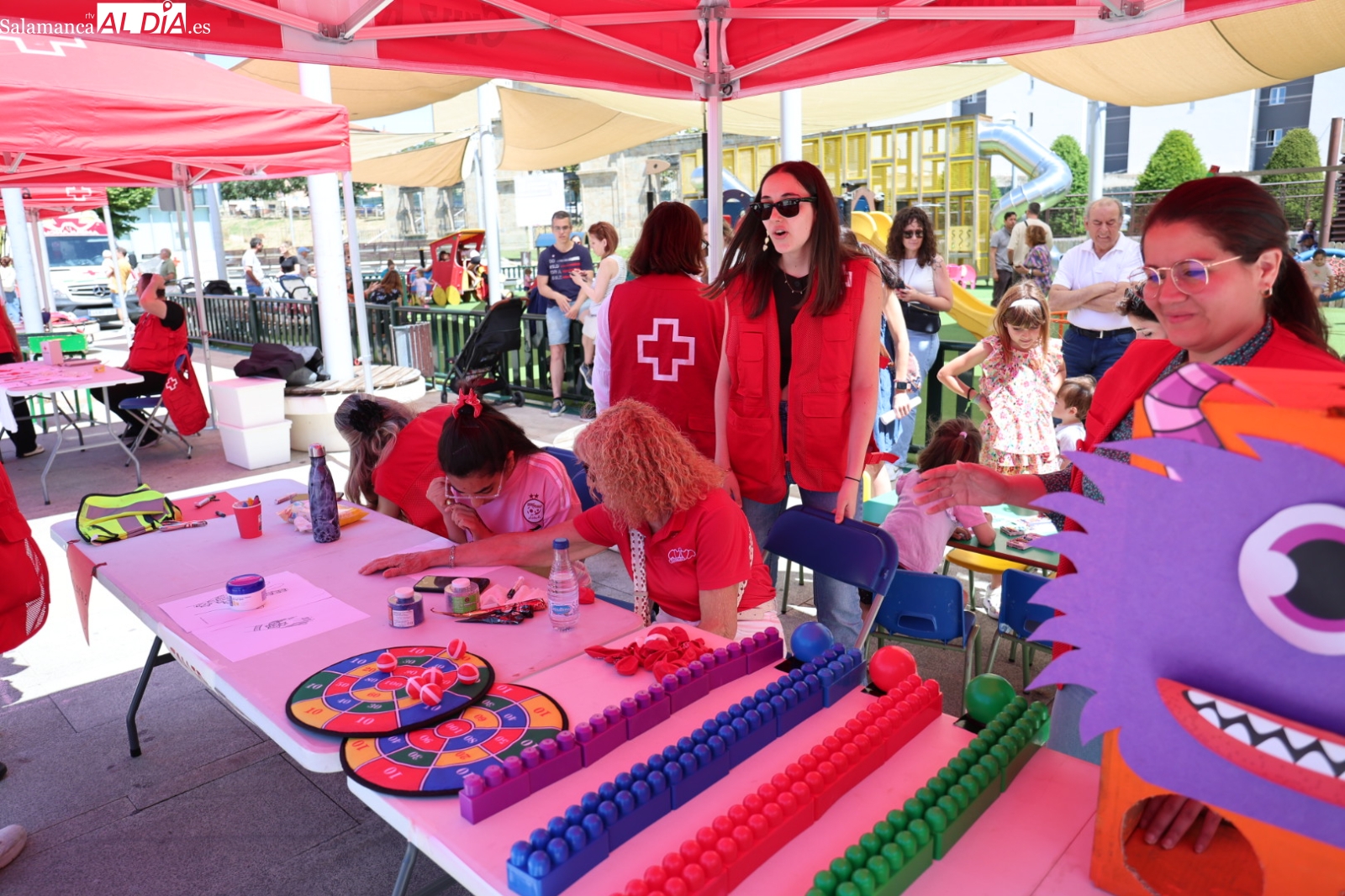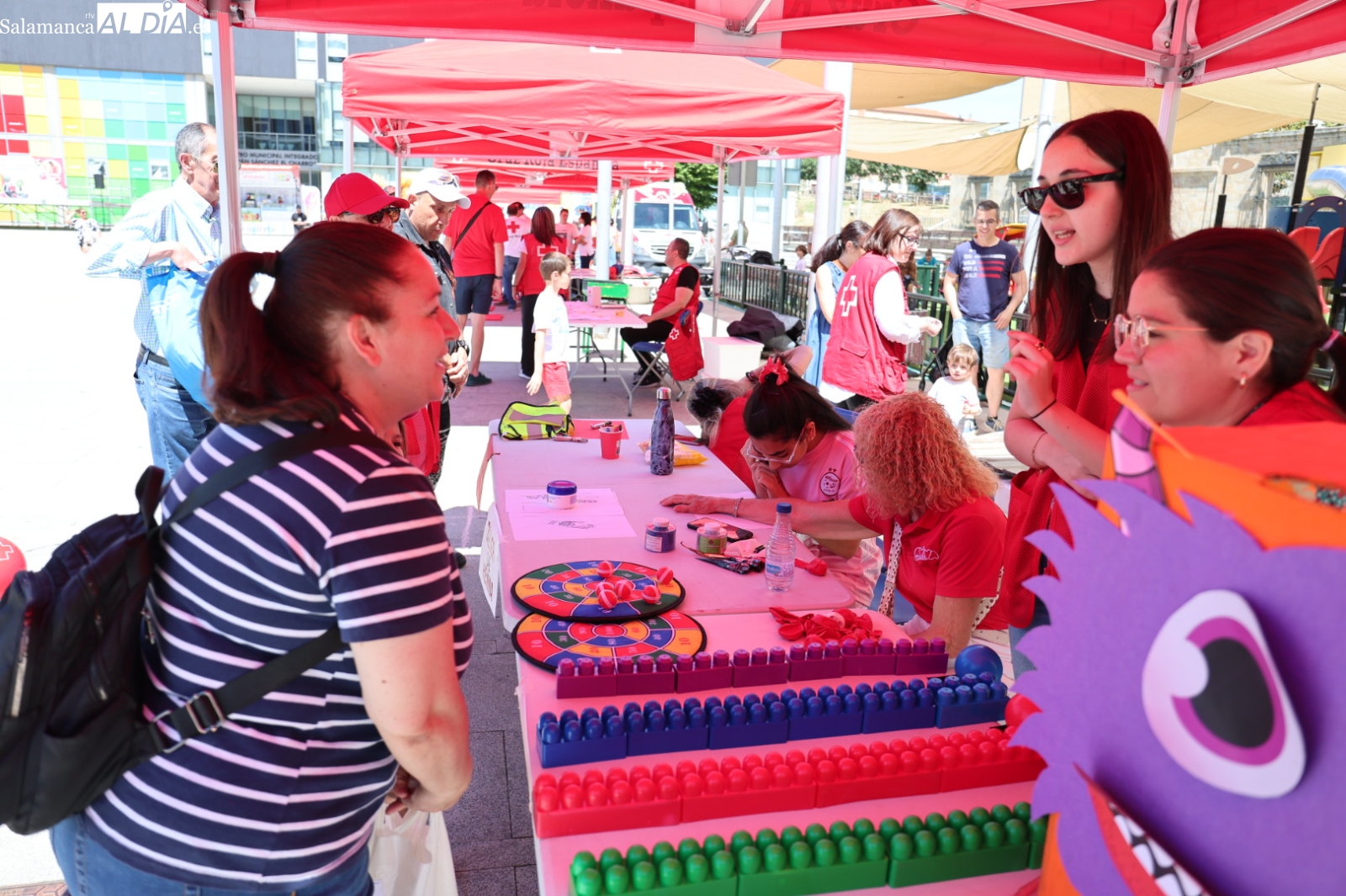 La Plaza de la Concordia de Salamanca se ha convertido este sábado, 7 de junio, en el epicentro de la solidaridad con la celebración de la emblemática Fiesta de la Banderita de Cruz Roja. Bajo el lema “Un día para compartir, un futuro para cambiar”, la organización humanitaria ha desplegado un amplio abanico de actividades lúdicas y participativas desde las 11:00 hasta las 20:00 horas, con el objetivo primordial de recaudar fondos para sus proyectos de apoyo a la infancia y las familias en la provincia. Al evento acudieron para mostrar su respaldo el alcalde de Salamanca, Carlos García Carbayo, y los vicepresidentes primero y tercero de la Diputación, David Mingo y Eva Picado, respectivamente.