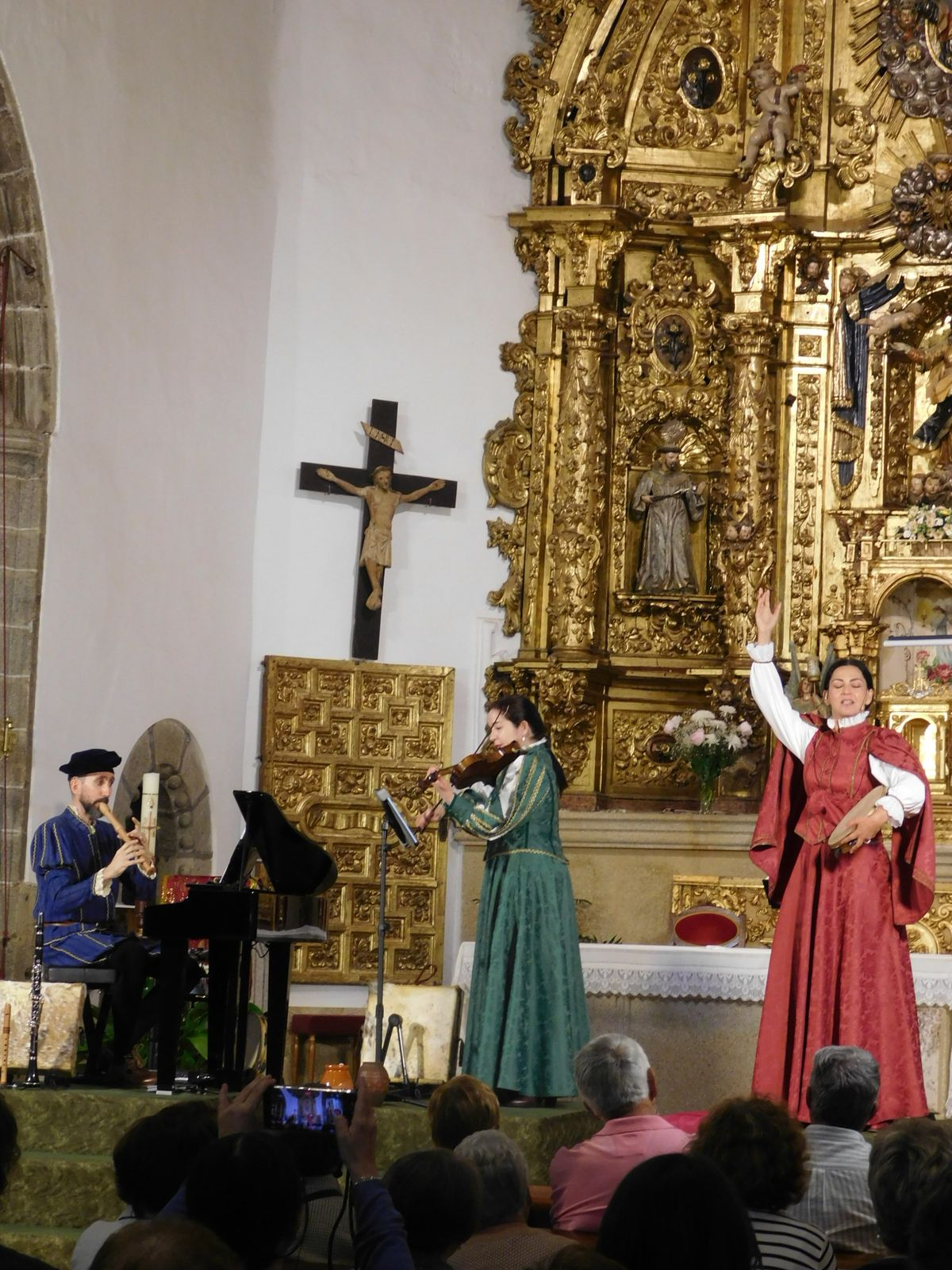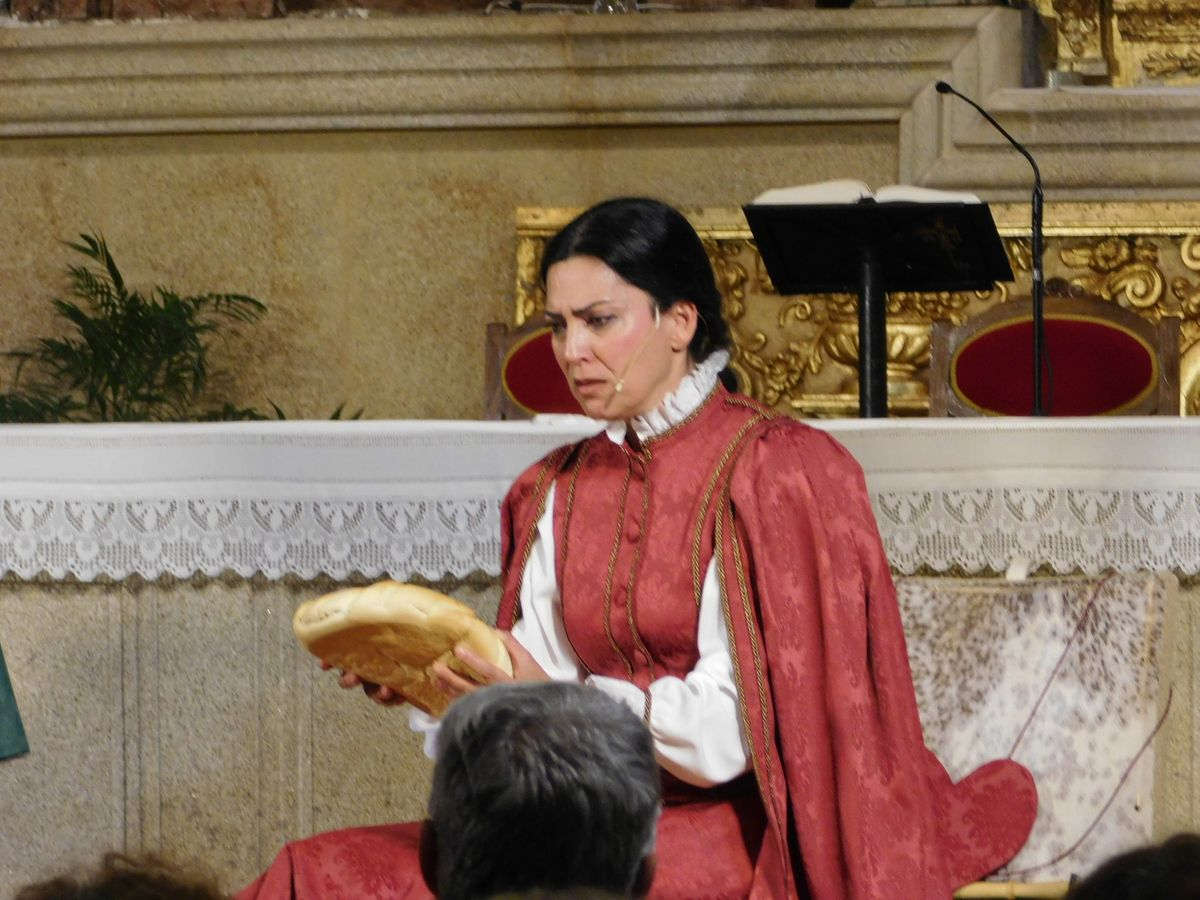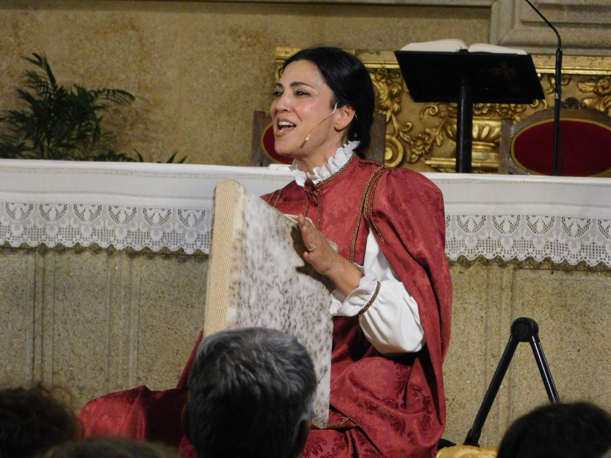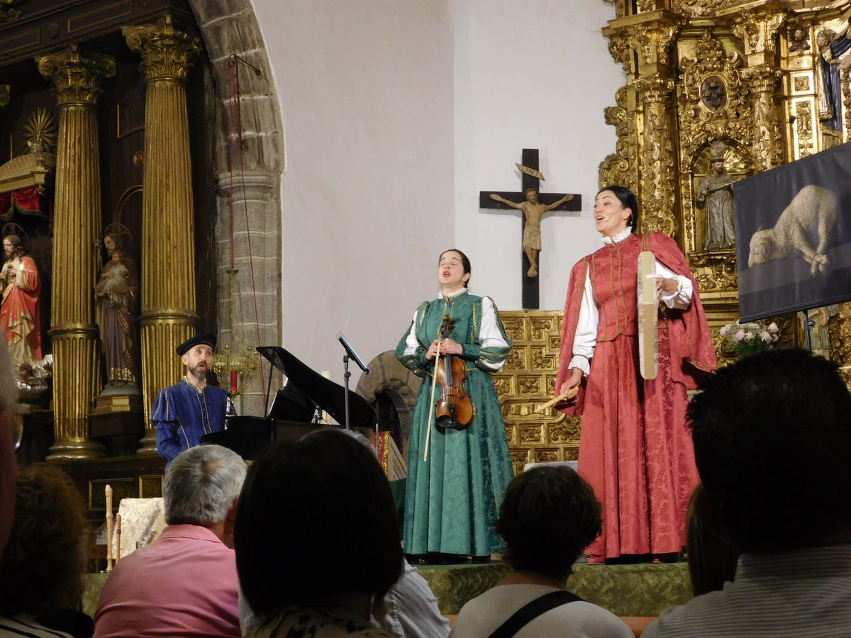 La maestría y profesionalidad de los tres intérpretes que forman el elenco, hicieron fluir de principio a fin este espectáculo místico. La actriz y cantante salmantina de talla internacional, Guadalupe Lancho, captó en todo momento la atención del público que además se sorprendió con su potente y melodiosa voz. El director musical, también salmantino, Juan Francisco Vicente se convirtió en un auténtico “hombre orquesta” haciendo sonar primorosamente todos los instrumentos que pasaron por sus manos. Y completó este “trío de ases” la cubana afincada en Salamanca, Jenny Leyva que, con una interpretación sentida y delicada, hizo hablar a su violín.