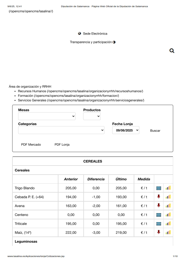 En la Mesa de Cereal baja -3,00 €/t el maíz (219€/t), -2,00 €/t la avena (161 €/t) y -1,00 €/t la cebada (193€/t), mientras que trigo y triticale repiten, y el centeno sigue sin cotizar. Asimismo, los forrajes suben 1,00 €/t y extra cotiza a 86 €/t, y el de primera a 76 €/t., la veza henificada sube 10,00 €/t y se coloca a 110 €/t, mientras que la alfalfa empacada cae -1,00 €/t y se paga a 179€/t.
