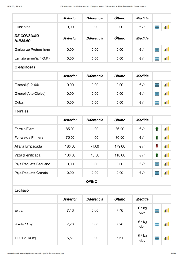 El cereal parece no tocar fondo y registra nuevas bajadas en categorías importantes como el maíz, cebada y avena. Por otro lado, el forraje, con la veza henificada muestra sus cotizaciones al alza. En cuanto al vacuno, el cebo repite y el de sacrificio sigue sin tocar techo tras nuevas subidas en todas las categorías a excepción de los añojos y los terneros de menos de 12 meses.
