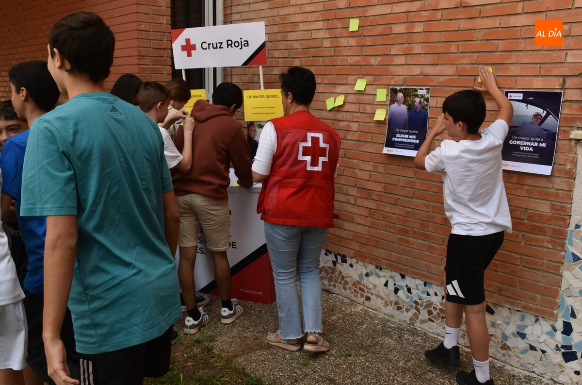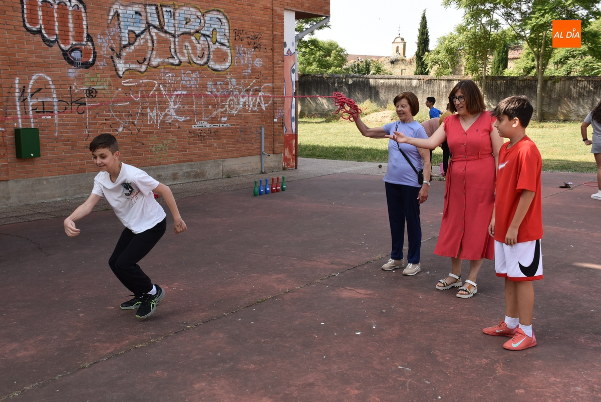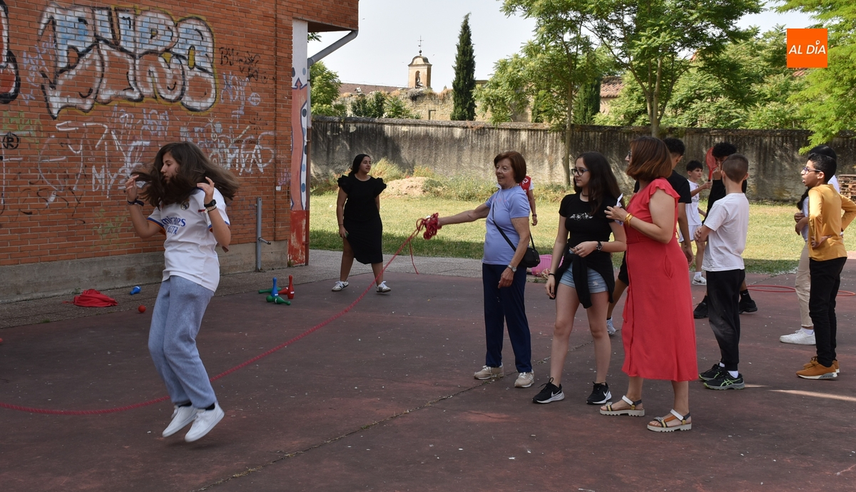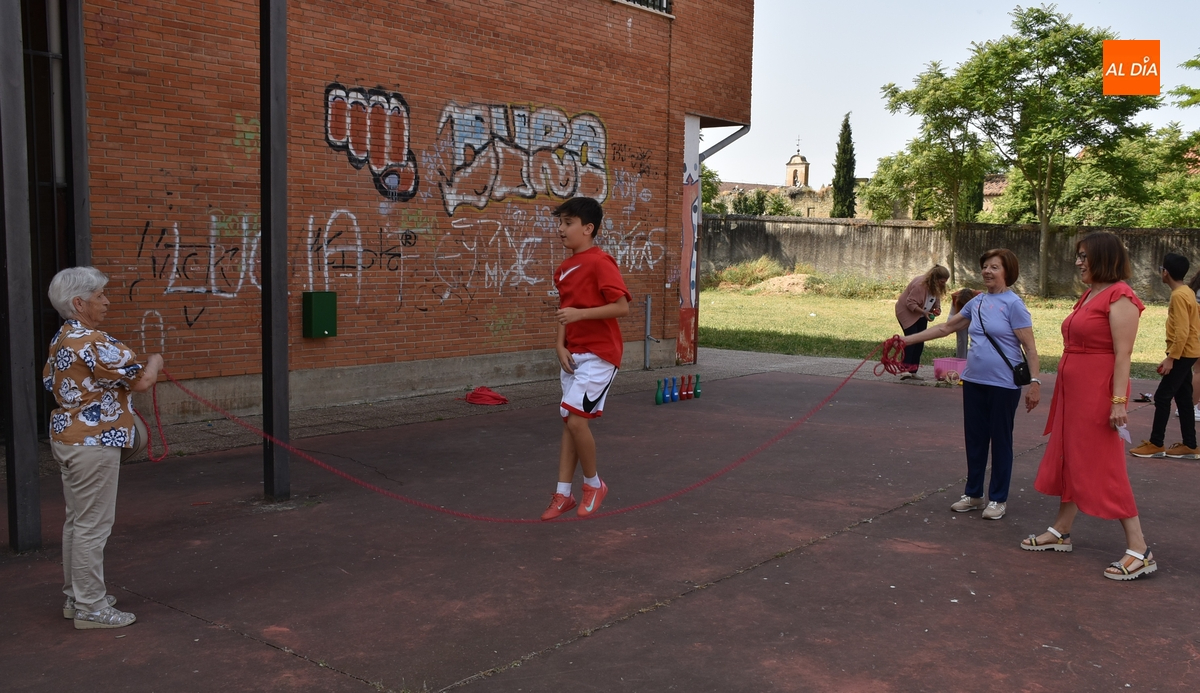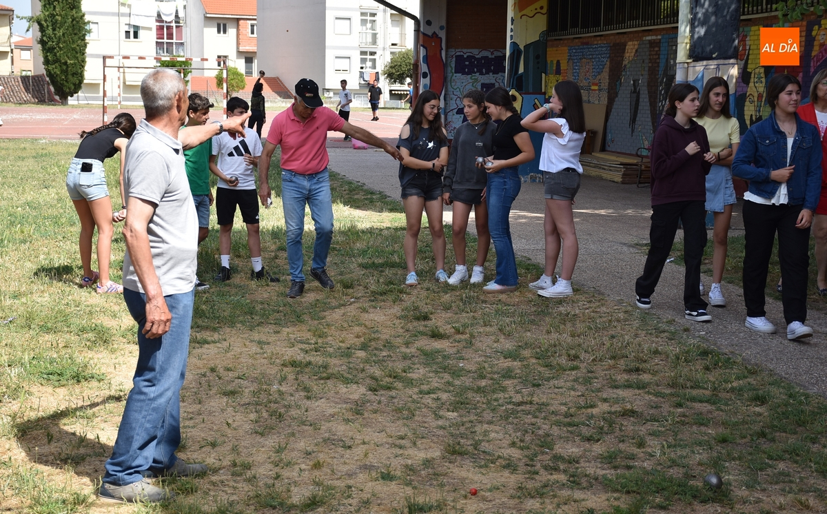 Allí, estos mayores compartieron un agradable tiempo de juegos con alumnos y profesores del centro (principalmente de 1º de la ESO), teniendo la oportunidad de jugar de forma conjunta a la comba, a los bolos, a la petanca, o a varios juegos de mesa. Como complemento, los alumnos pudieron dejar expresado por escrito qué quieren ser de mayores, lo que dejó respuestas de lo más variado.