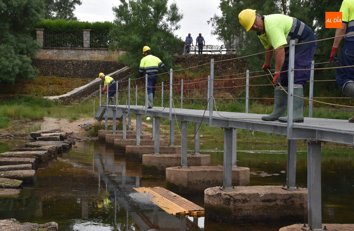 Como caña año, la pasarela (con cuya colocación se abre oficiosamente el verano en Ciudad Rodrigo) permanecerá instalada hasta el 30 de septiembre, según el permiso concedido en su día por la Confederación Hidrográfica del Duero al Ayuntamiento mirobrigense.