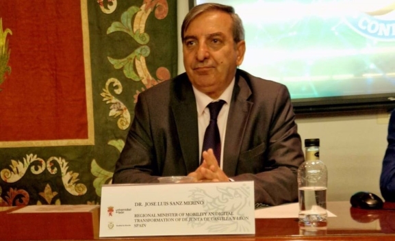 El consejero de Movilidad y Transformación Digital de la Junta de Castilla y León, José Luis Sanz Merino, en la inauguración de la VI White Hat Conference celebrada en la Universidad de León.