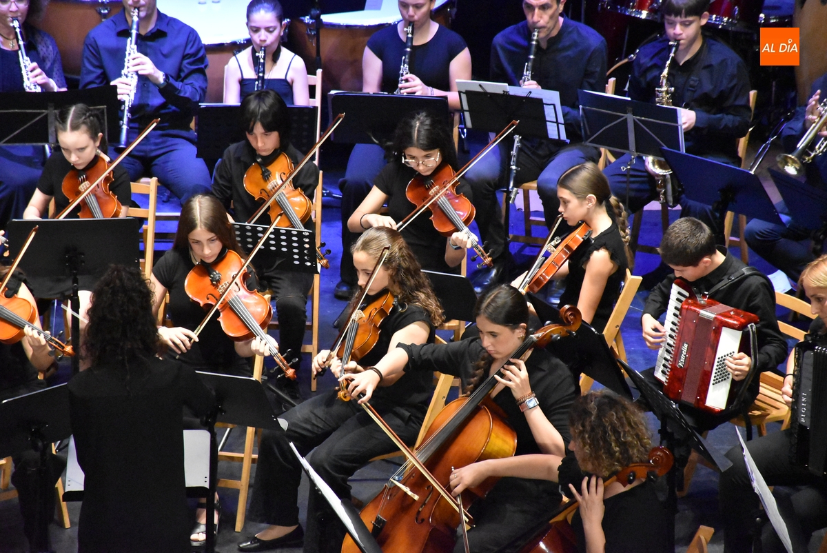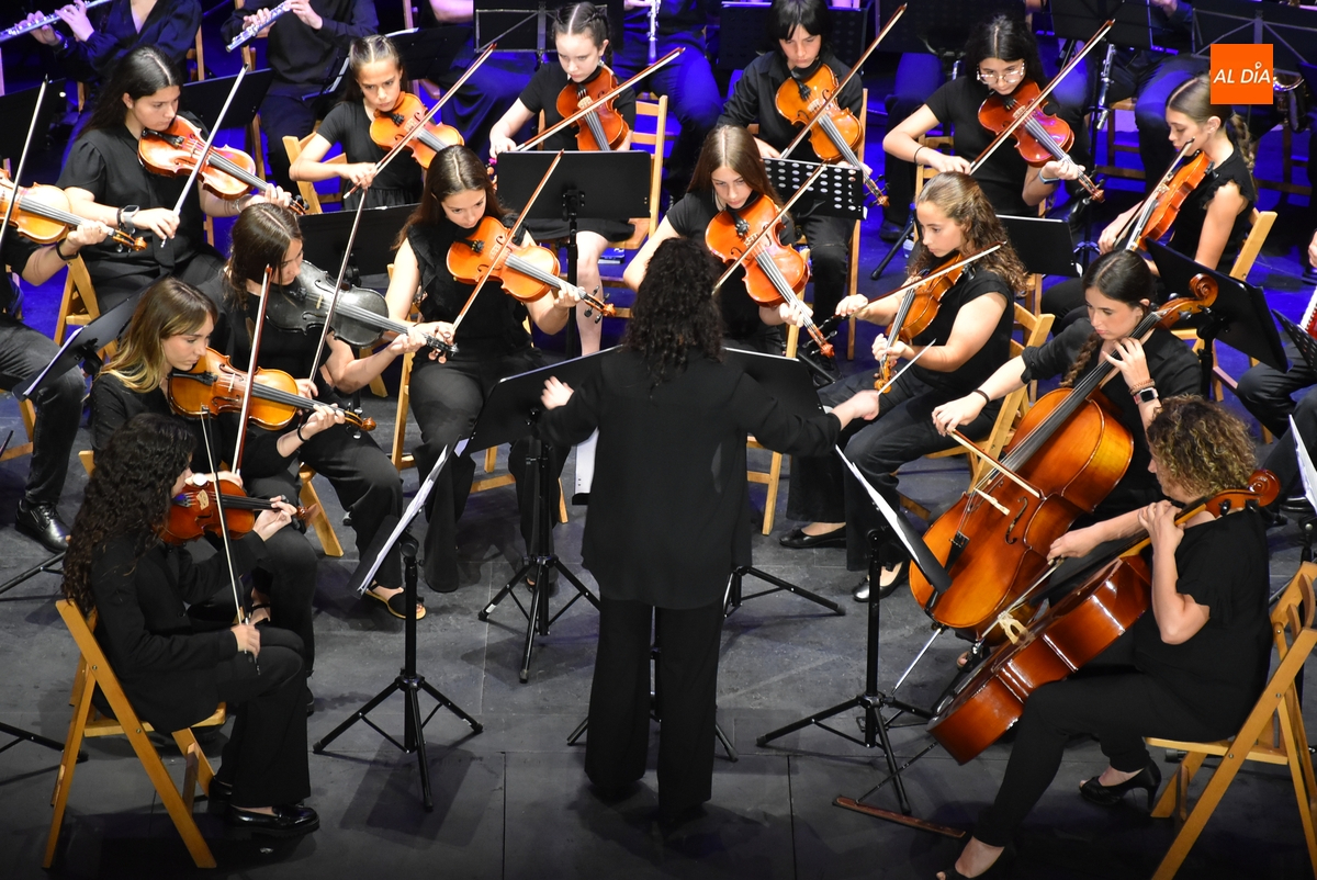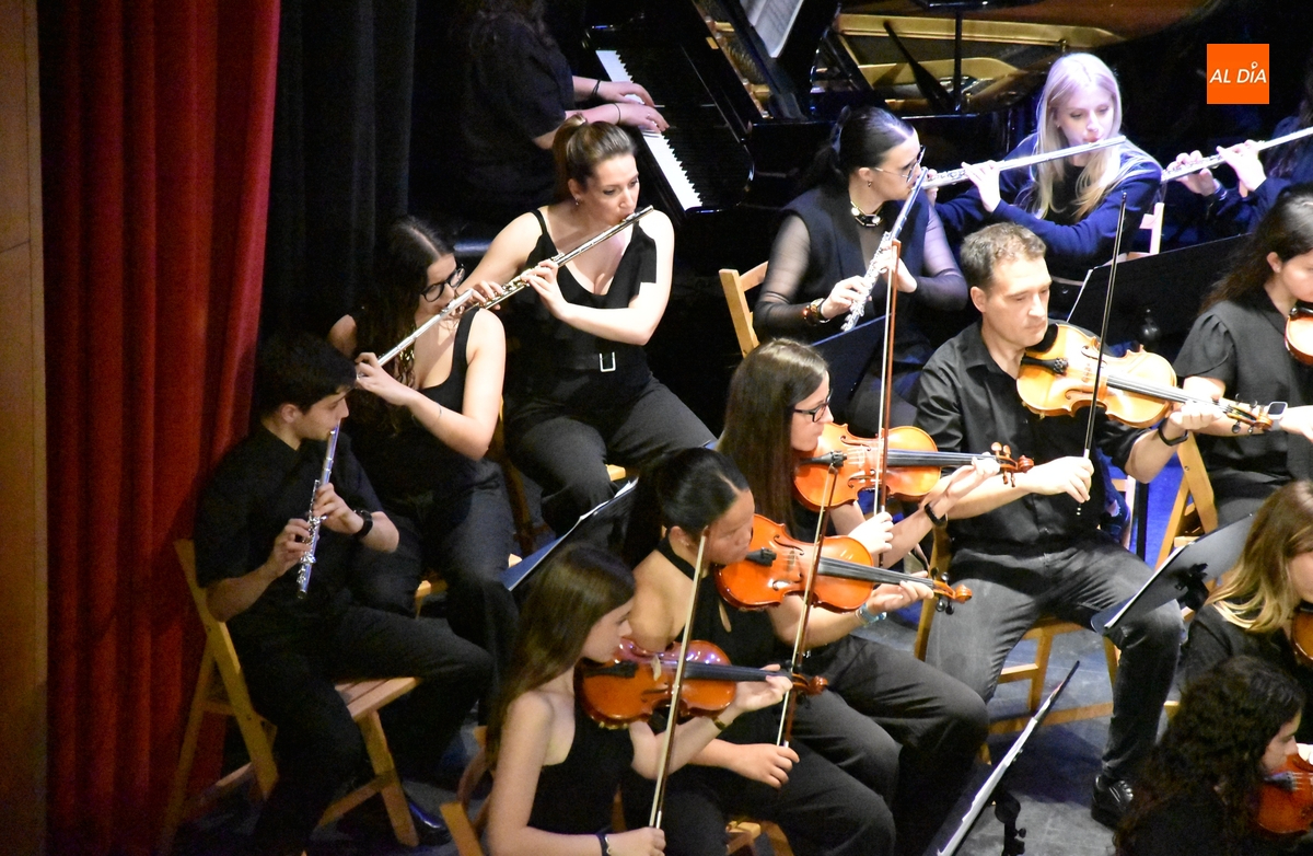 La Orquesta Sinfónica está integrada en estos momentos, en lo que a violines se refiere, por Ylenia Domínguez, Alexia Martín, Leonor Román, Jing Yao Chen, Adele Domene, Javier Velasco, Mara Vicente, Celia Comuñas, Alba Benito, Vega Muñoz, Inés González, Paula Martín, Lola De Arcos y Nilo Sierra; por las violas de Maya Iglesias y Sara Crespo; y por los violonchelos de Paloma Gutiérrez, Águeda Dorado, Sergio Caballer, Alicia Velasco, Candela Oliva y Alicia García.