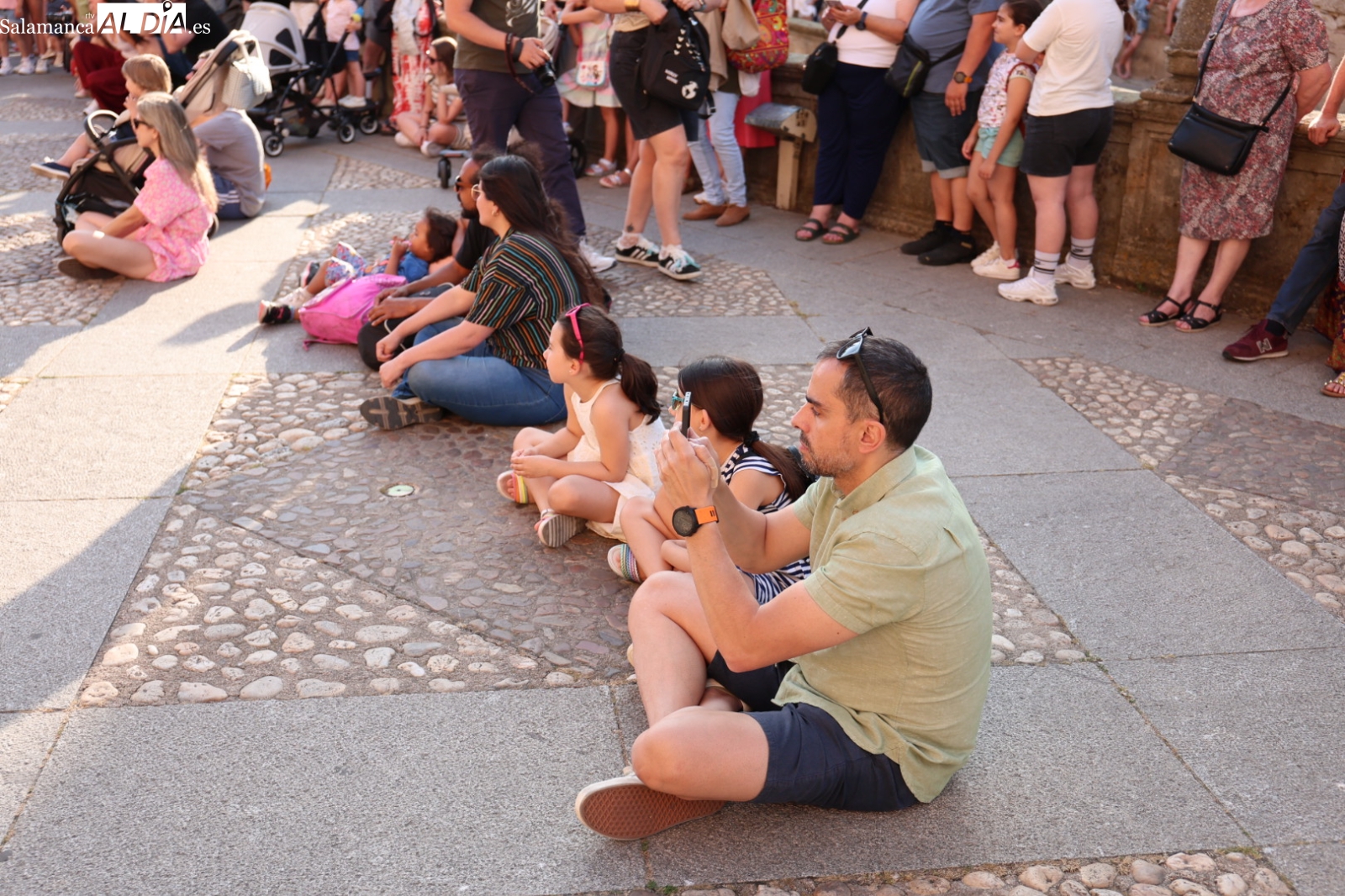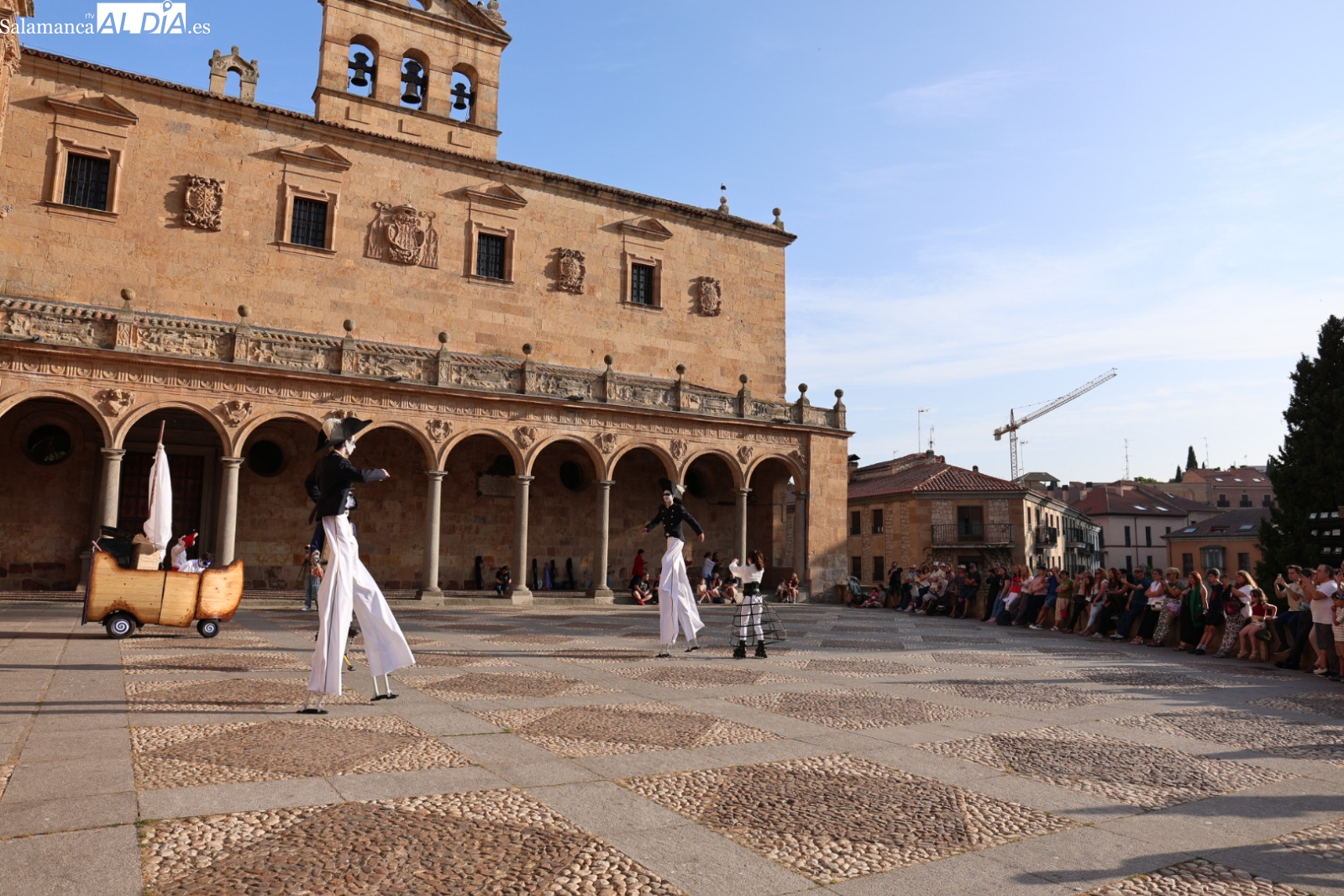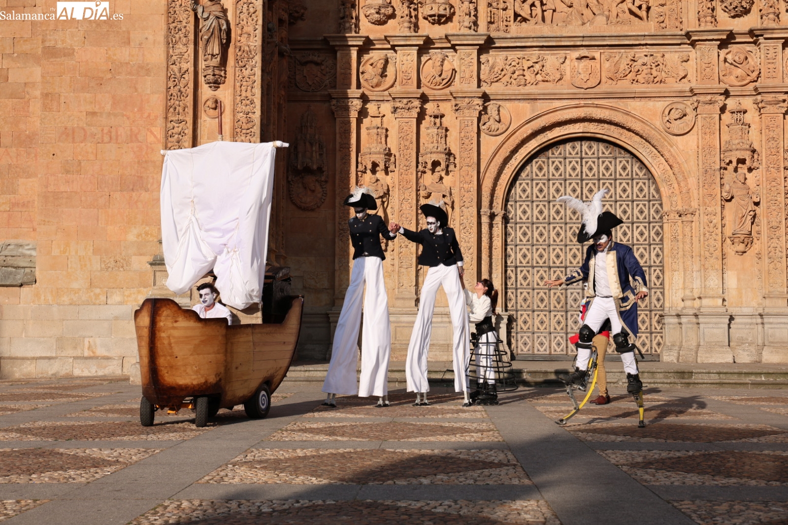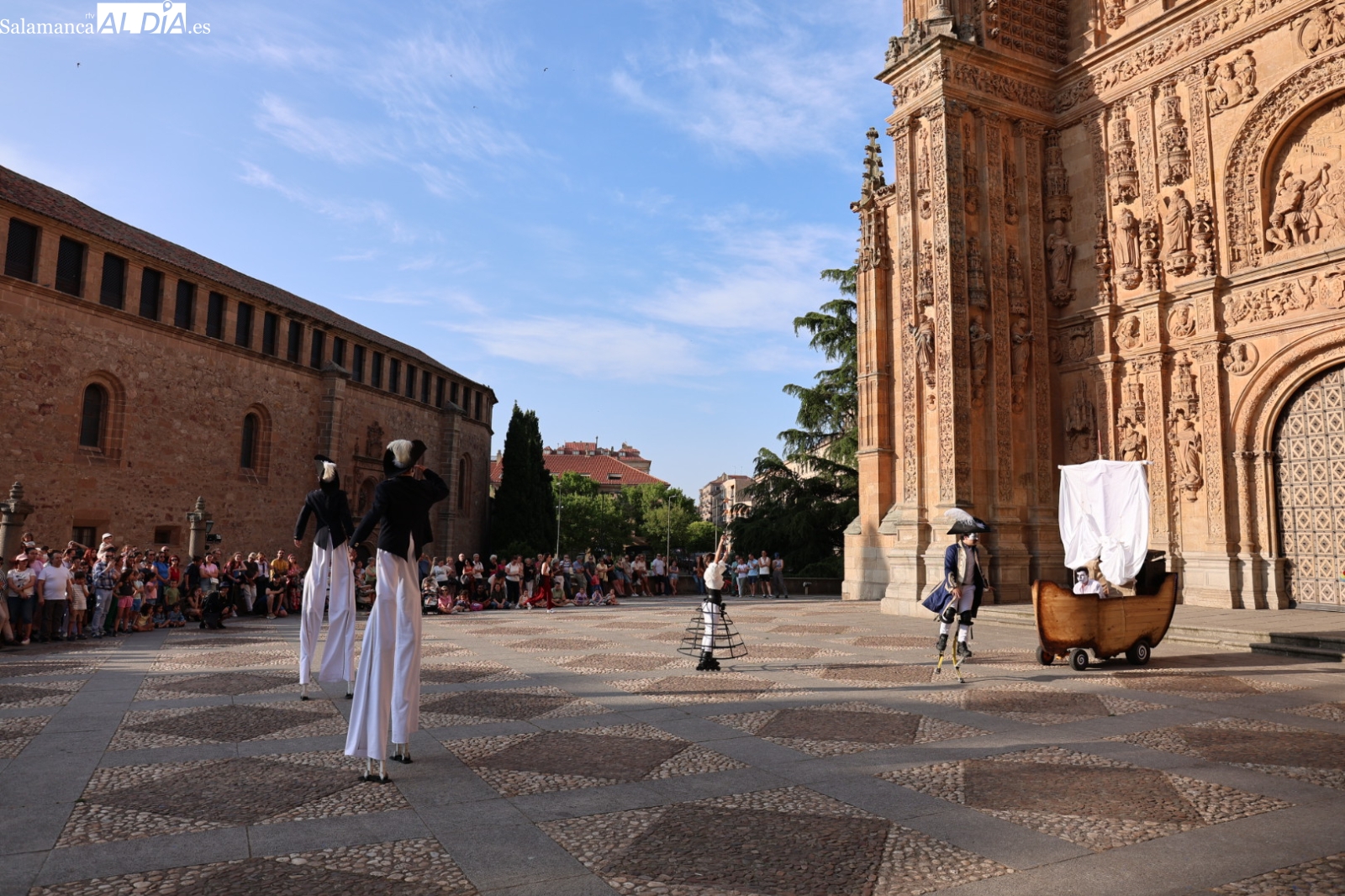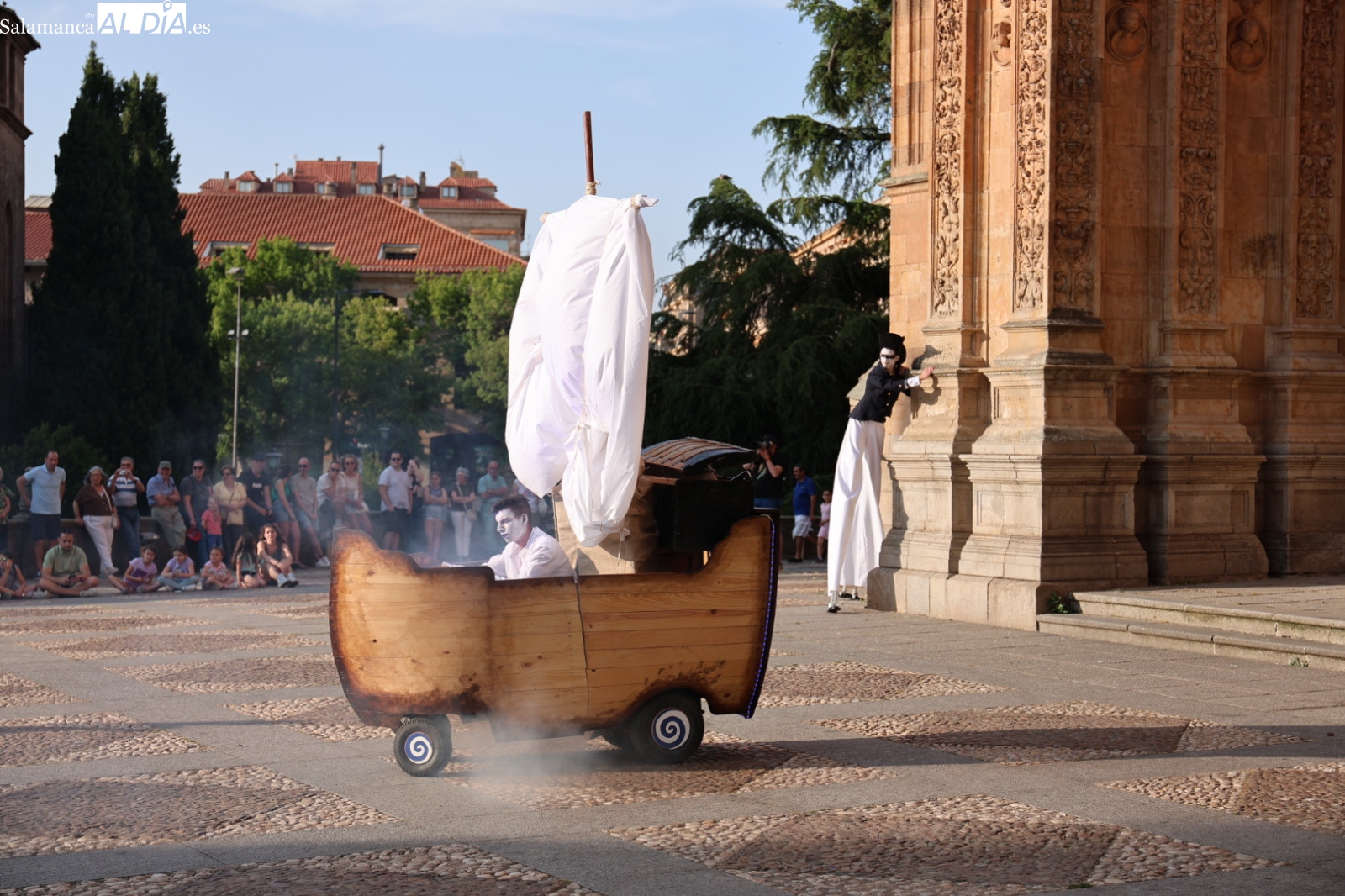 Las celebraciones en honor a San Juan de Sahagún han dado comienzo en Salamanca este miércoles y uno de los primeros actos en llenar de color y magia las calles ha sido el estreno absoluto del pasacalles 'Navalia'. A cargo de la Cía. CulturARTS, este espectáculo, recomendado para todos los públicos, ha ofrecido un viaje fantástico a través de mares imaginarios que ha cautivado a los presentes.