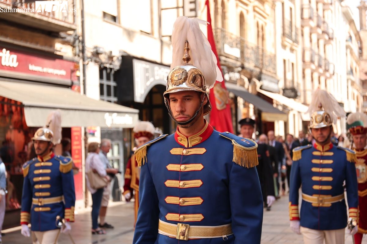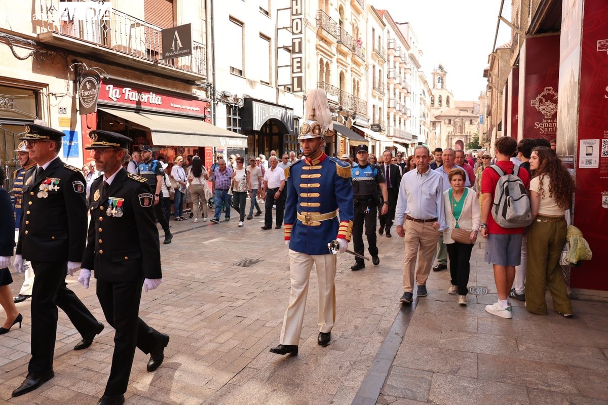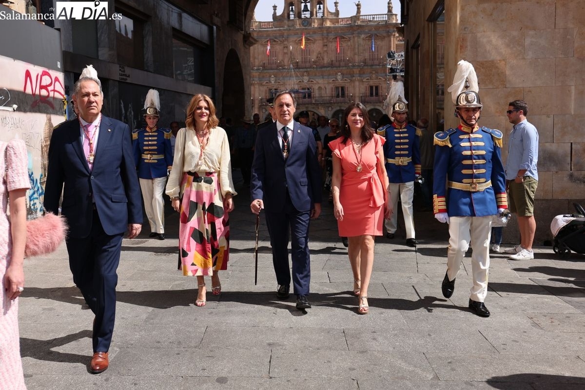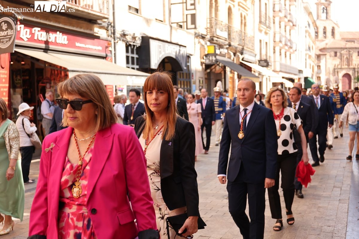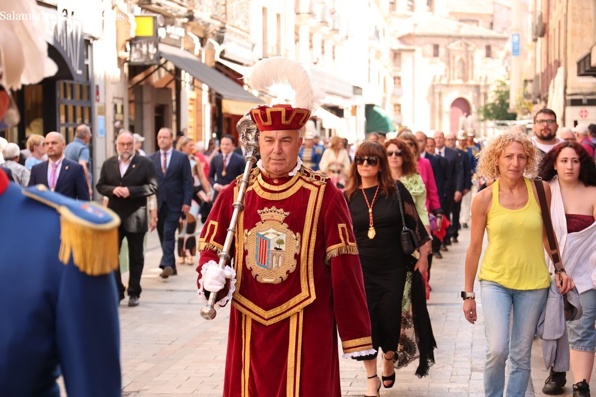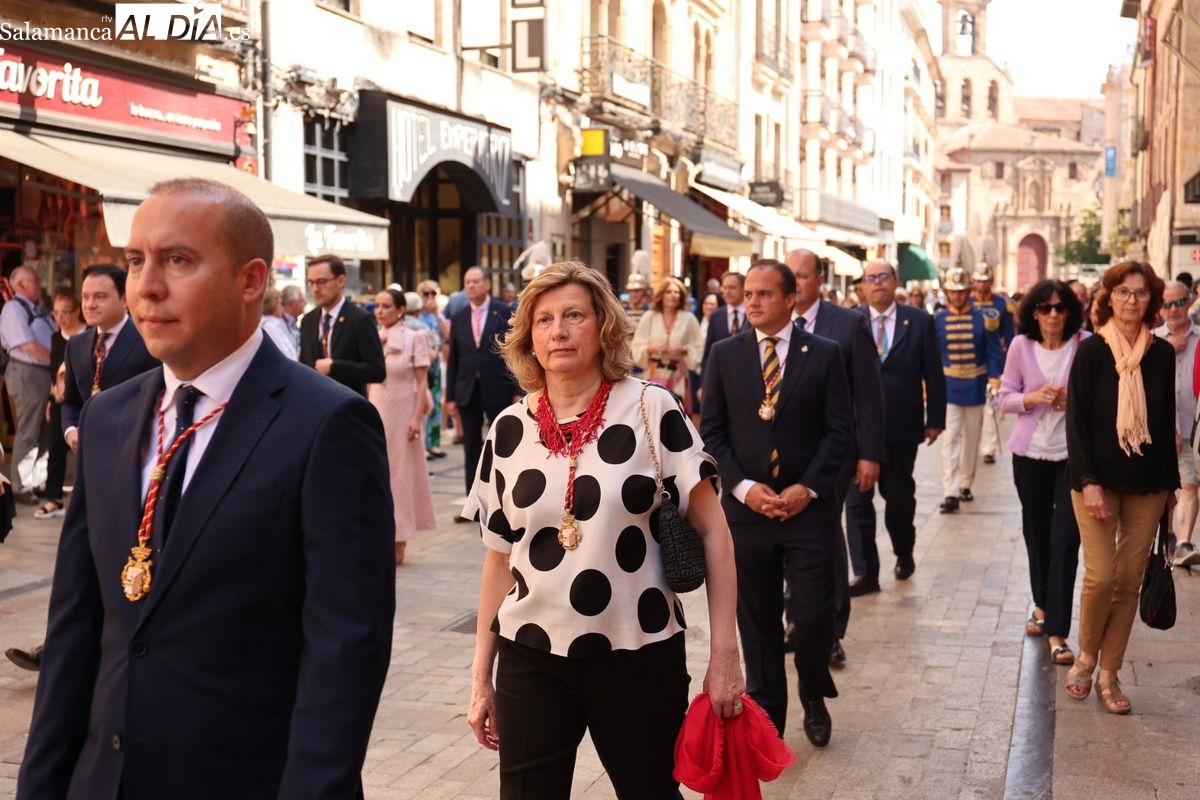 Encabezada por el alcalde, Carlos García Carbayo, y compuesta por miembros de la Corporación Municipal, la procesión cívica ha partido desde la Plaza Mayor. El destino de la comitiva ha sido la Catedral Nueva de Salamanca.