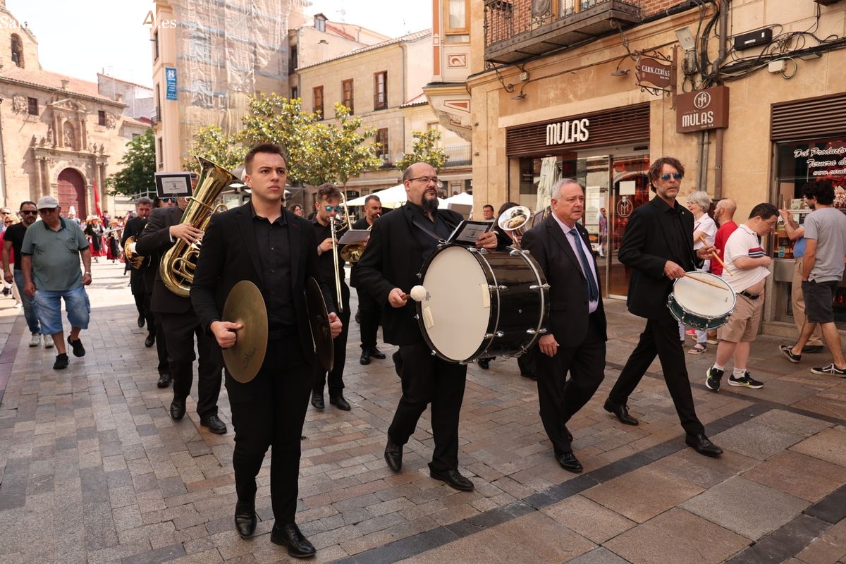 Salamanca ha revivido este jueves, 12 de junio, una de sus tradiciones más solemnes con motivo de la festividad de San Juan de Sahagún, patrón de la ciudad. Como es costumbre, la jornada festiva ha comenzado con la formación de la comitiva oficial en el Zaguán del Ayuntamiento.