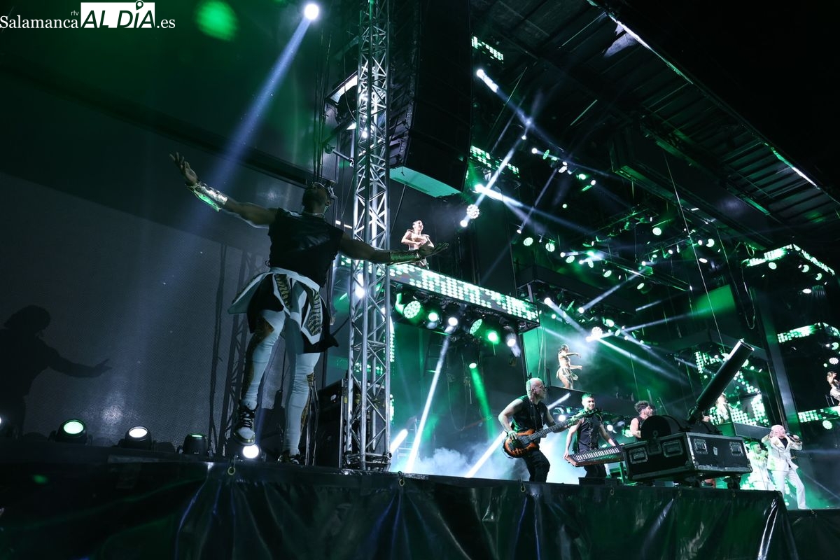 Sobre el escenario, 23 artistas, entre músicos, cantantes y bailarines, ofrecieron un repertorio variado y enérgico que hizo bailar y cantar al numeroso público asistente. El 'Epic Tour' se caracteriza por su cuidada puesta en escena, con efectos de luces, pantallas gigantes y un sonido potente que envolvieron el recinto ferial.