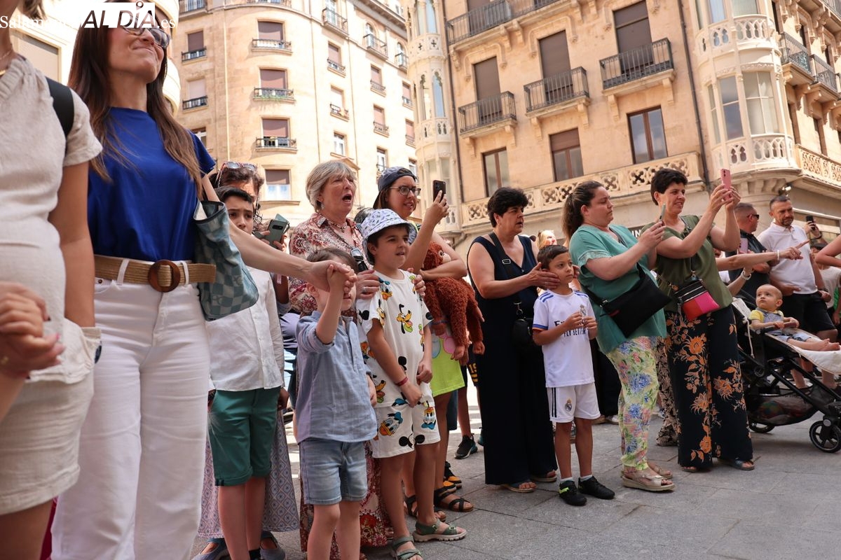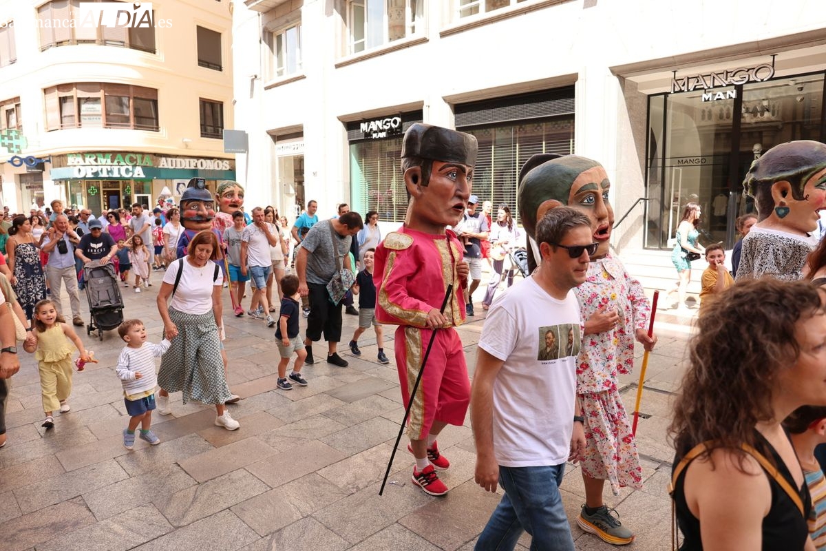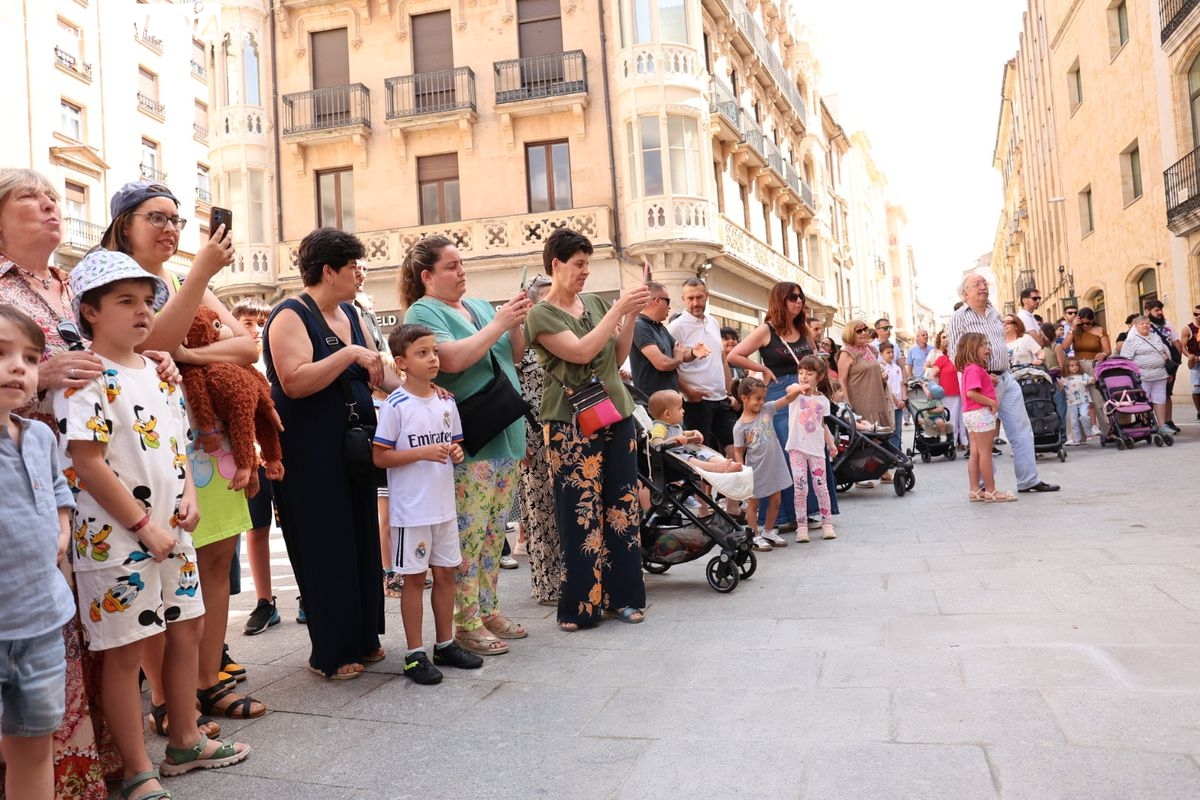 El punto de encuentro, tanto para la salida como para la llegada del pasacalles, ha sido la céntrica Plaza del Liceo. Desde allí, la comitiva ha iniciado su itinerario, que ha discurrido por el centro de la ciudad, permitiendo que numerosos salmantinos y visitantes puedan disfrutar del espectáculo.