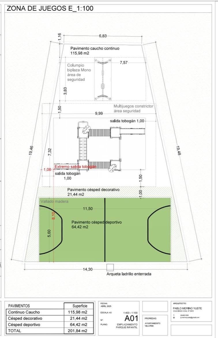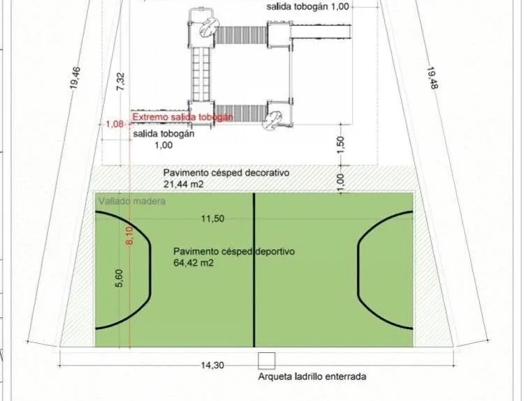 En él, detallan, “vamos a instalar nuevos juegos, nuevo suelo de pavimento gomoso continuo y un campo de fútbol 3 en cesped artificial”.