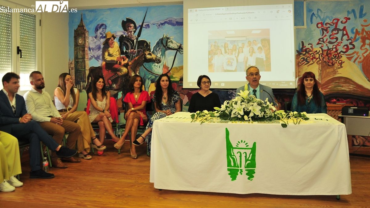La ceremonia de graduación se abrió con la intervención de Bernardo García y Trigo, director de este centro escolar, quien felicitó a los alumnos por culminar sus estudios. "En nombre de todos los profesores os damos la enhorabuena por haber llegado hasta aquí, por haber sido buenos alumnos, por vuestro comportamiento, vuestra dedicación". "Hoy sois los protagonistas de esta ceremonia, cerrais una etapa en este centro y yo espero creo que lo recordareis con añoranza cuando los años se vayan acumulando. Esta paredes son más que un edificio y los profesores somos los que os hemos acompañado, esperamos haber contribuido a poner cimientos en vuestra personalidad y que hamaos contribuido a que podáis tener un trabajo el dia de mañana y que seais más competentes. Estoy convencido de que será así" afirmó Bernardo García que pasó a reivindicar la "finalidad del antiguo bachillerato: formar y preparar para la vida, no solo para el trabajo".