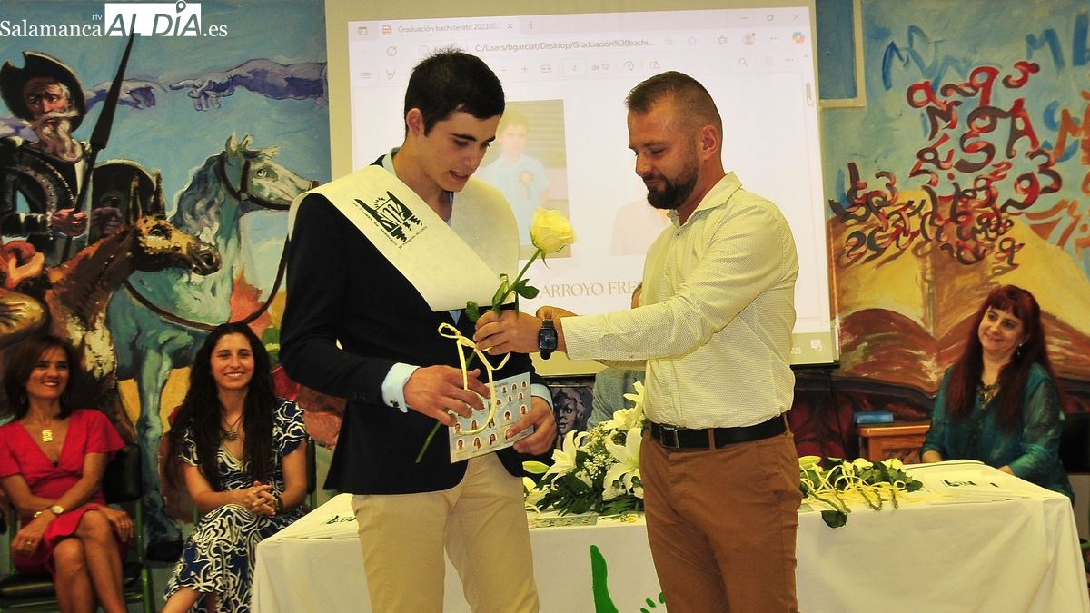 "Cada año el numero de los que llegais a esta primera fila va disminuyendo, pero y eso es importante, habeis podido llegar, es decir no os habeis tenido que desplazar a otro centro para estudiar bachillerato" manifestó el director que aprovechó su intervención para animar "a los otros alumnos más jovenes que están aquí a estudiar el bachillerato, que el bachillerato no cierra ninguna puerta, ni a la formación profesional, sino que abres puertas, pues cuando acabéis el bachillerato teneis la opción de la universidad, pero también seguís teniendo la opción de la formación profesional de grado superior que garantiza un trabajo más seguro que el grado medio". "Mi tarea como director y la del equipo directivo es hacer todo lo posible, luchar con empeño para mantener el bachillerato en este IES a pesar de los exiguos numeros que vamos a tener" añadió García y Trigo.