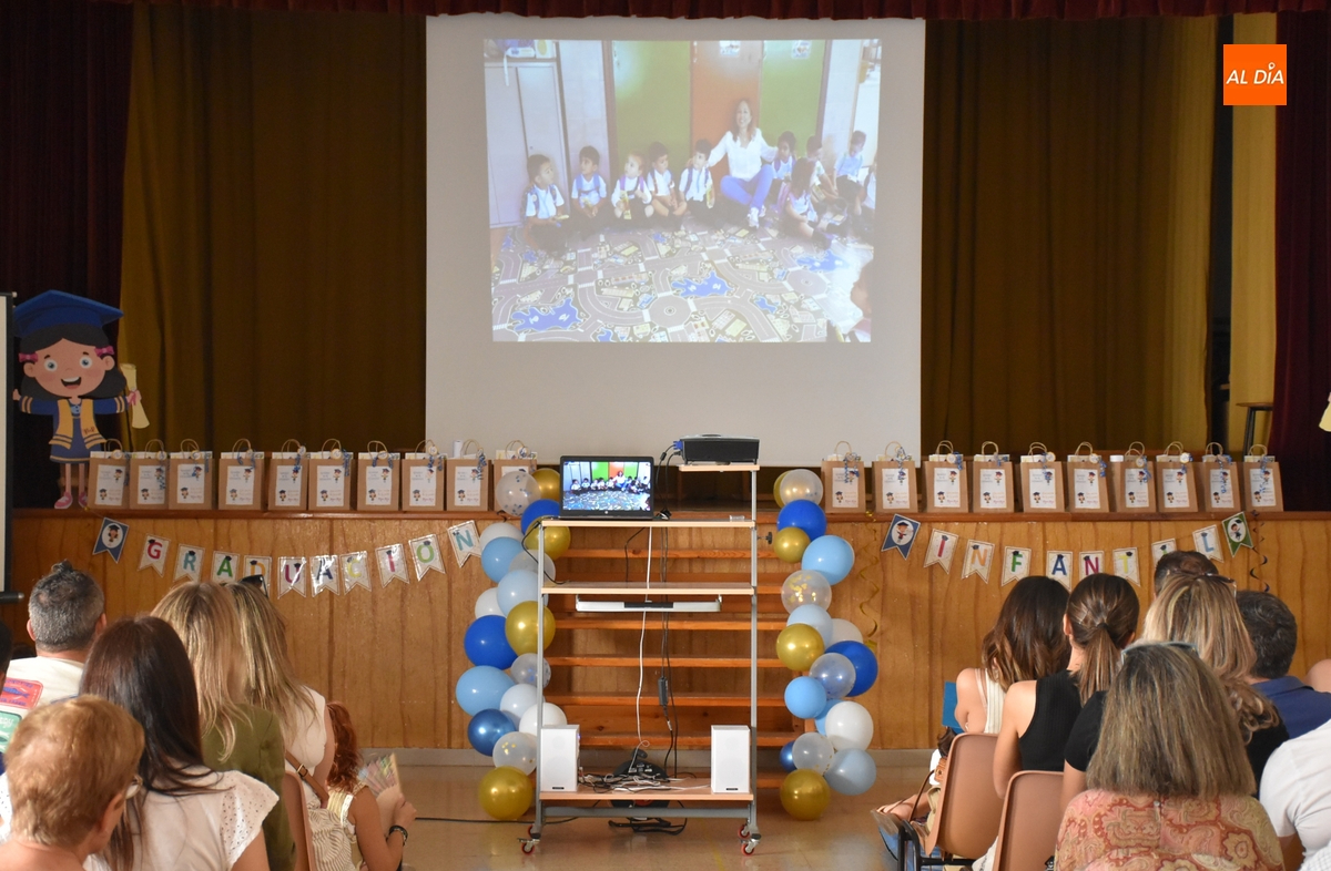 La tutora también tuvo palabras para los progenitores, a quienes agradeció su “cariño y confianza” durante los tres cursos, deseándoles que sus hijos “sean felices y crezcan con alegría”. Por último, tuvo unas palabras para los restantes alumnos y docentes del ciclo (“gracias por todo lo que hemos construidos juntos”). A continuación, todos los chavales y los numerosos familiares congregados pudieron ver un vídeo recopilatorio de los tres cursos de Infantil.