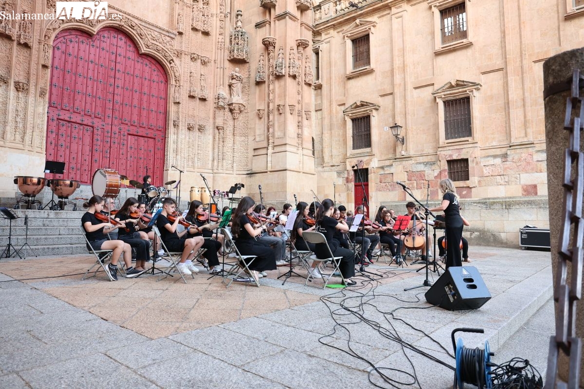 La Orquesta de Cuerda y la Banda de la Escuela Municipal de Música y Danza han ofrecido una destacada actuación que ha llenado de sones el emblemático Patio Chico de Salamanca. Un concierto enmarcado dentro de los actos culturales programados con motivo de las fiestas patronales de San Juan de Sahagún. El público salmantino y a los visitantes han disfrutado del talento y la dedicación de sus integrantes.