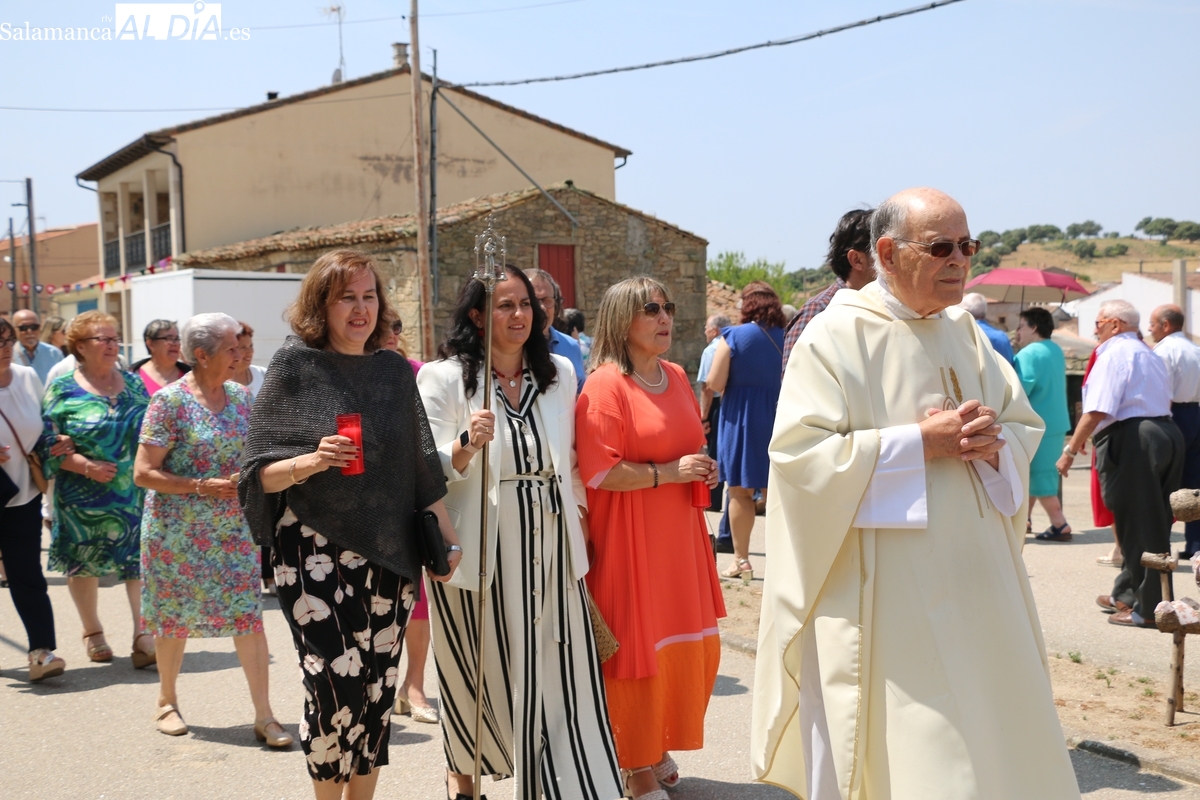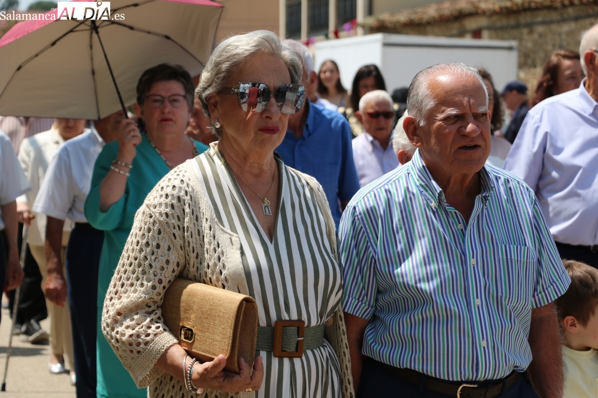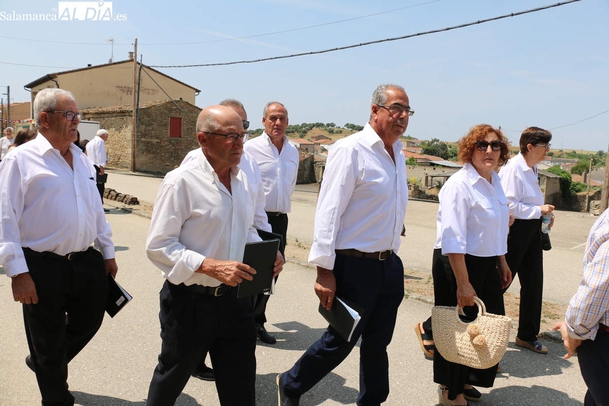 La jornada comenzaba con la solemne eucaristía en honor al santo, oficiada por el párroco Antonio Arroyo. Las voces del coro de Lumbrales y las notas del tamborilero local, Veri, pusieron el acompañamiento musical a la ceremonia.