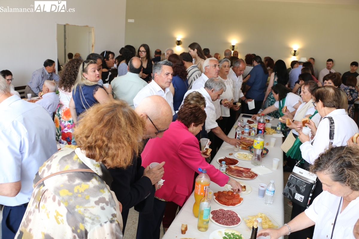 Concluida la procesión, el epicentro de la celebración se trasladó al bar del Granero. Antes de disfrutar del copioso convite ofrecido por el Ayuntamiento –a base de embutidos, chorizo, salchichón, lomo, queso y empanada, regado con vino, refrescos o agua–, la alcaldesa Cristina González tomó la palabra. A las puertas del establecimiento, la regidora procedió a la inauguración oficial del local tras las obras de mejora acometidas por el Consistorio. En su intervención, deseó a los vecinos unas felices fiestas y les animó a disfrutar de las actividades programadas. Tuvo también un sentido recuerdo para Víctor Joaquín Herrero Prieto, empleado municipal encargado de labores de mantenimiento, fallecido el pasado mes de diciembre.