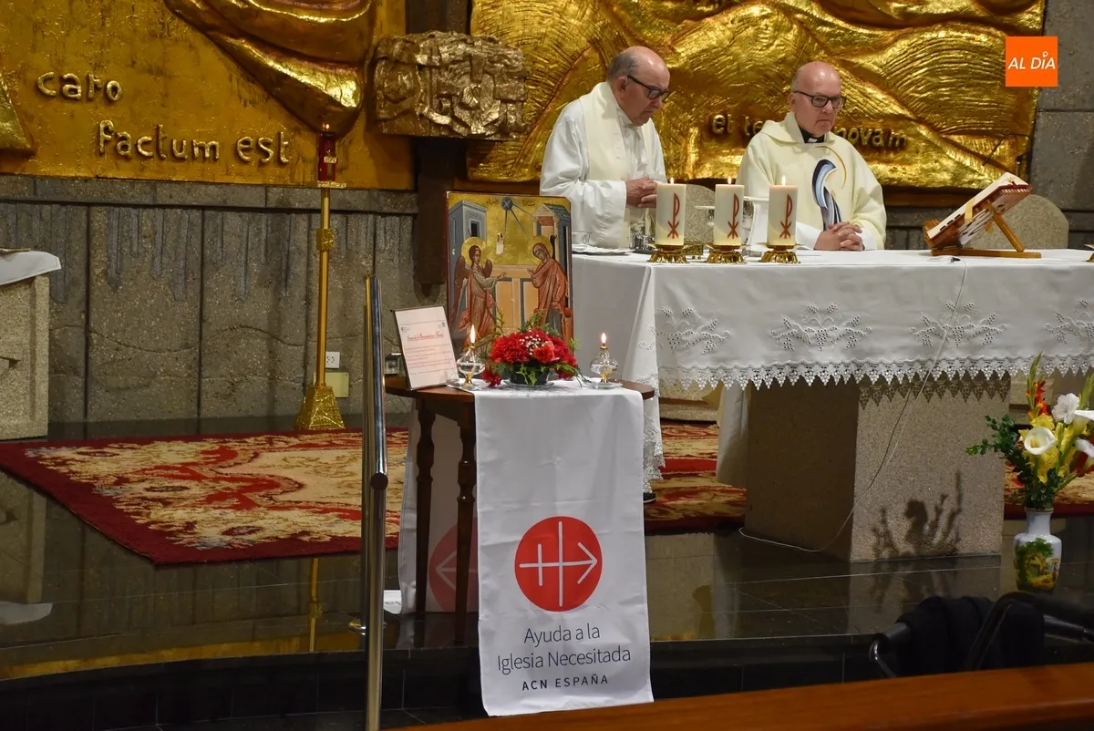 La Capilla de la Residencia de las Hermanitas de los Ancianos Desamparados (conocida popularmente como San José) fue escenario en la mañana del sábado de la 2ª de las 3 misas por los cristianos perseguidos que se están oficiando desde el viernes y hasta el domingo en Ciudad Rodrigo, al hilo de la presencia del denominado icono de la Anunciación de Homs de la mano de la Fundación Pontificia Ayuda a la Iglesia Necesitada (ACN).