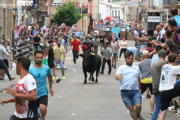 Multitudinario IX Toro de Cajón el que se ha desarrollado este sábado 14 de junio en Vitigudino. Miles de personas no quisieron perderse este evento ya tradicional en el calendario de los festejos populares de la provincia. Promovido por la Asociación Cultural Taurina ‘Villa de Vitigudino’, y con la colaboración del Ayuntamiento, el Toro de Cajón del pre-Corpus resultó todo un éxito, tanto por la afluencia de público como por el juego del ganado que saltó a las calles, dos toros de Domingo Hernández y una vaca de Rollanejo.