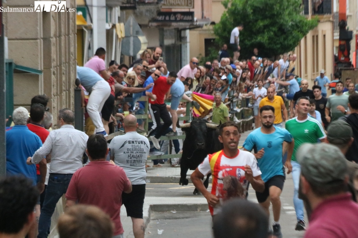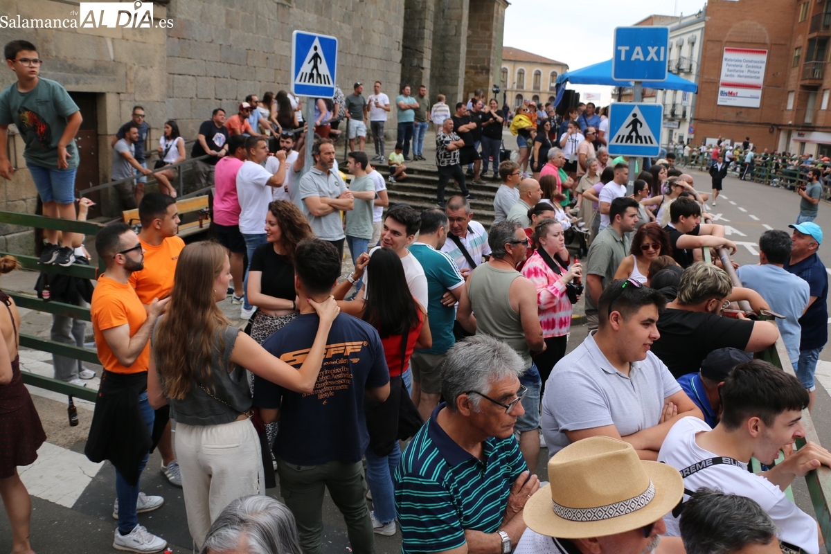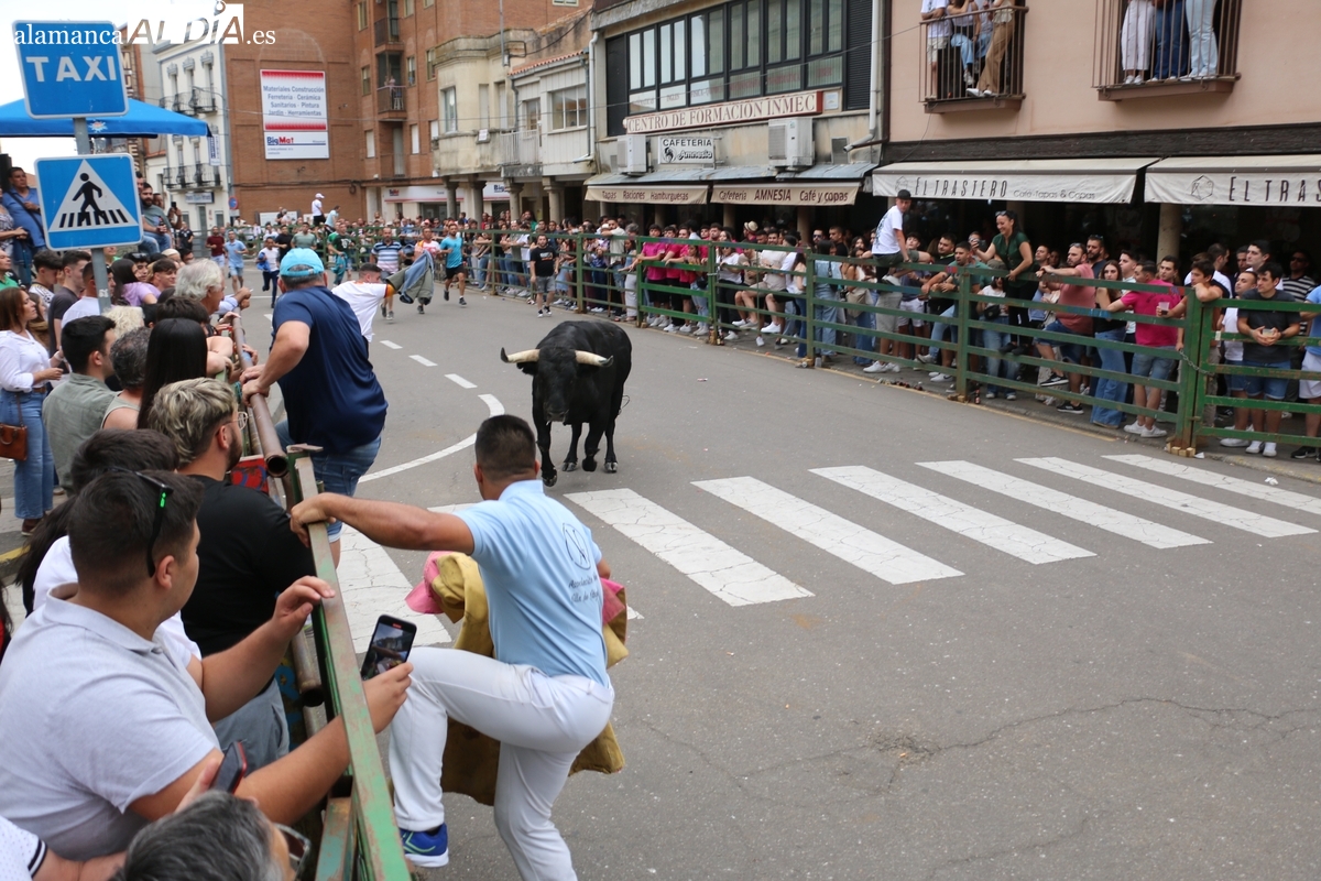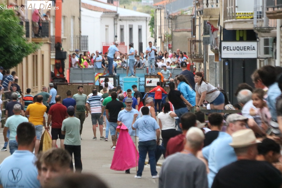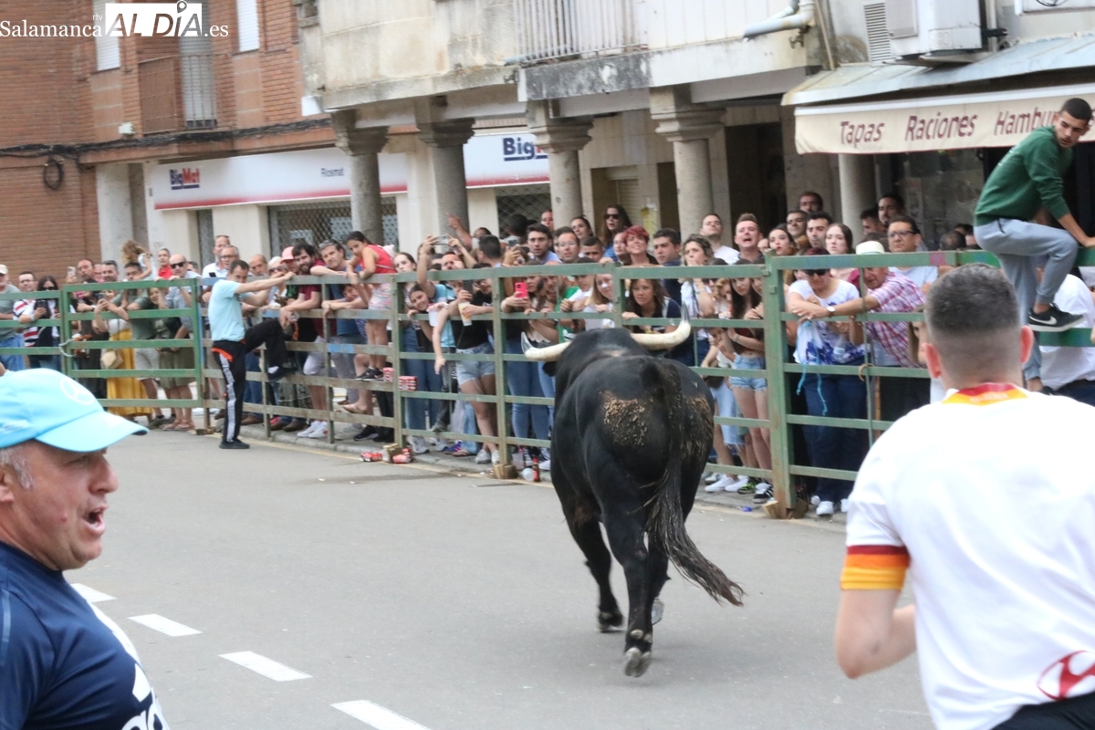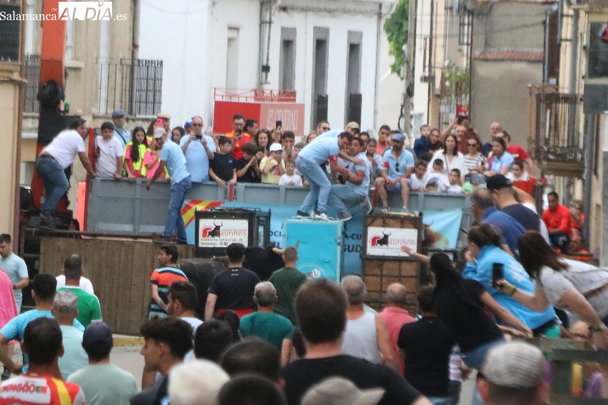 Multitudinario IX Toro de Cajón el que se ha desarrollado este sábado 14 de junio en Vitigudino. Miles de personas no quisieron perderse este evento ya tradicional en el calendario de los festejos populares de la provincia. Promovido por la Asociación Cultural Taurina ‘Villa de Vitigudino’, y con la colaboración del Ayuntamiento, el Toro de Cajón del pre-Corpus resultó todo un éxito, tanto por la afluencia de público como por el juego del ganado que saltó a las calles, dos toros de Domingo Hernández y una vaca de Rollanejo.