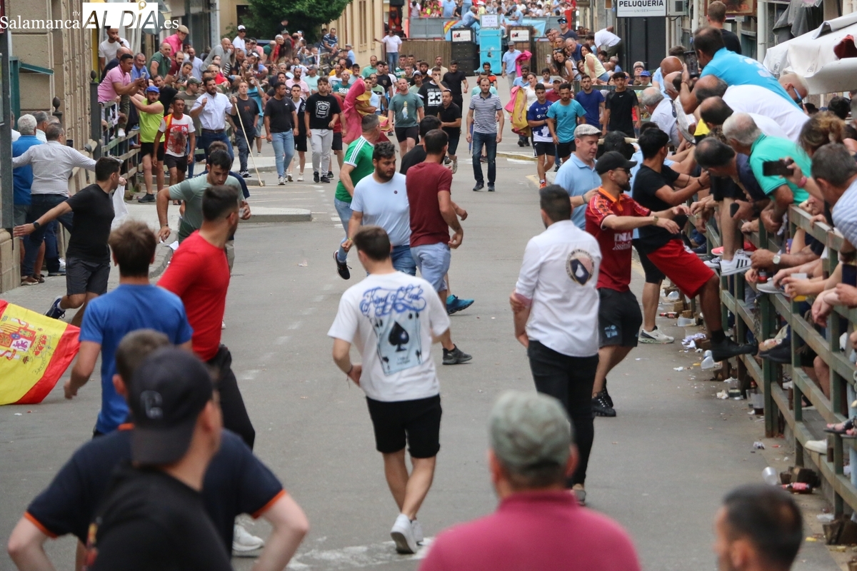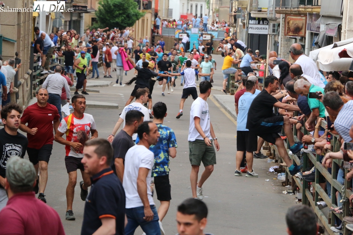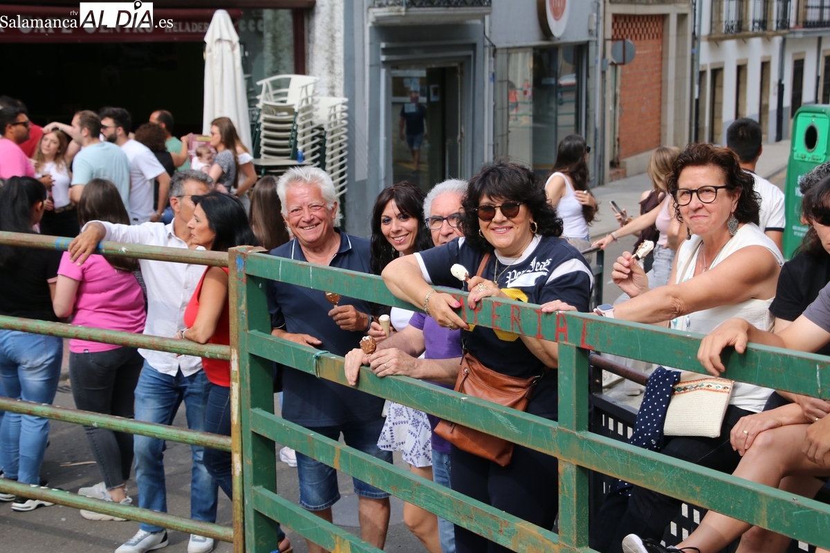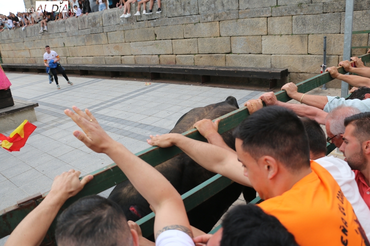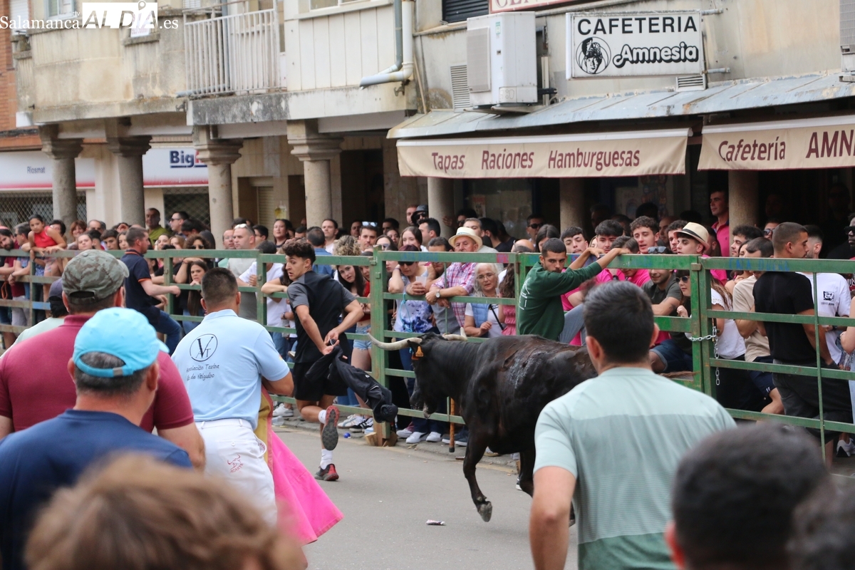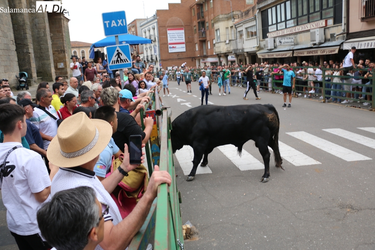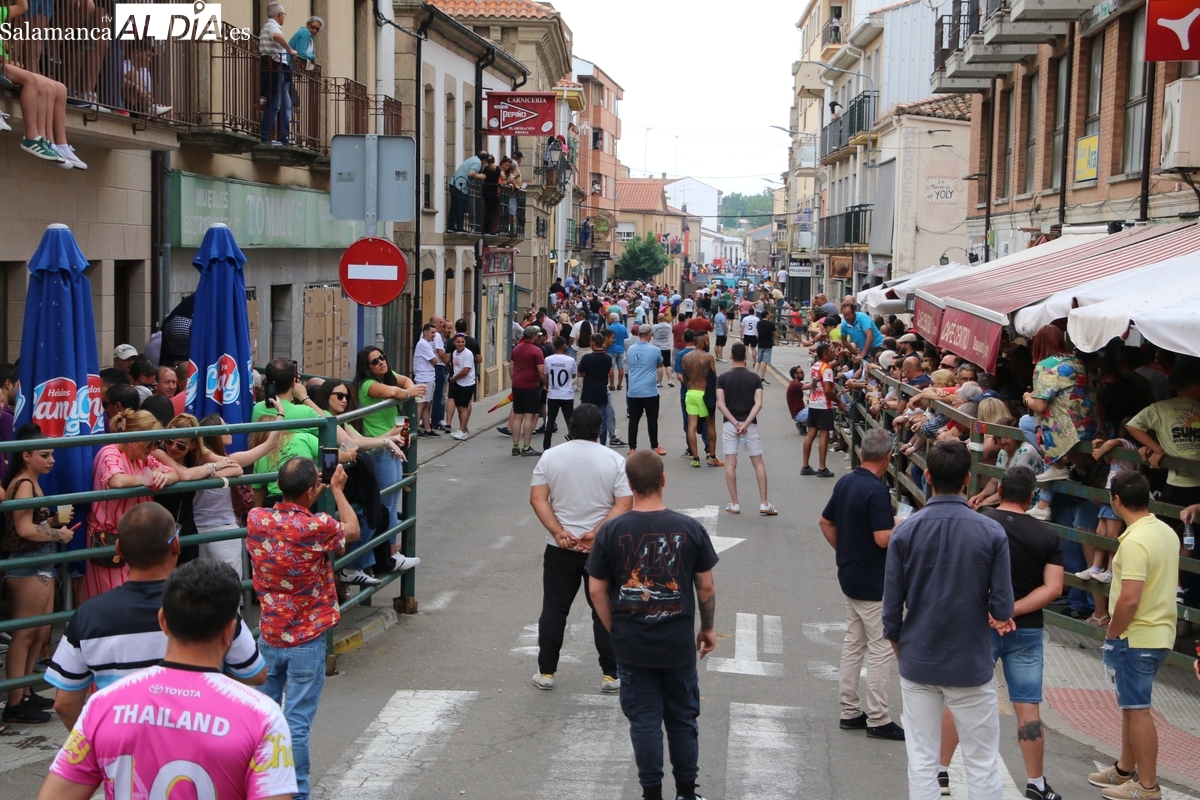 Multitudinario IX Toro de Cajón el que se ha desarrollado este sábado 14 de junio en Vitigudino. Miles de personas no quisieron perderse este evento ya tradicional en el calendario de los festejos populares de la provincia. Promovido por la Asociación Cultural Taurina ‘Villa de Vitigudino’, y con la colaboración del Ayuntamiento, el Toro de Cajón del pre-Corpus resultó todo un éxito, tanto por la afluencia de público como por el juego del ganado que saltó a las calles, dos toros de Domingo Hernández y una vaca de Rollanejo.